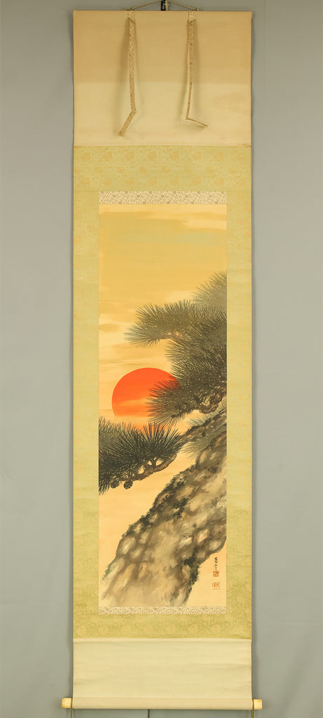 三好香年 Miyoshi Konen Japanese art kakejiku kakemono wall hanging scroll / Rising Sun and Pine Tree RE232