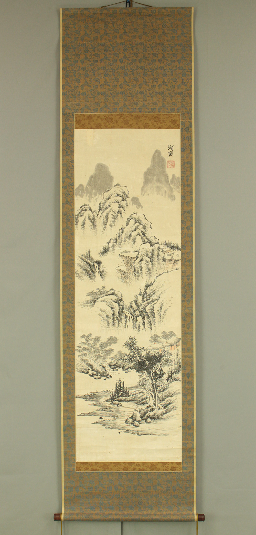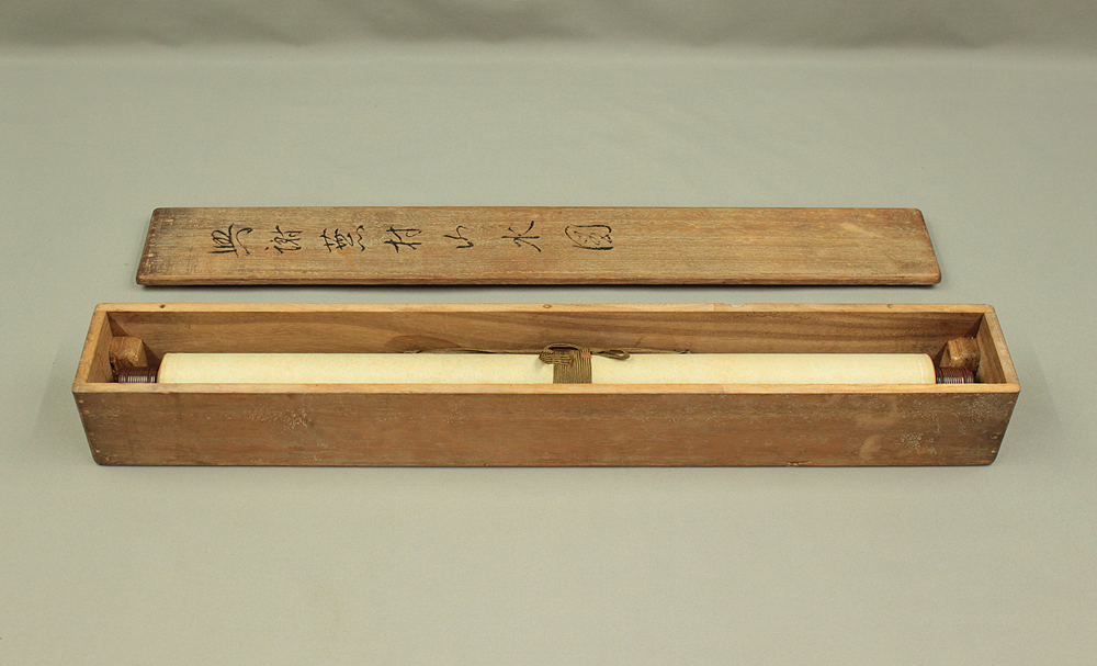 与謝蕪村 Yosa Buson (1716-1784) Japanese antique art kakejiku kakemono wall hanging scroll / Sansui Landscapes Mountain, Hermitage by River with Box RD724