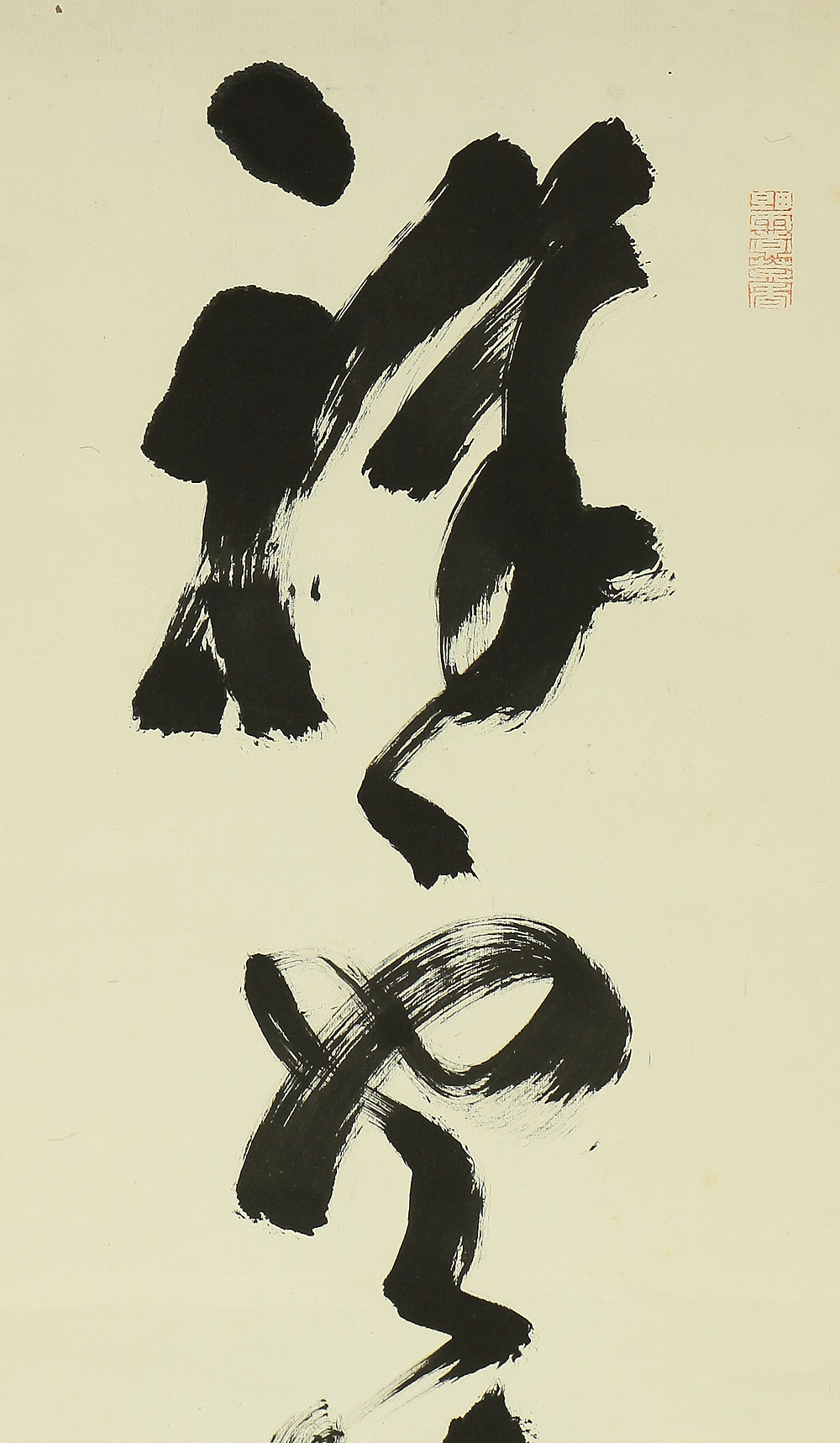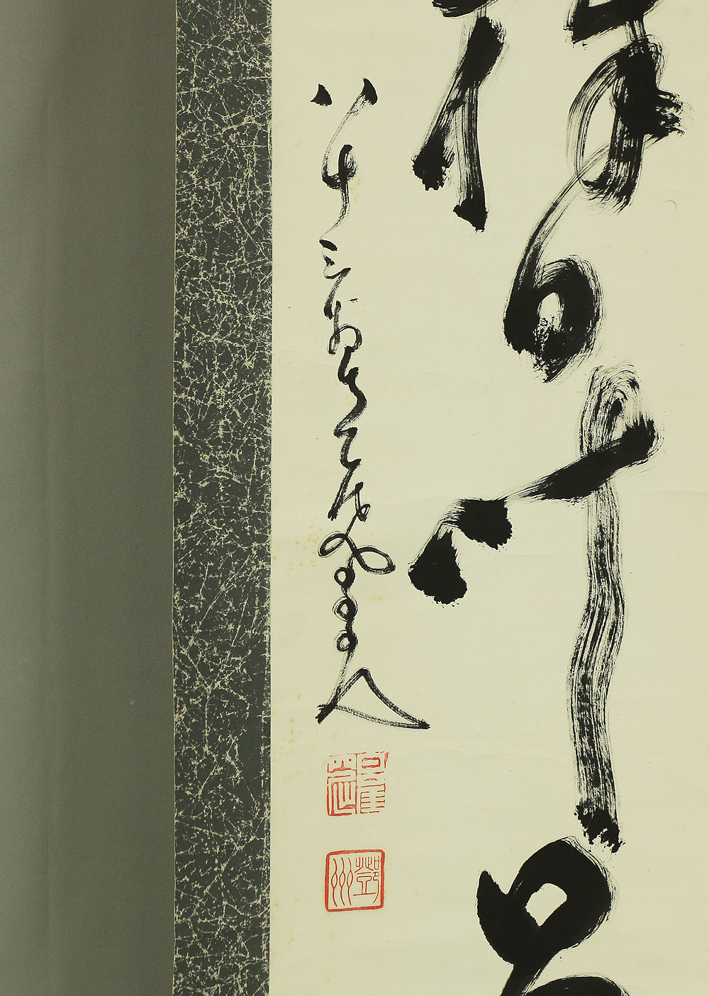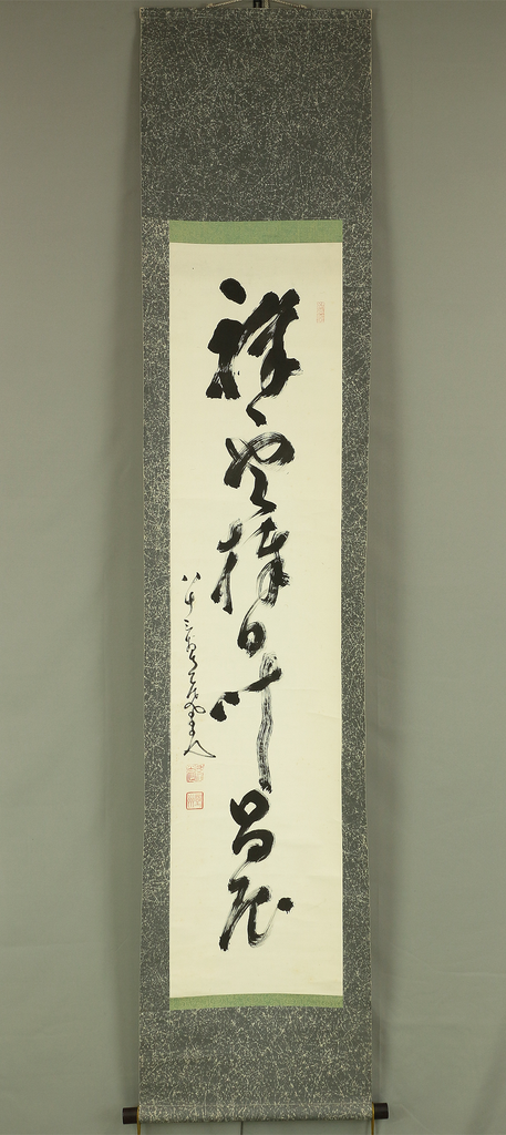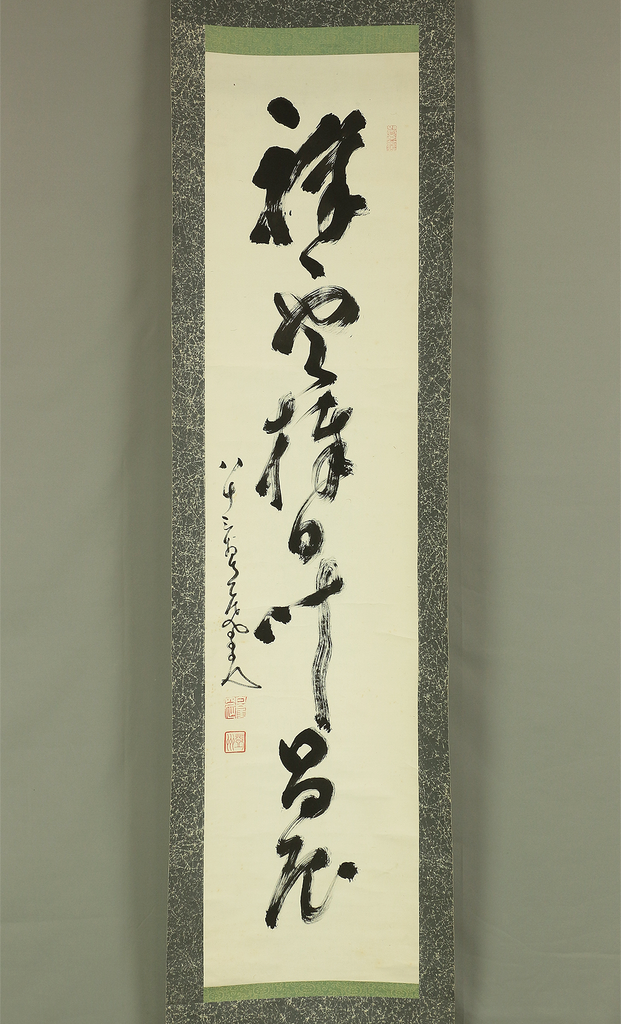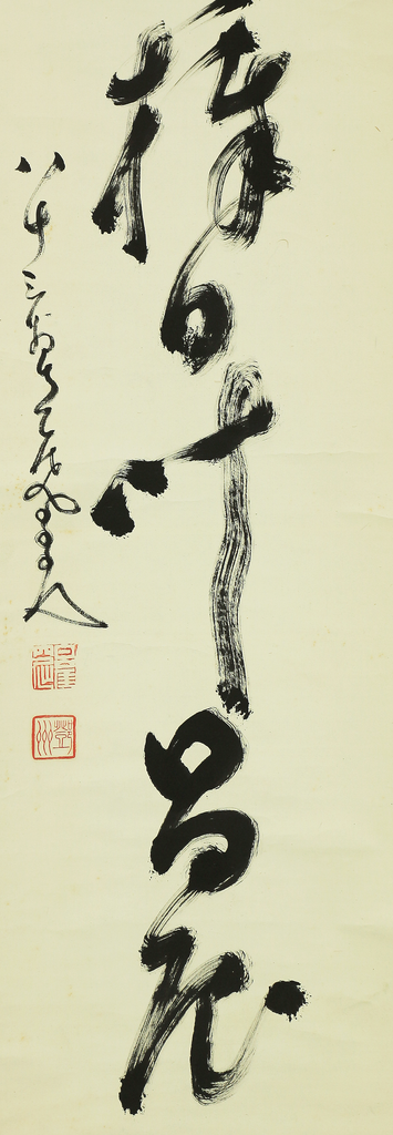 A powerful single-line Zen calligraphy (ichigyōsho) by Nakahara Nantenbō (中原南天棒), one of the most influential Rinzai Zen masters of the Meiji and Taishō periods. Known for his uncompromising spirit and vigorous brushwork, Nantenbō used calligraphy as a direct extension of Zen practice—bold, immediate, and spiritually charged.