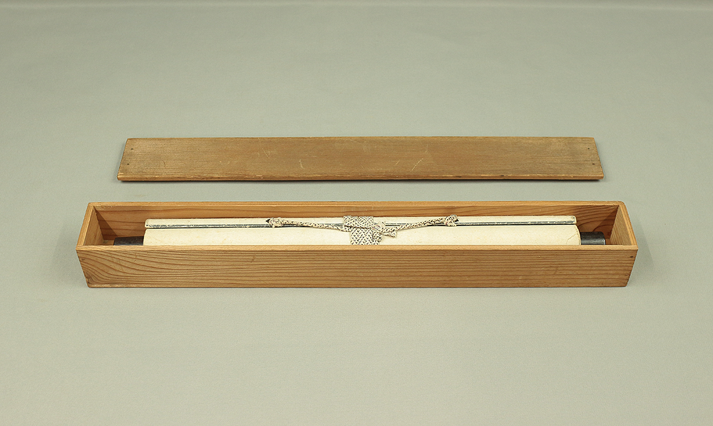 This poetic phrase evokes the emergence of clarity and virtue—an image of spiritual awakening and auspicious transformation. The brushwork is forceful and expressive, embodying Nantenbō’s hallmark style: a fusion of meditative depth and martial energy. The scroll is accompanied by a wooden storage box, adding preservation value and historical context. Works by Nantenbō are highly sought after for their spiritual intensity and their role in bridging Zen, art, and modern Japanese cultural identity. A rare and spiritually potent artifact for collectors of Zen calligraphy, Rinzai heritage, and Meiji-era cultural expression.