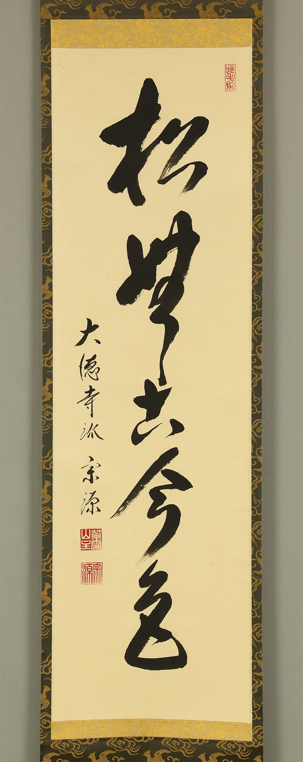 前田宗源 Maeda Sogen (b1932) Daitoku-ji Japanese Zen kakejiku kakemono wall hanging scroll for Tea ceremony / 松無古今色 Matsuni Kokonno Ironashi with Original Box (Tomobako) RE249