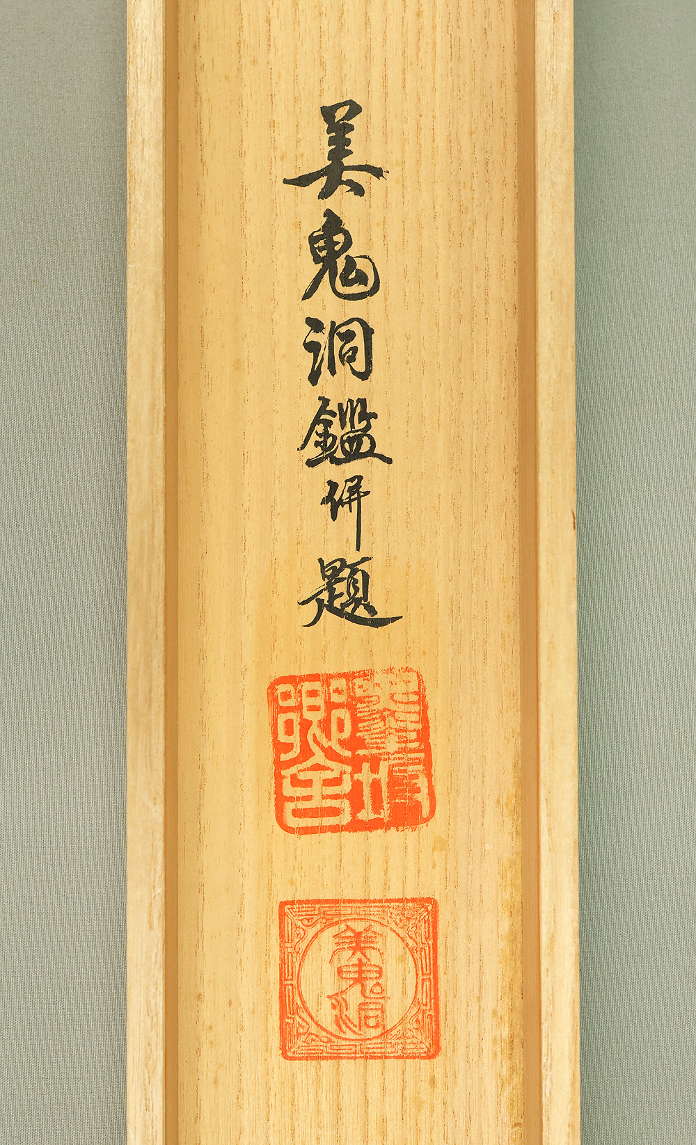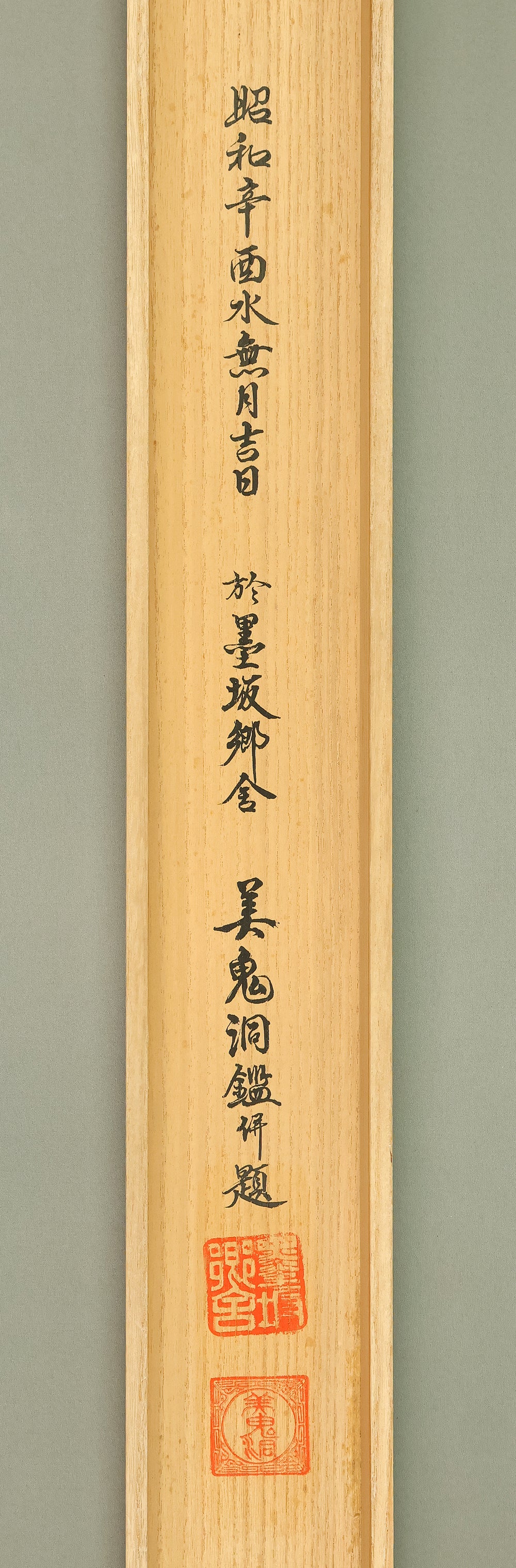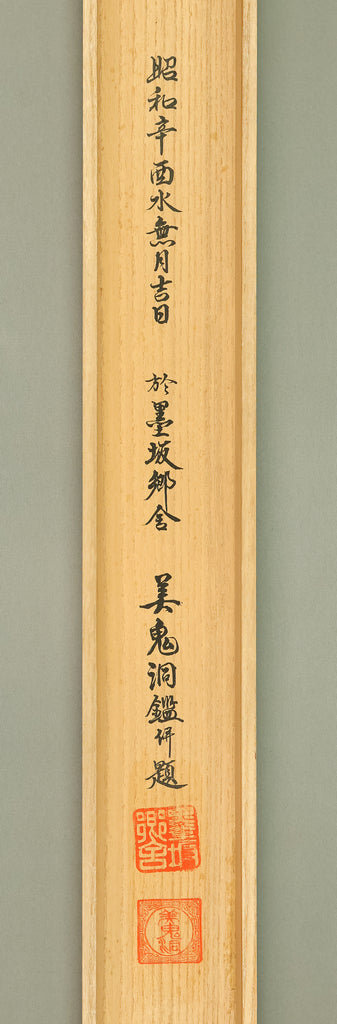 This scroll comes with an appraisal box by 'Sumisakagosya Mikito' 墨坂郷舎 美鬼洞 in 1981.