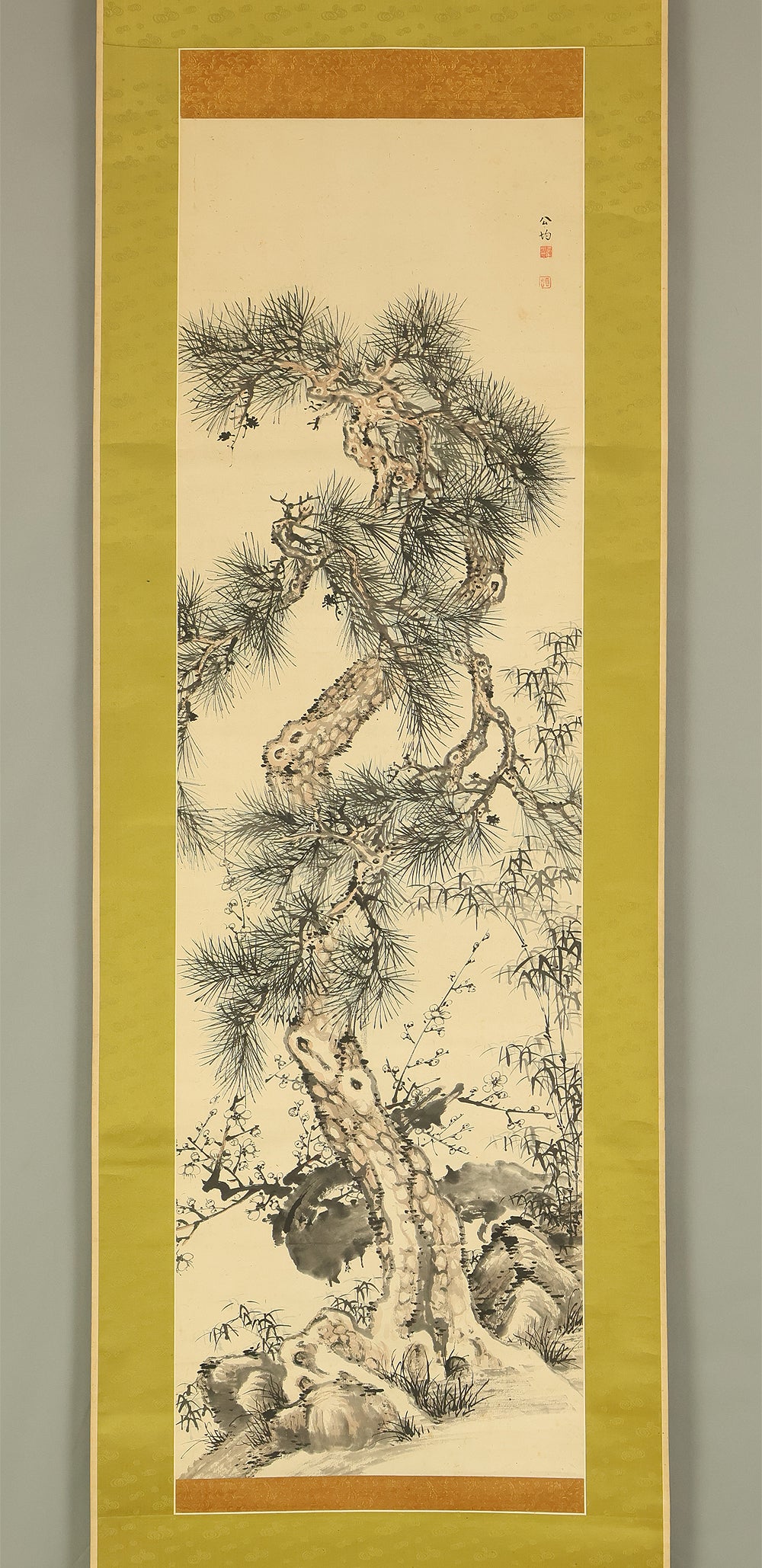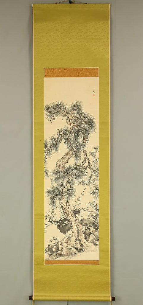 吉田公均 Yoshida Kokin (1804-1876) Japanese antique art kakejiku kakemono wall hanging scroll / Pine Bamboo and Plum Tree with Appraised Box RE306