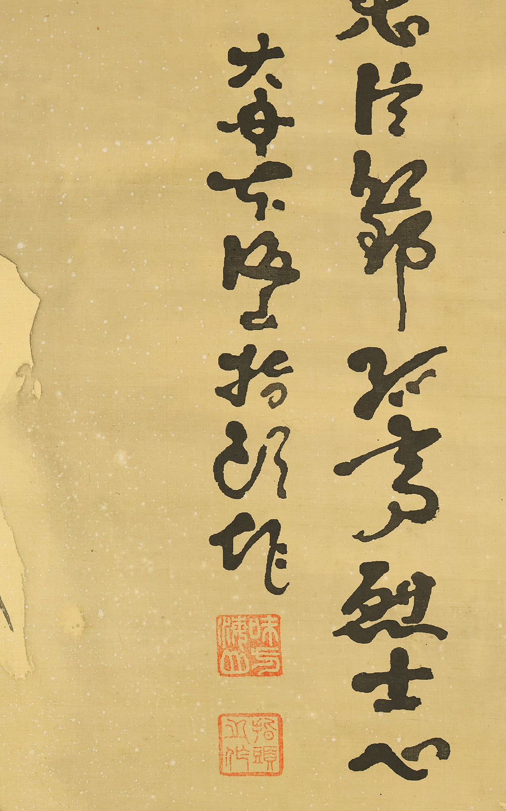 From an early age, Kaizan drew pictures and characters with his fingertips, and his father, who recognized his talent as a painter, took him under the tutelage of Tanomura Chokunyu, a nanga painter in Kyoto. There, Kaizan studied literati painting, but he persisted in painting with his fingertips. He did not use a brush at all, but instead used his own fingertips to paint, letting his fingers crawl and dance freely.