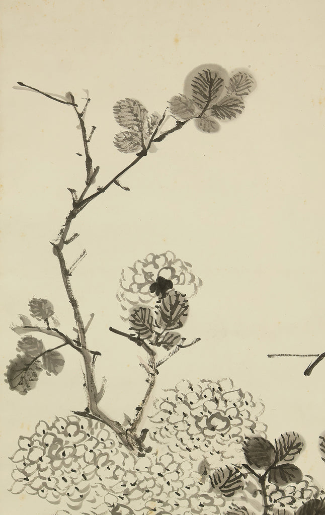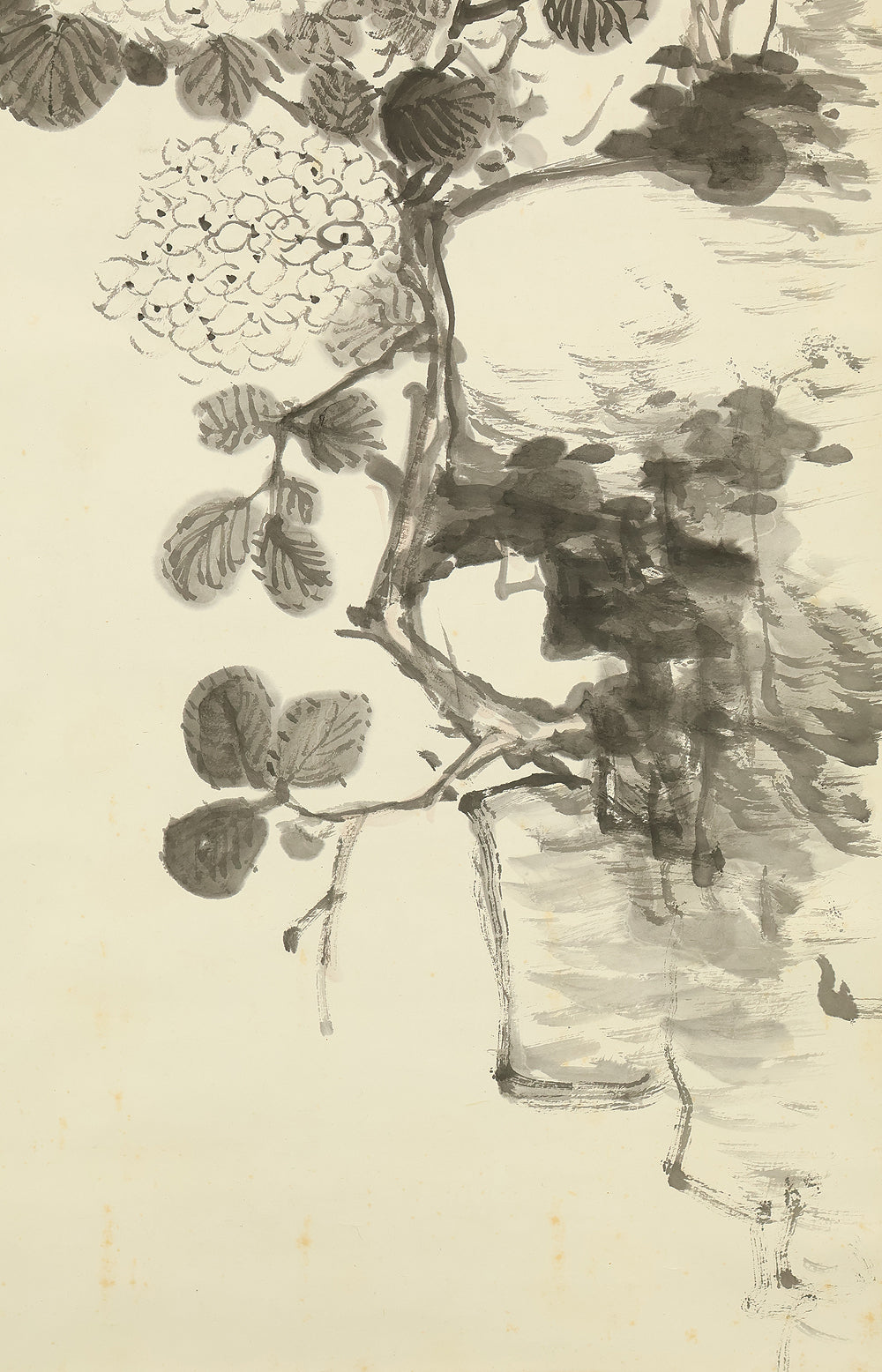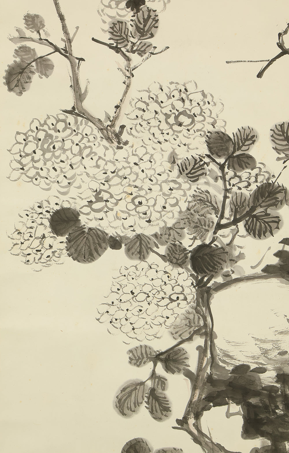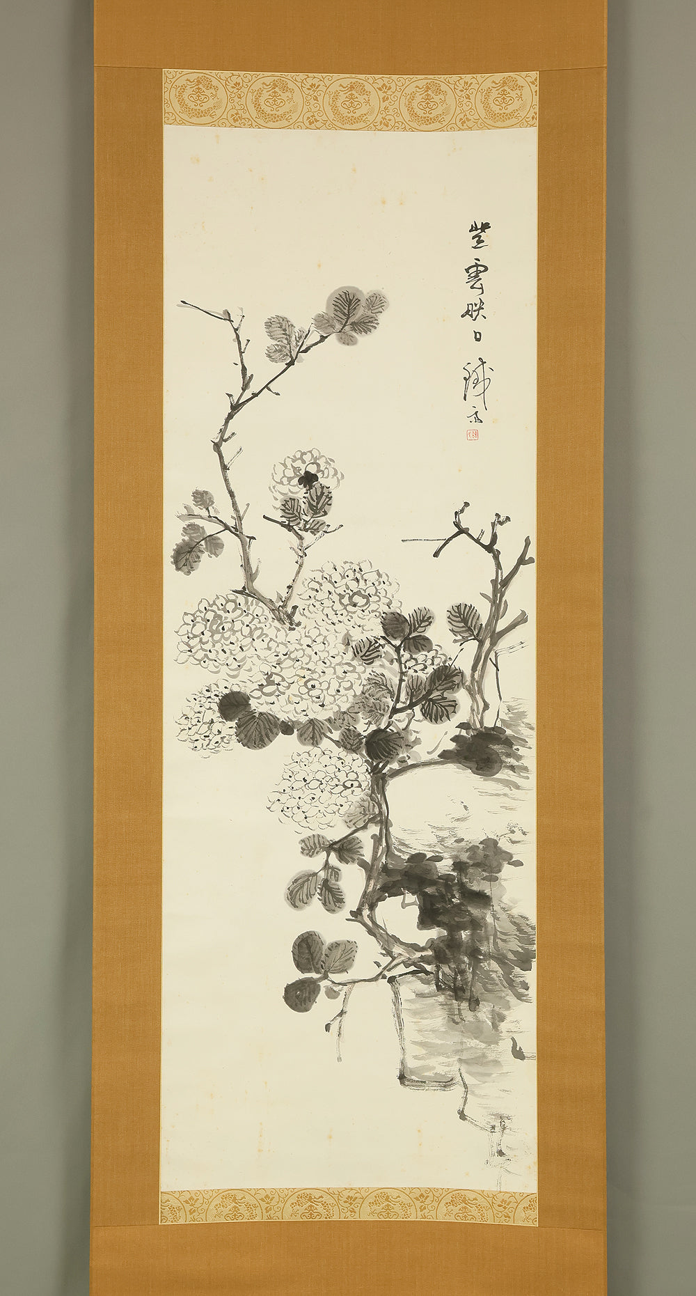 富岡鉄斎 Tomioka Tessai (1837-1924) Japanese art kakejiku kakemono wall hanging scroll / Suiboku Ink Hydrangea with Appraised Box RE348