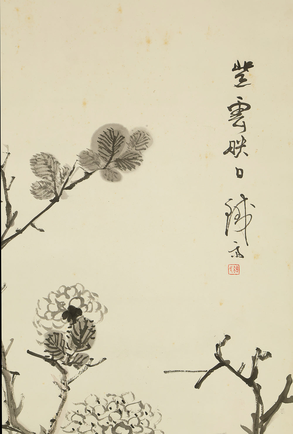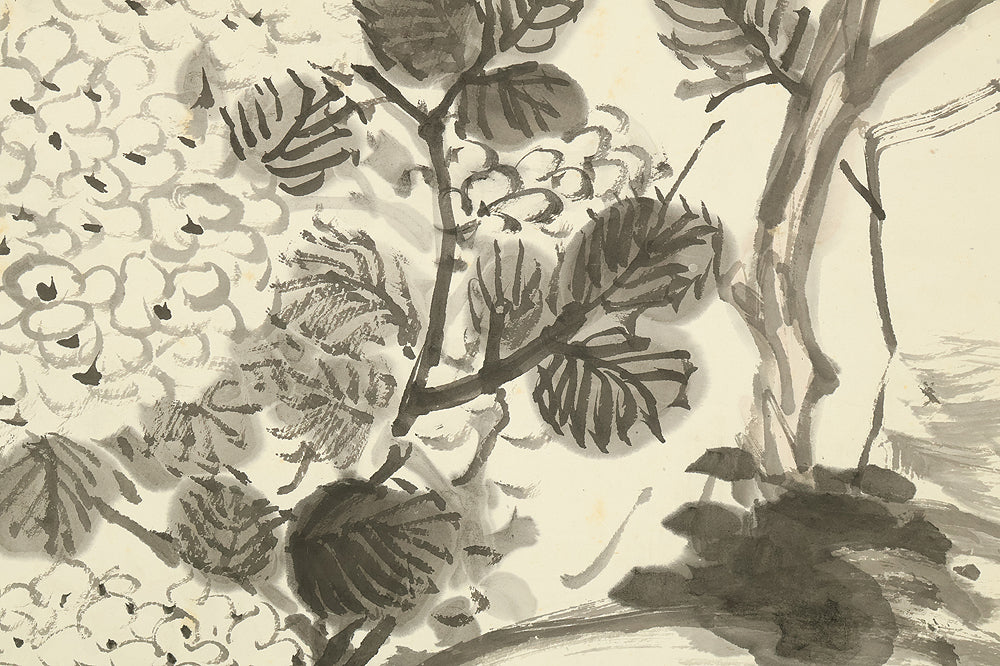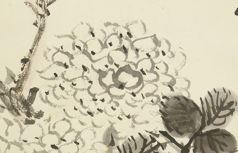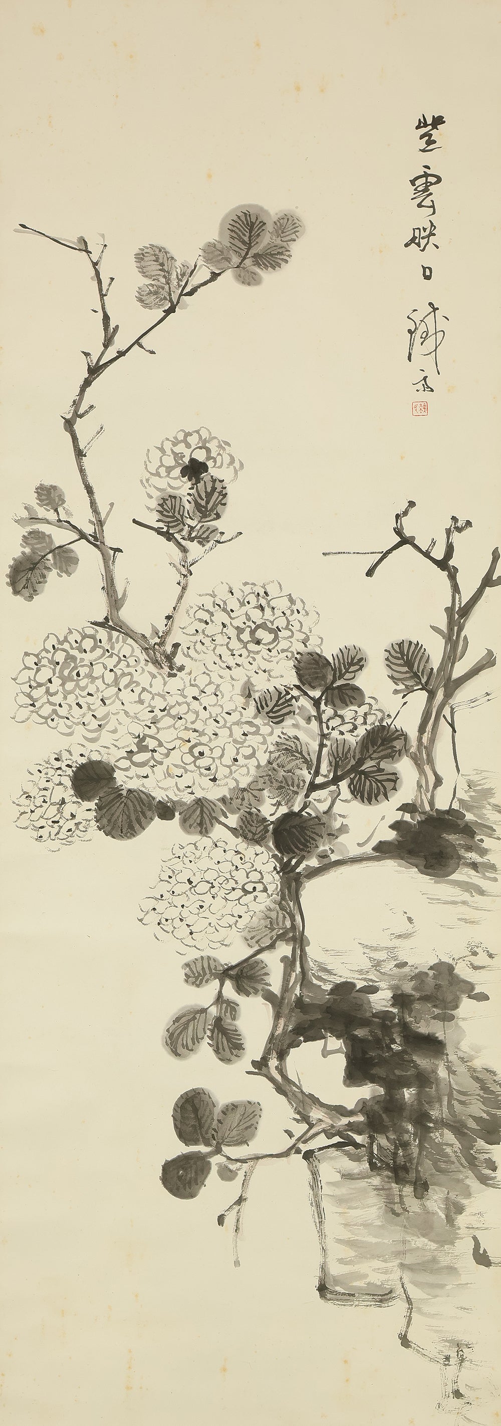 富岡鉄斎 Tomioka Tessai (1837-1924) Japanese art kakejiku kakemono wall hanging scroll / Suiboku Ink Hydrangea with Appraised Box RE348
