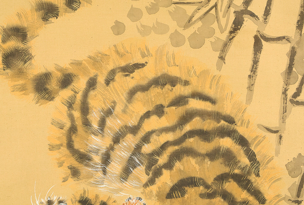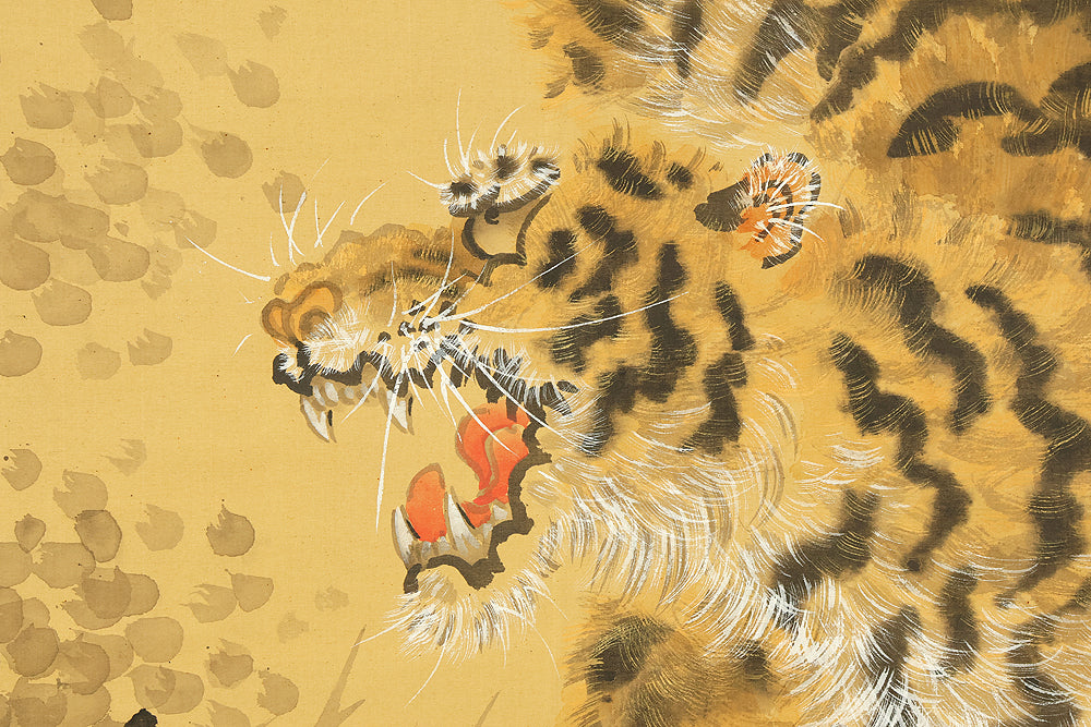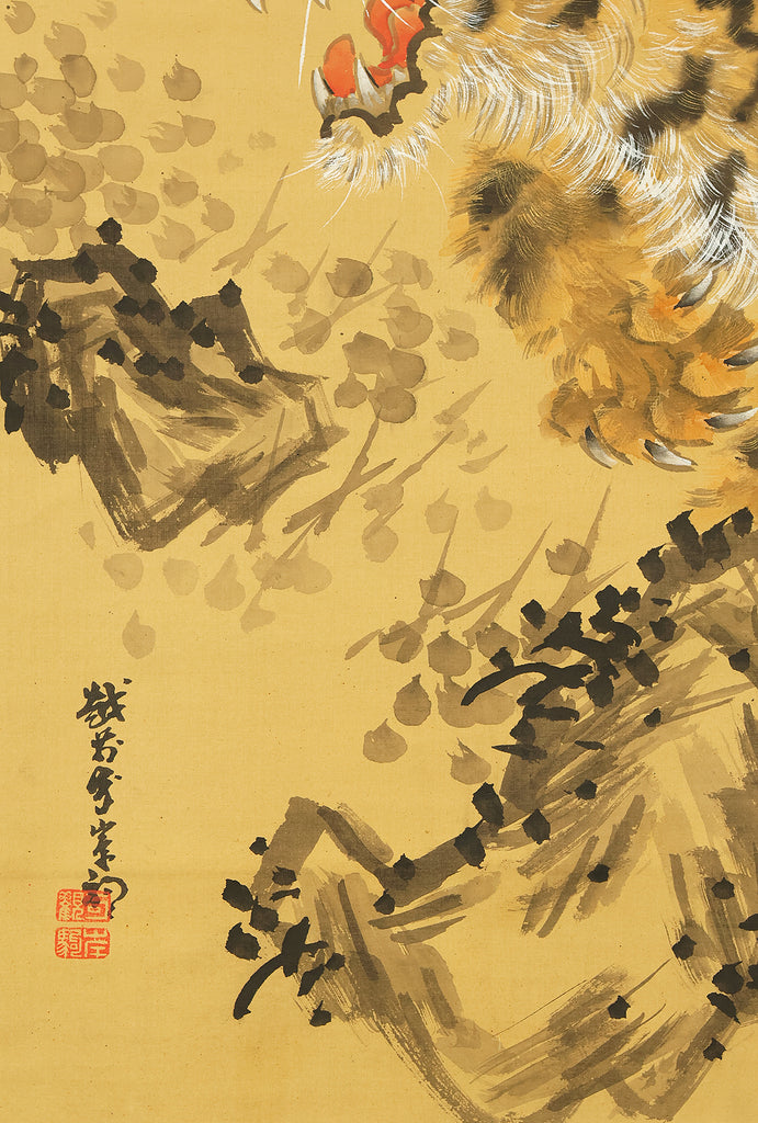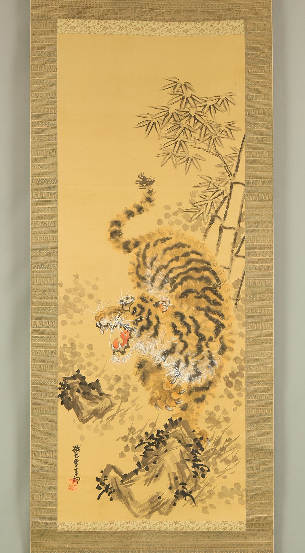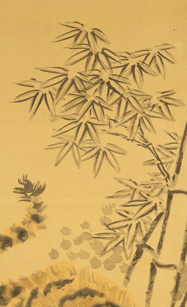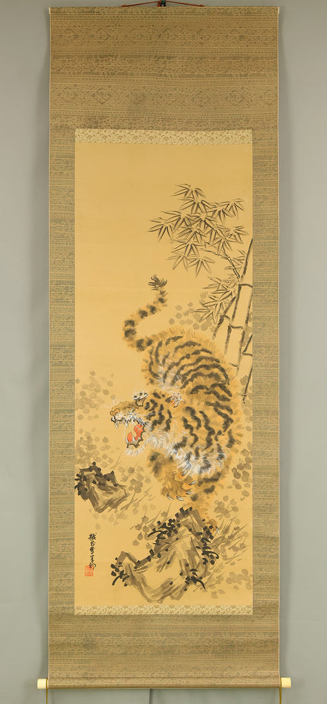 岸駒 Ganku (1749-1838) Japanese art kakejiku kakemono wall hanging scroll / Roaring Fierce Tiger and Bamboo with Box RE282