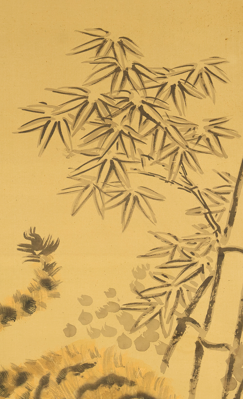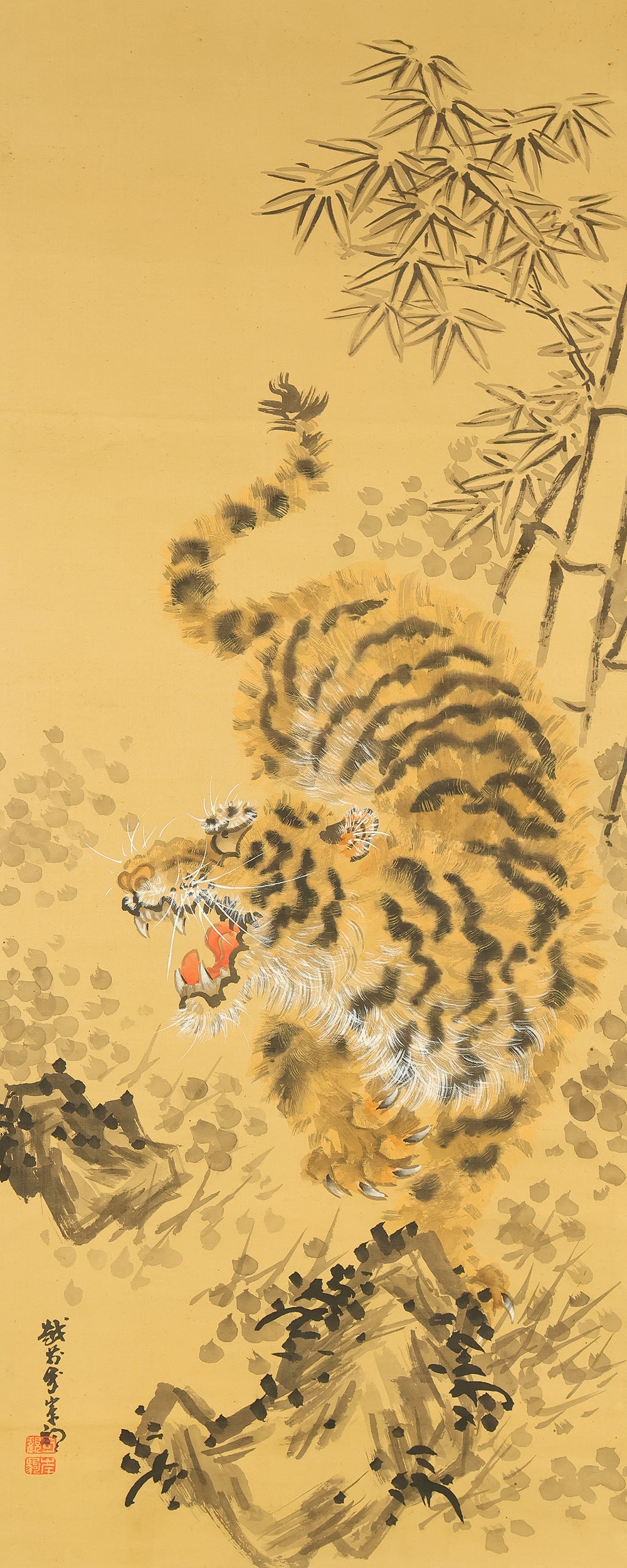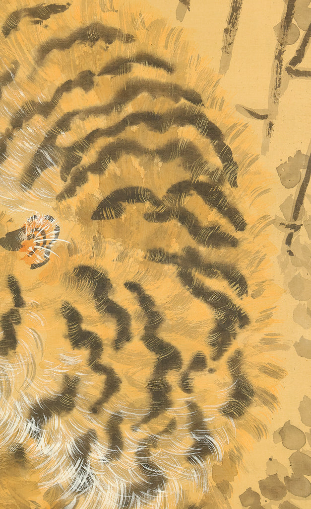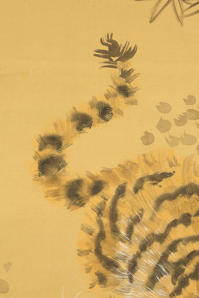 岸駒 Ganku (1749-1838) Japanese art kakejiku kakemono wall hanging scroll / Roaring Fierce Tiger and Bamboo with Box RE282