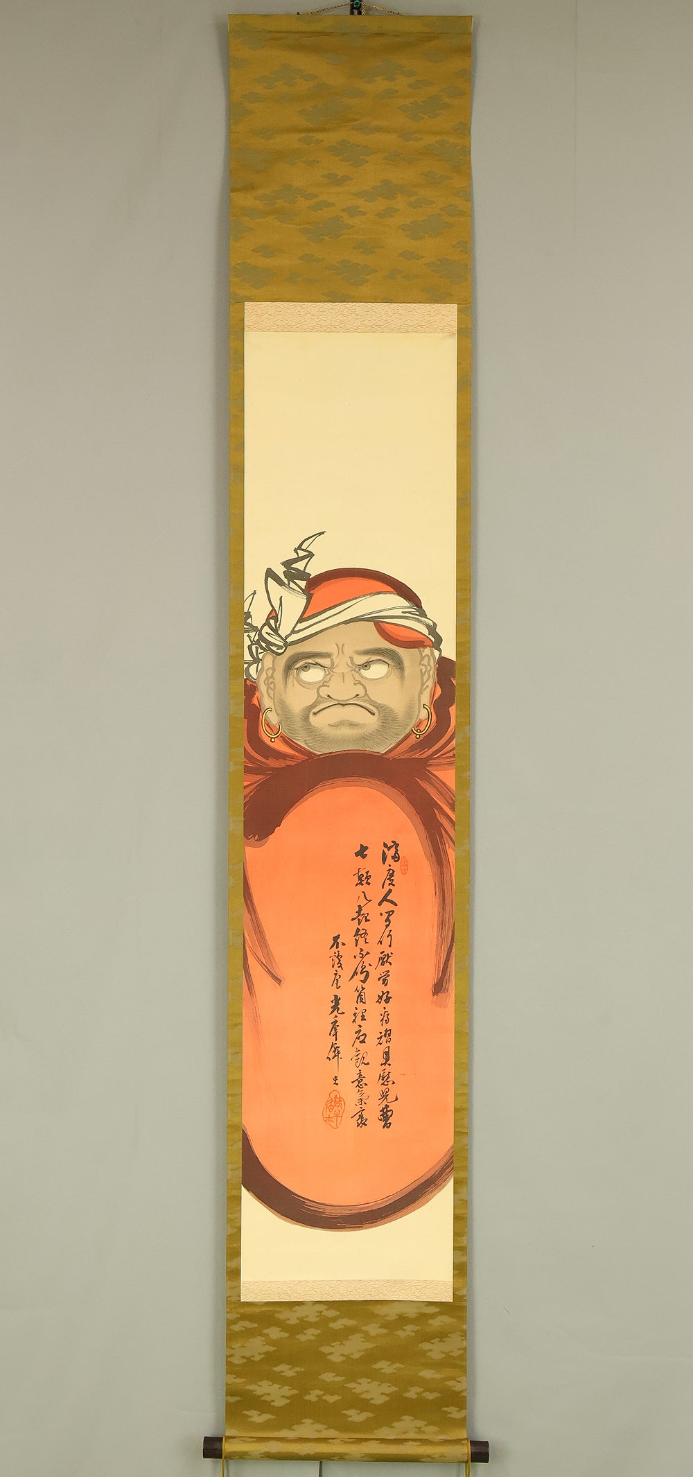 木村光年 Kimura Konen (b 1877) Japanese art kakejiku kakemono wall hanging scroll / Red Bodhidharma Daruma RE255