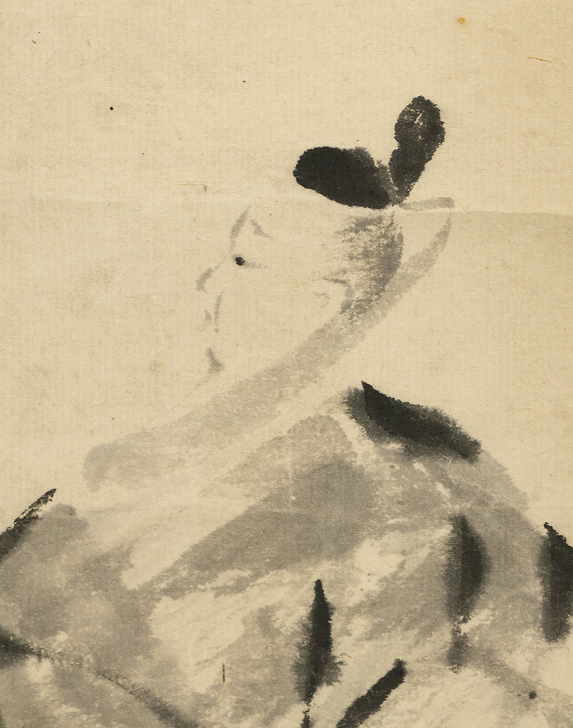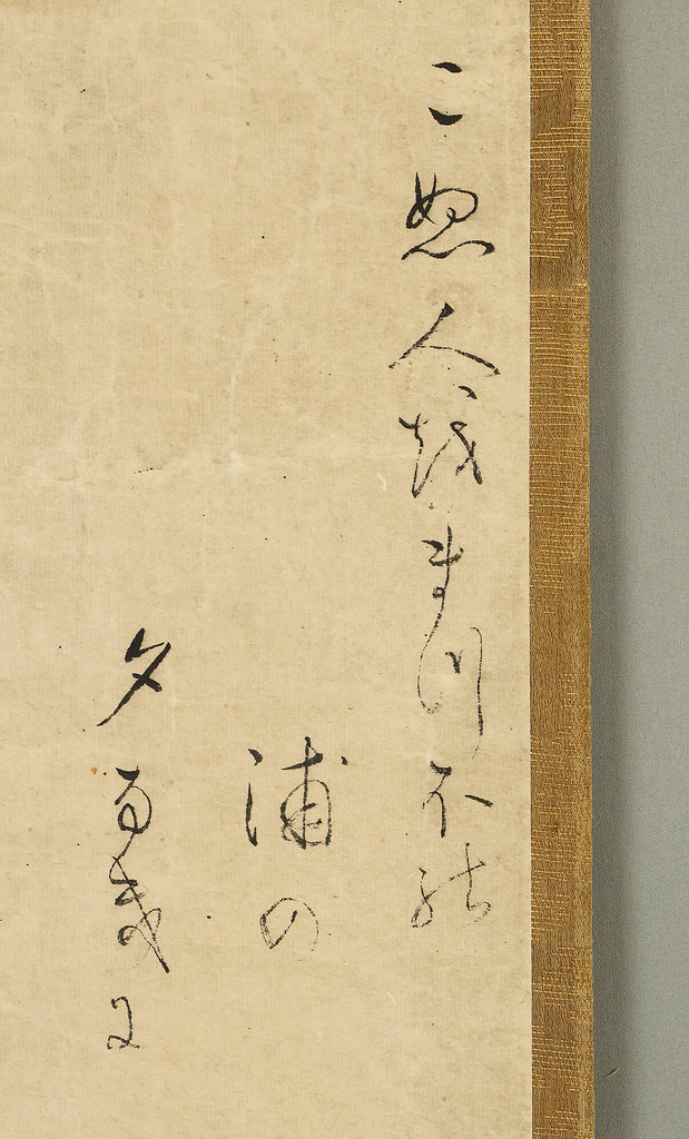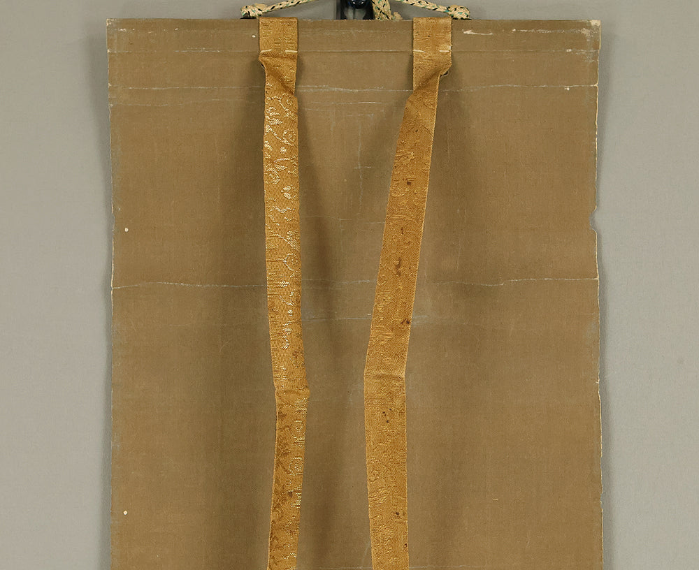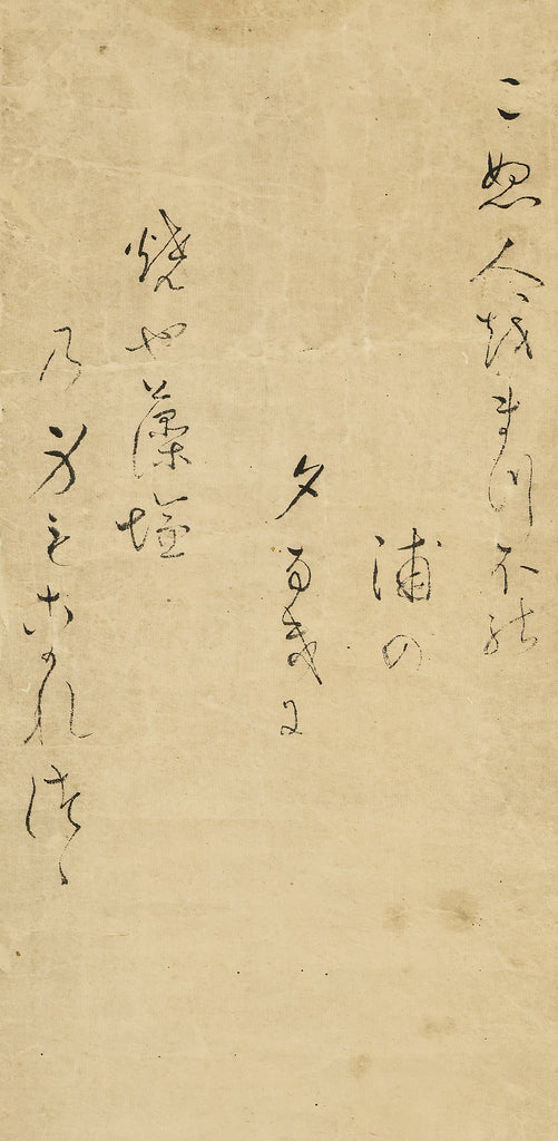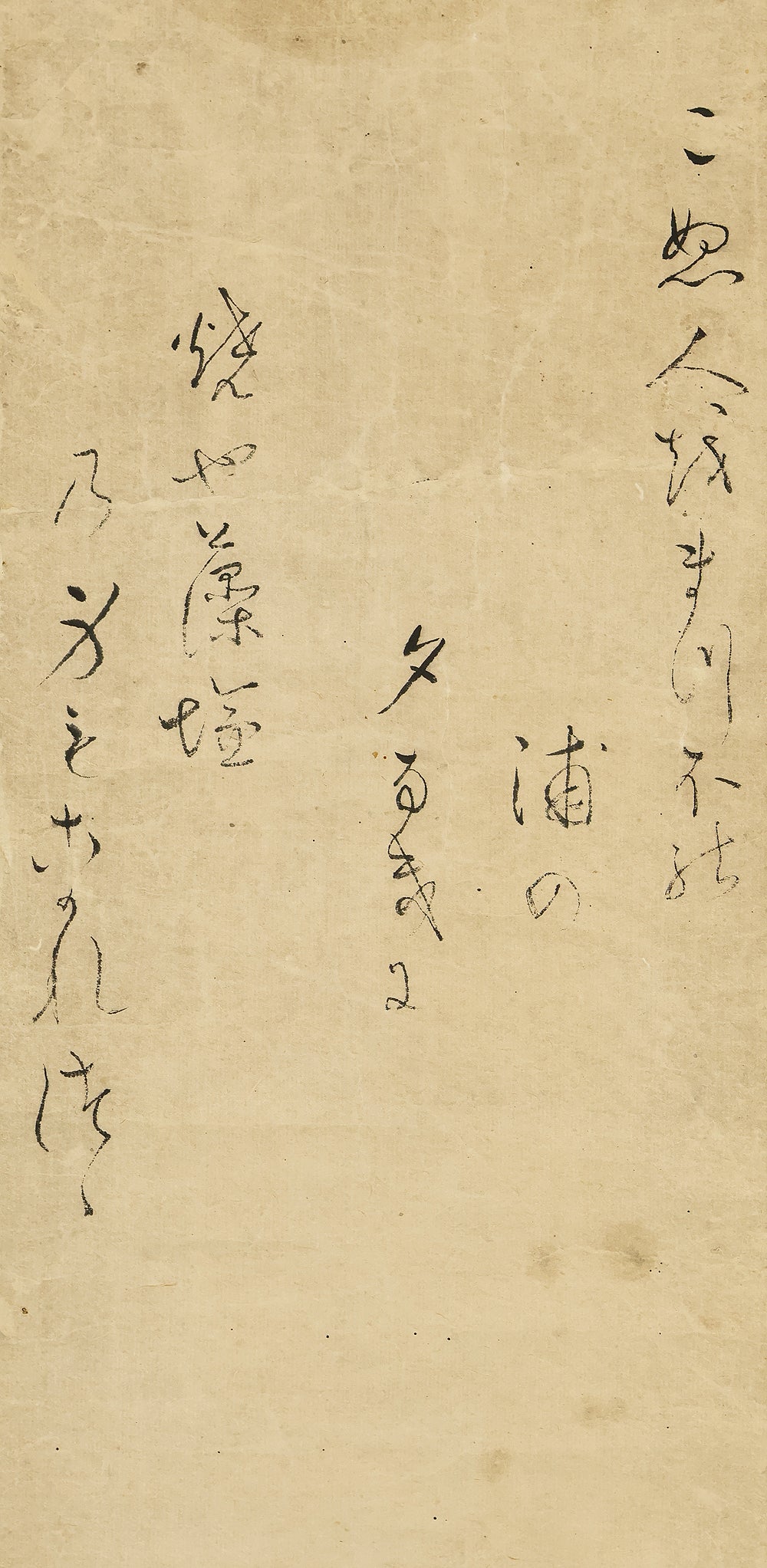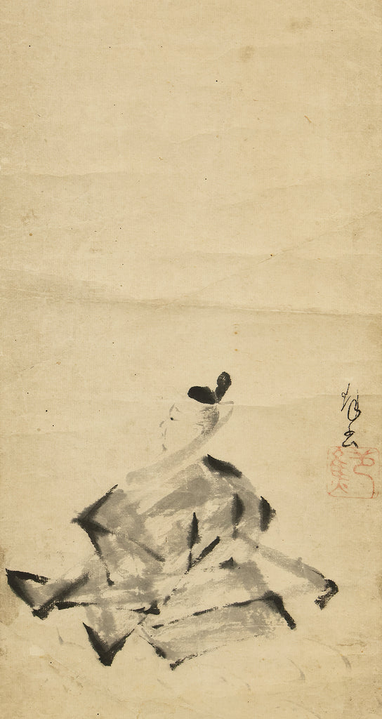 Steeped in the classical elegance of combined calligraphy and portraiture, this kakejiku attributed to Matsuo Bashō presents a refined depiction of Fujiwara no Sadaie (Teika) accompanied by one of his most celebrated waka. The flowing script conveys the emotional depth of the poem—