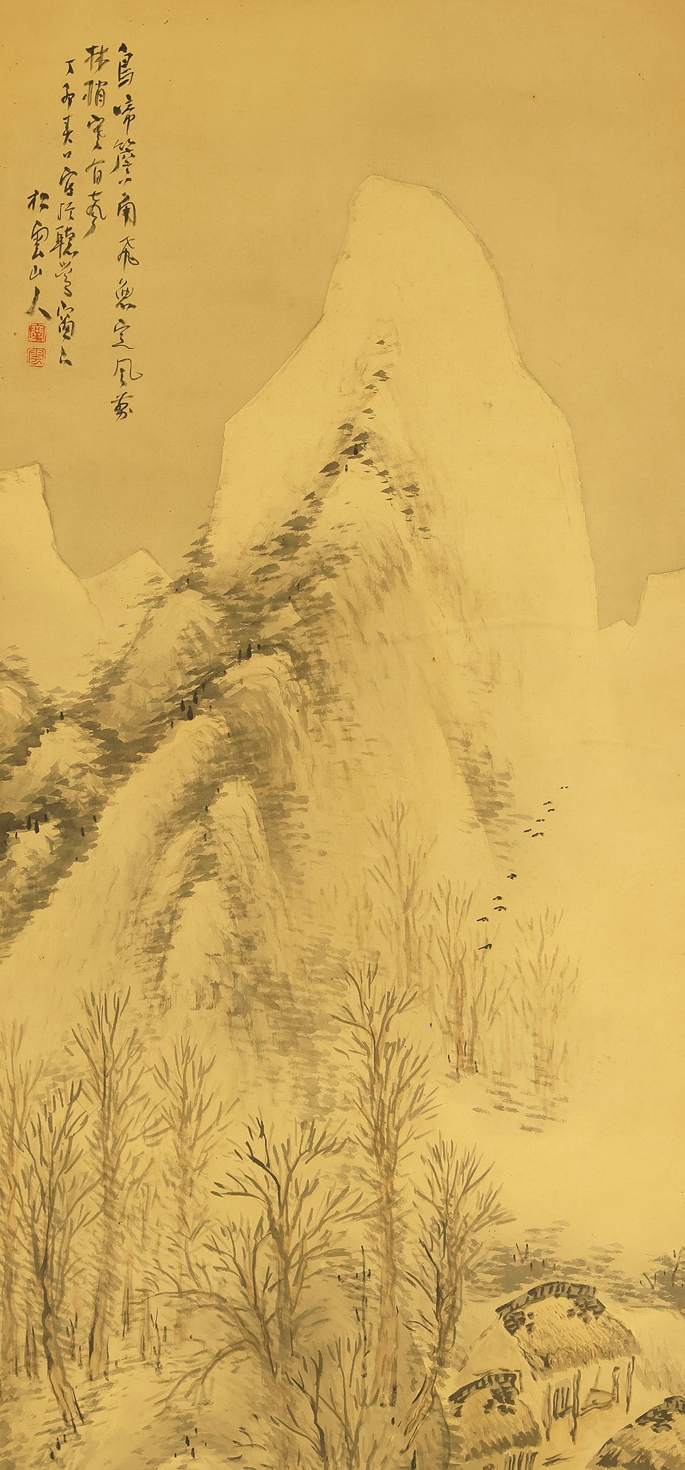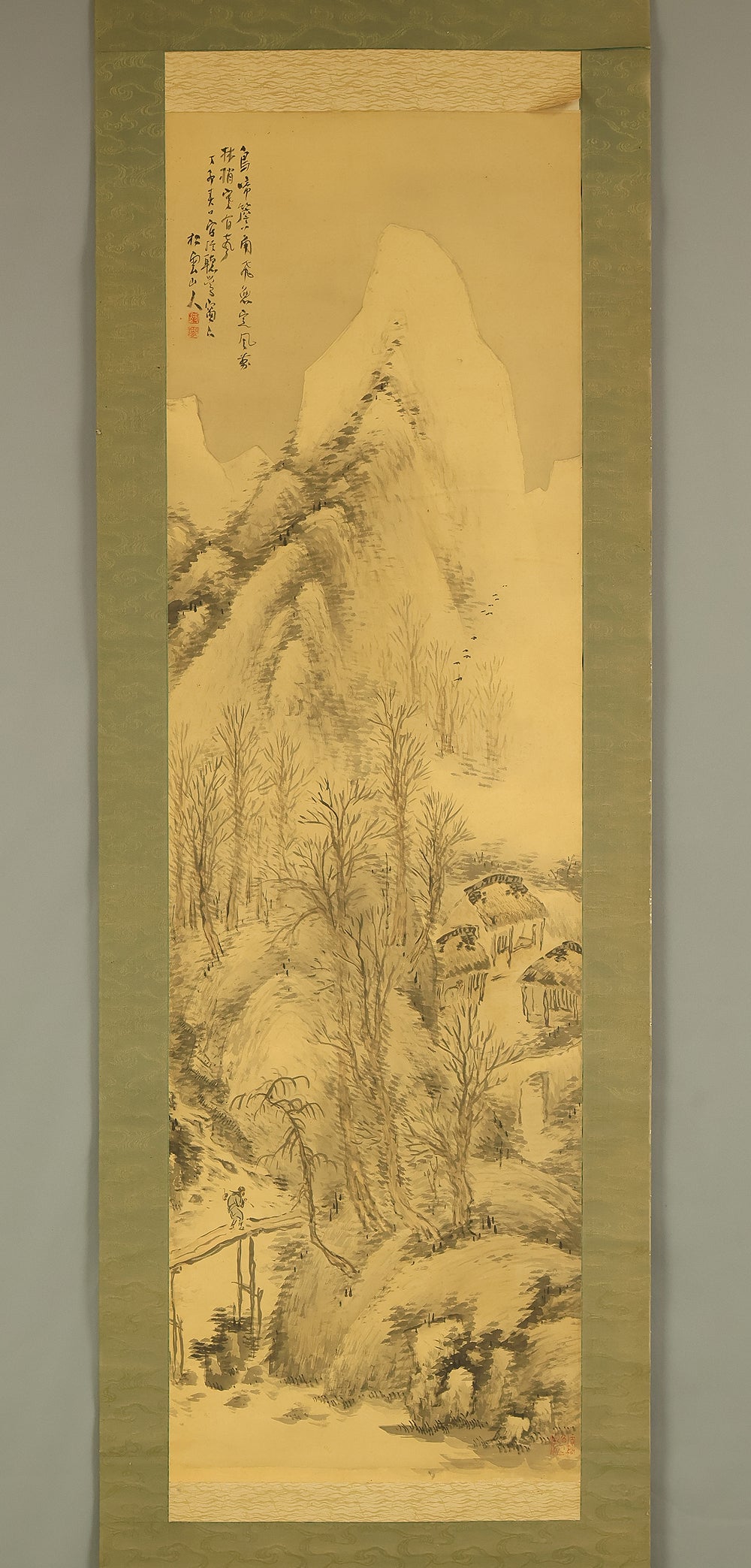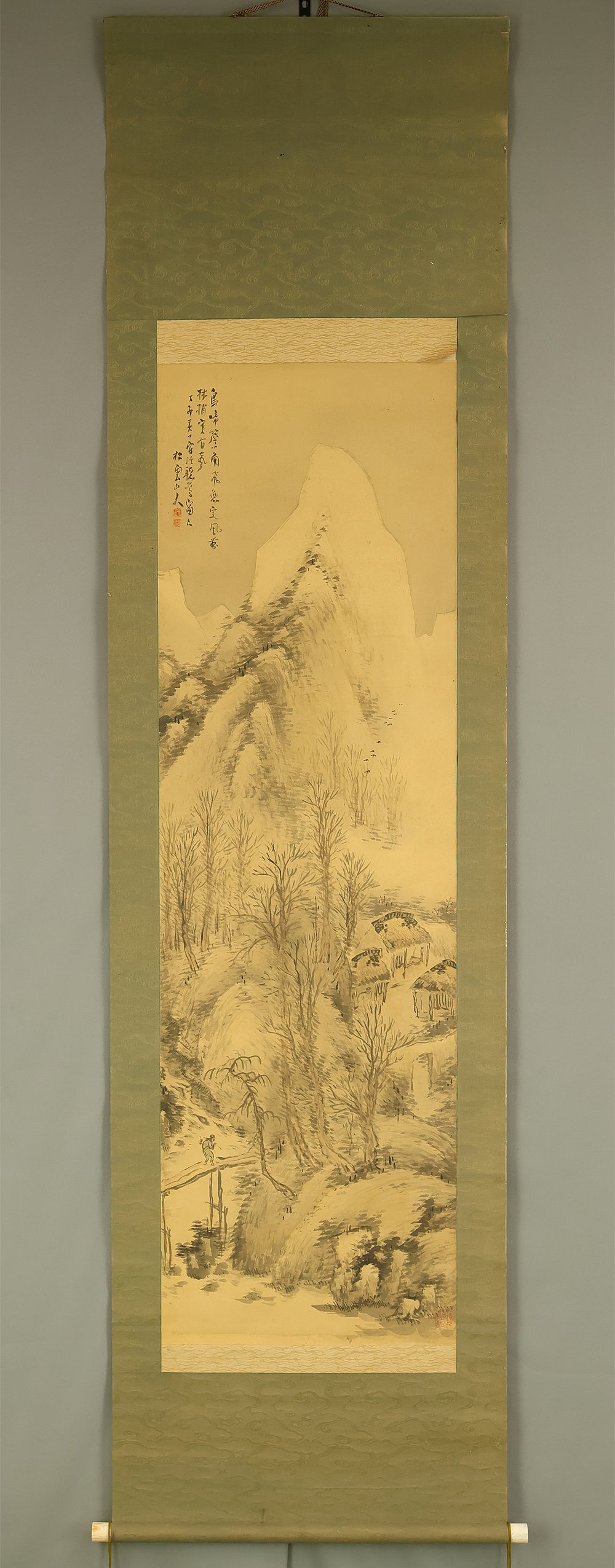 松雲 Shoun Japanese art kakejiku kakemono wall hanging scroll / Snowy Mountain Landscape RE292