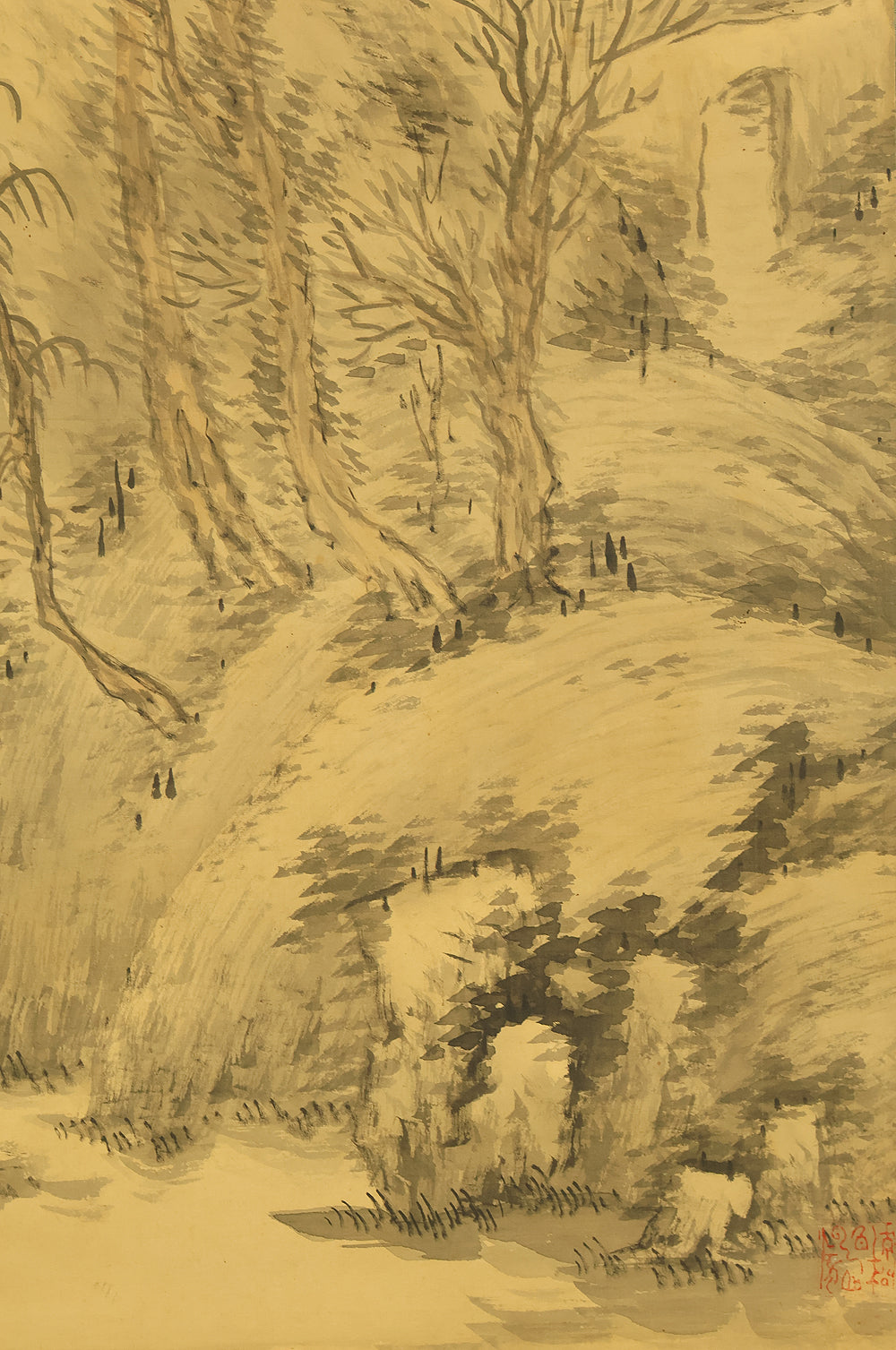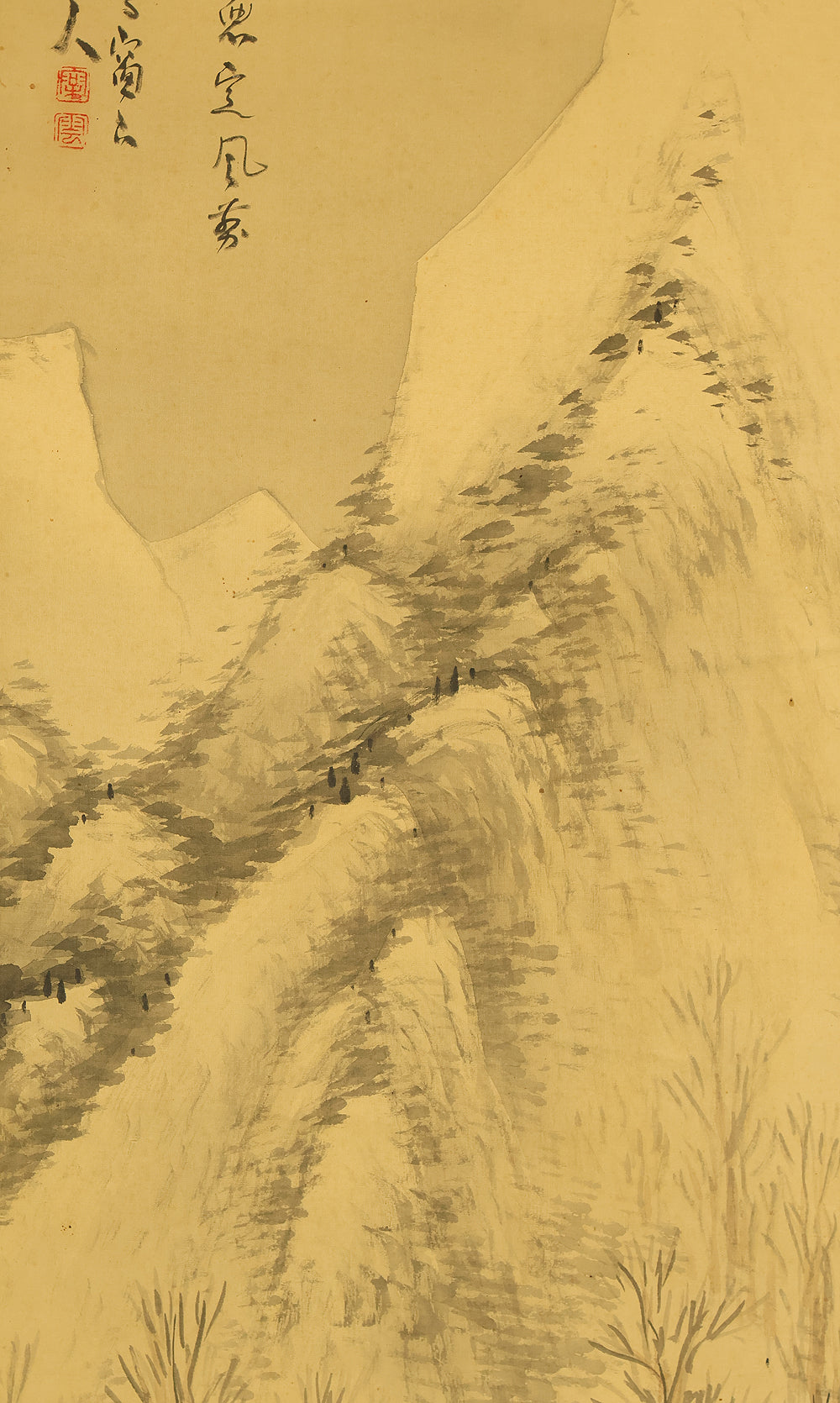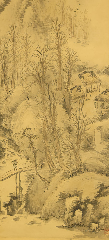 松雲 Shoun Japanese art kakejiku kakemono wall hanging scroll / Snowy Mountain Landscape RE292