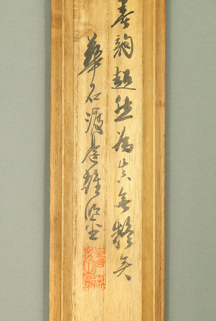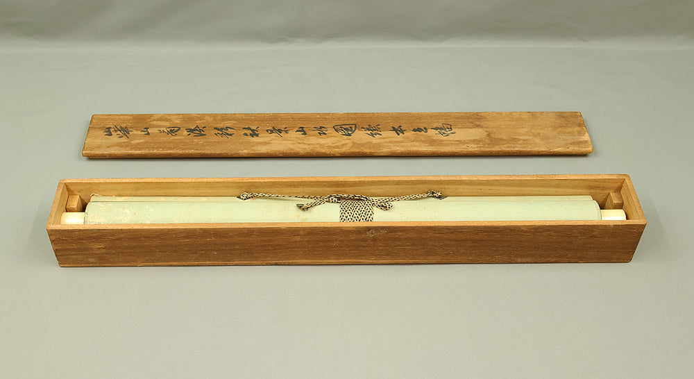 This scroll comes with an appraisal box by 'Watanabe Kaseki' 渡辺華石 (1852-1930)