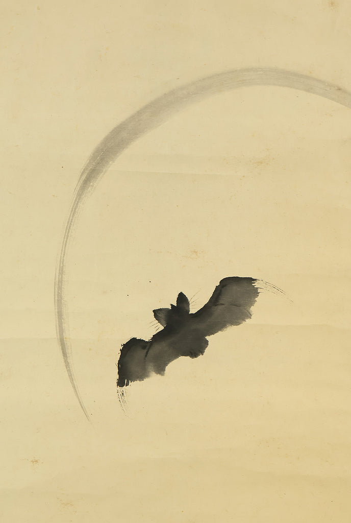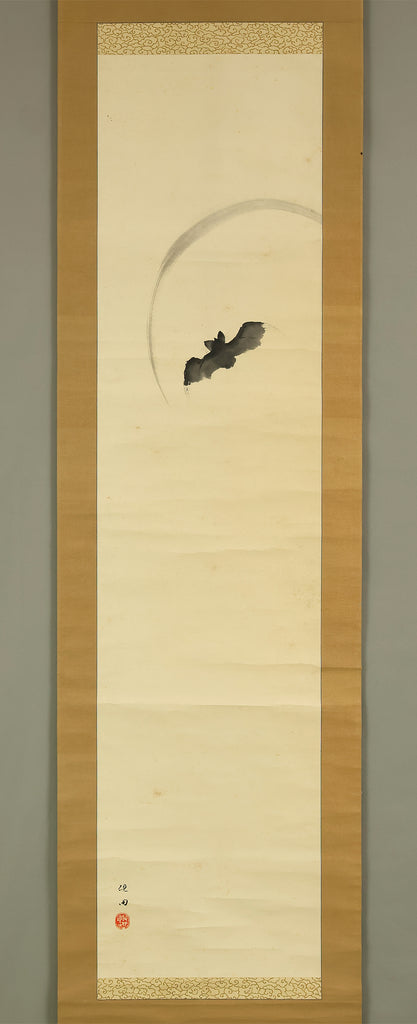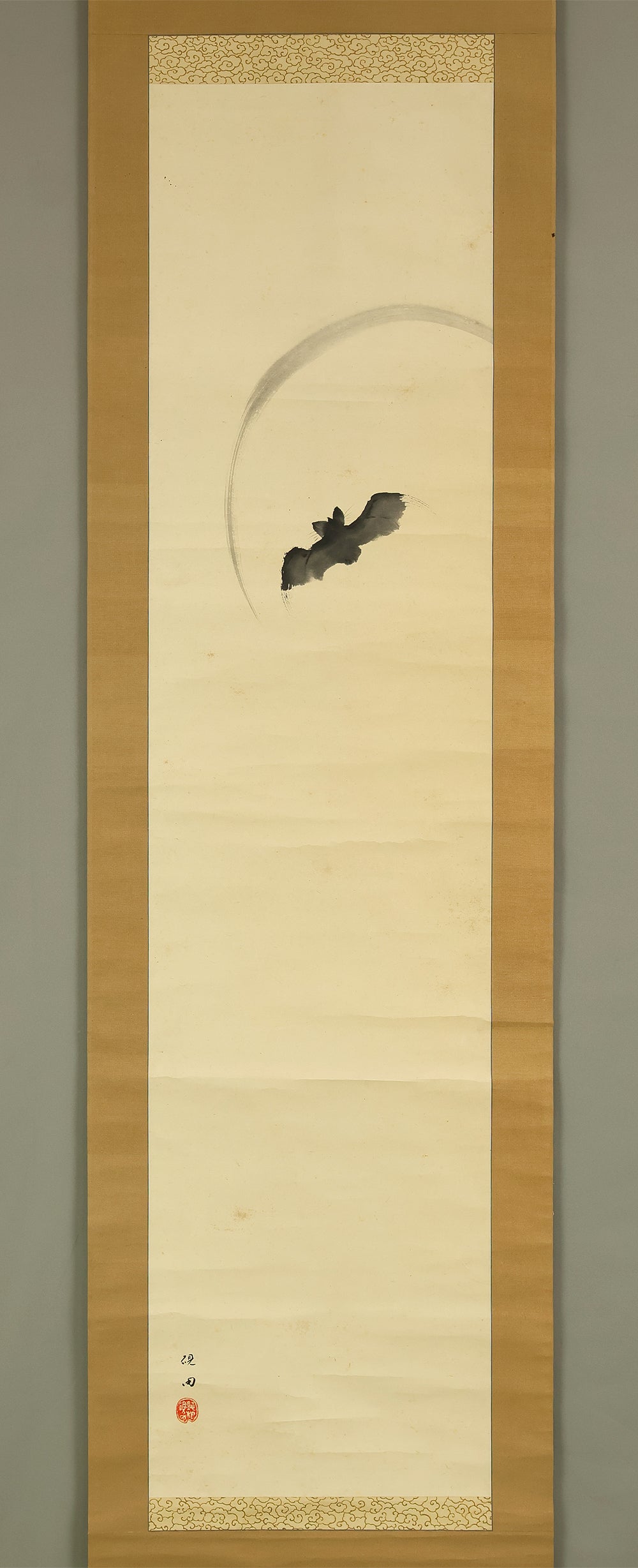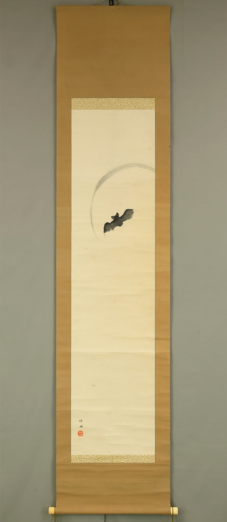硯田 Kenden Japanese art Kakejiku Kakemono wall hanging scroll / Moon and Bat RE313