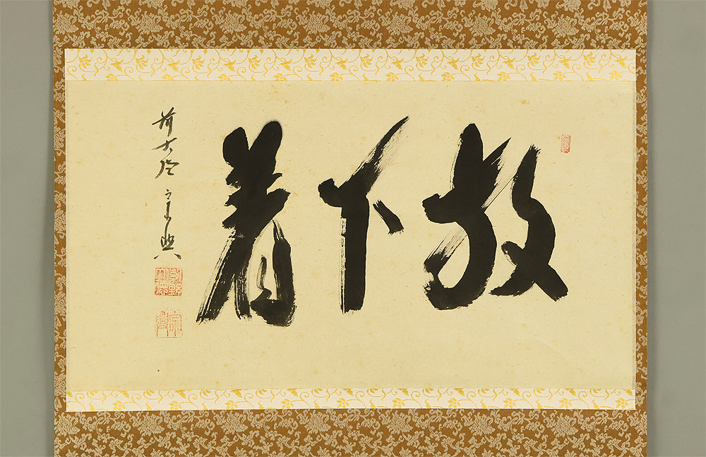 西垣宗興 Nishigaki Soko (1908-1985) Daitoku-ji Japanese Zen kakejiku kakemono wall hanging scroll / 放下着 Hogejaku with Original Box (Tomobako) RE222