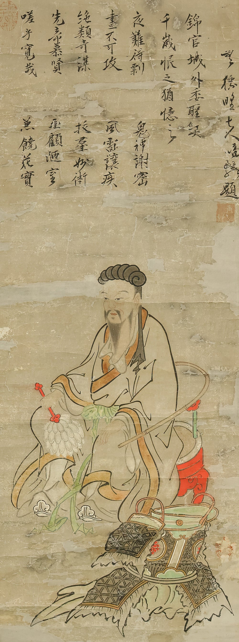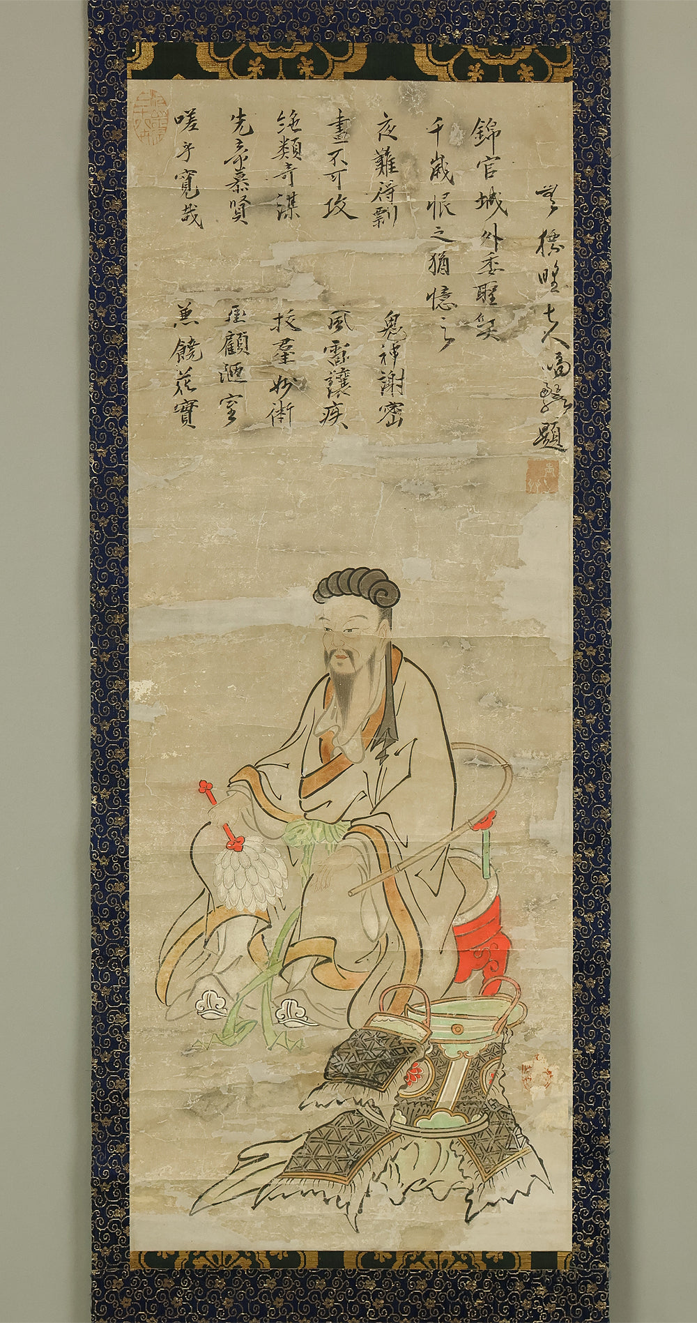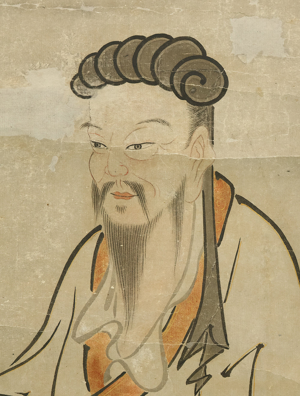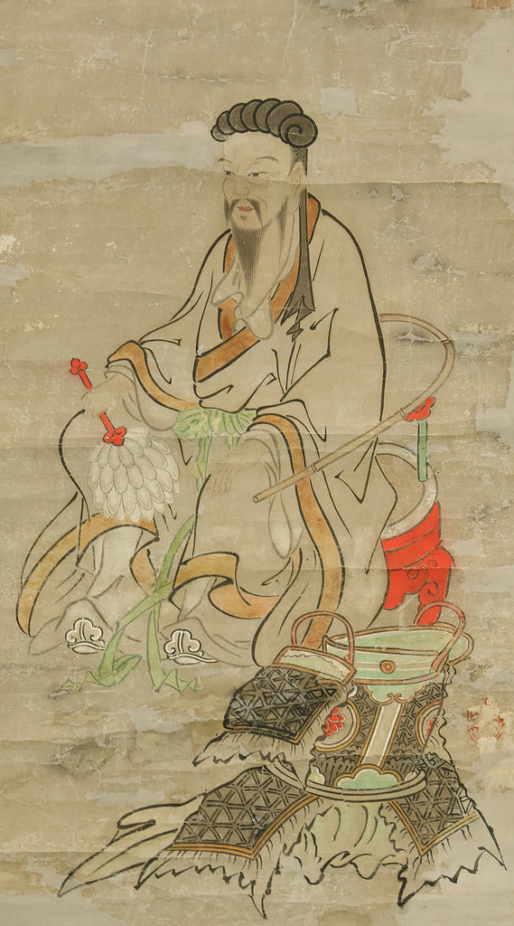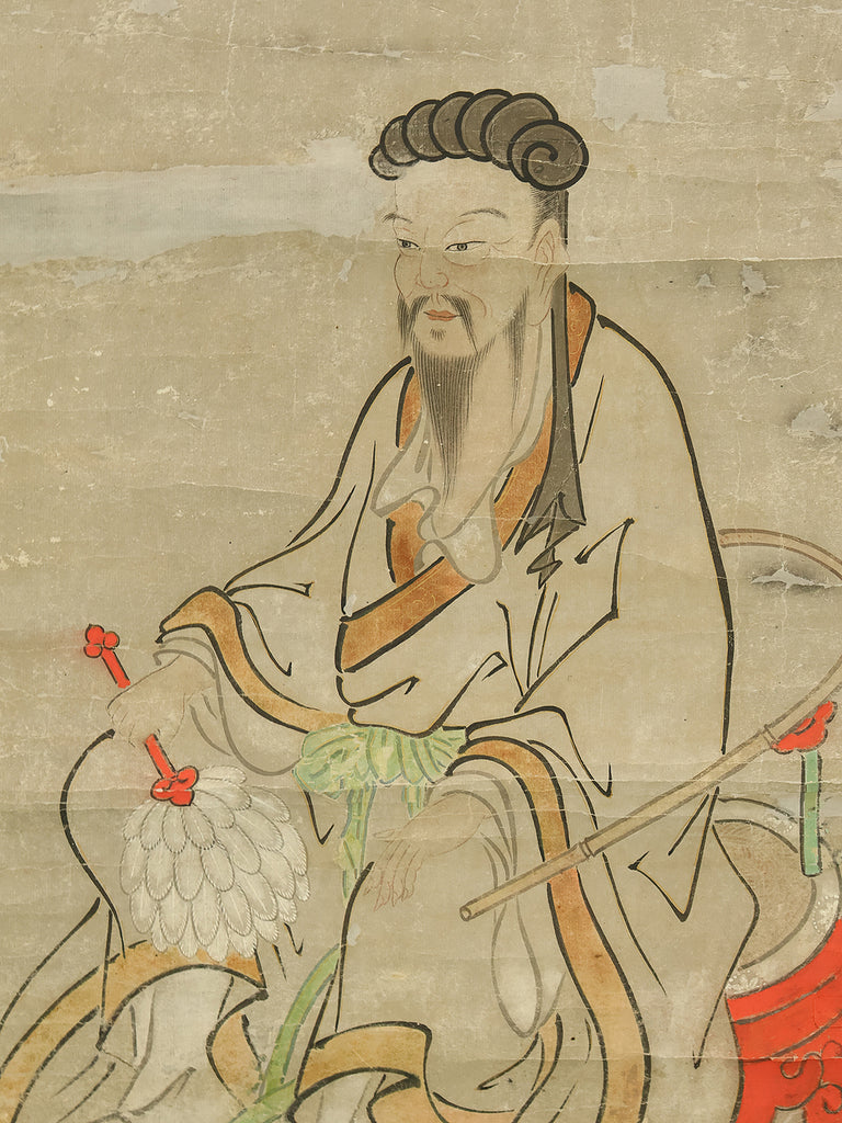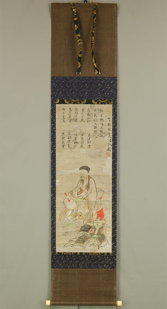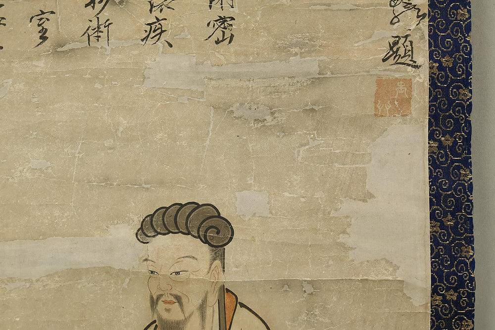 Attributed to 宮本武蔵 Miyamoto Musashi (1584-1645) Japanese antique art kakejiku kakemono wall hanging scroll / Koshi 孔子像 (Portrait of Confucius) with Box RE330