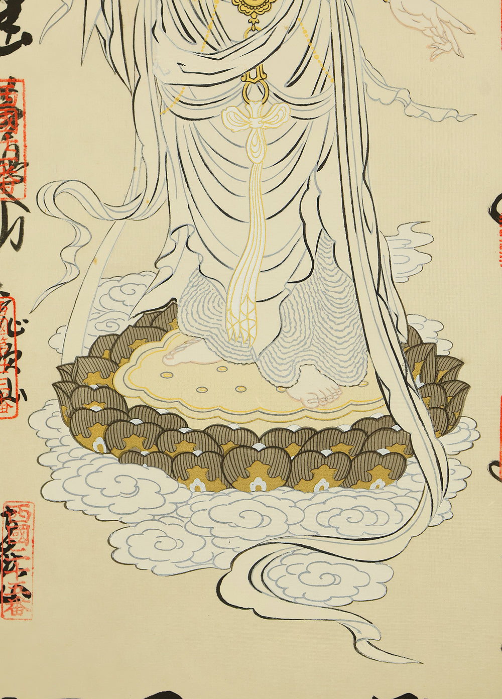Saigoku Sanjūsanjo 西国三十三所 (33 Pilgrimage Places in the West) - Unjo kannon 雲上聖観音 (Avalokitesvara Bodhisattva Standing on Cloud) with Box / Japanese Buddhism art kakejiku kakemono wall hanging scroll RE242