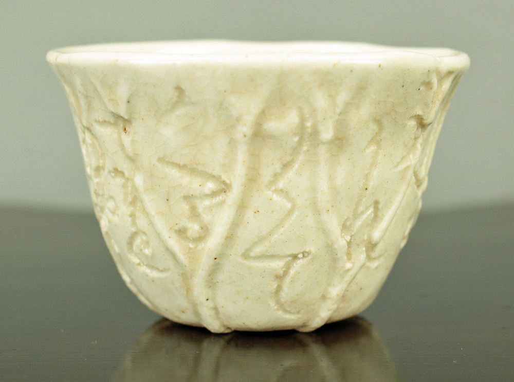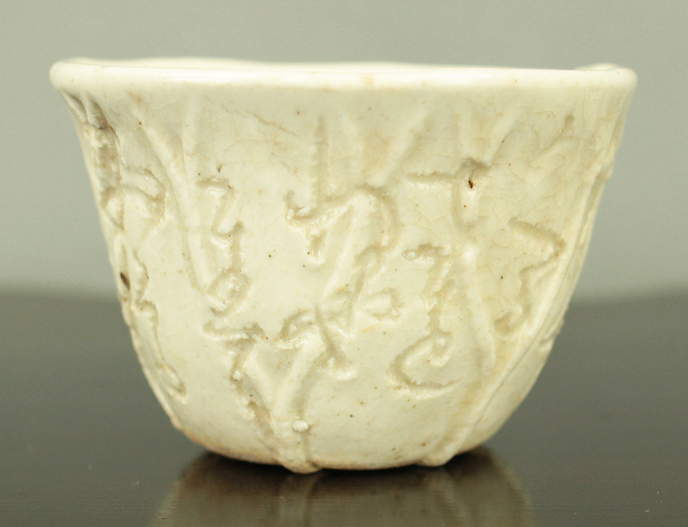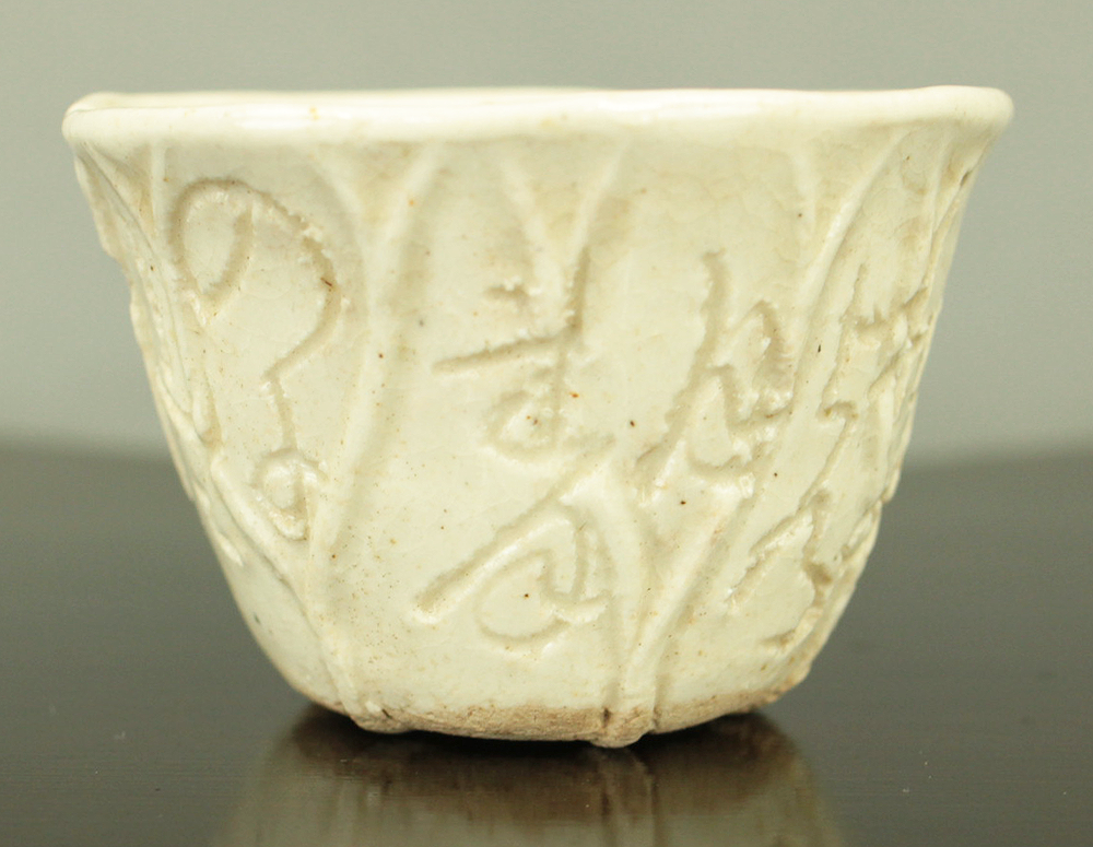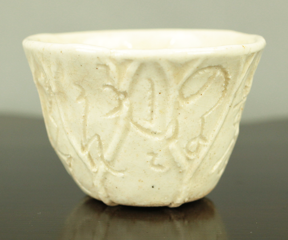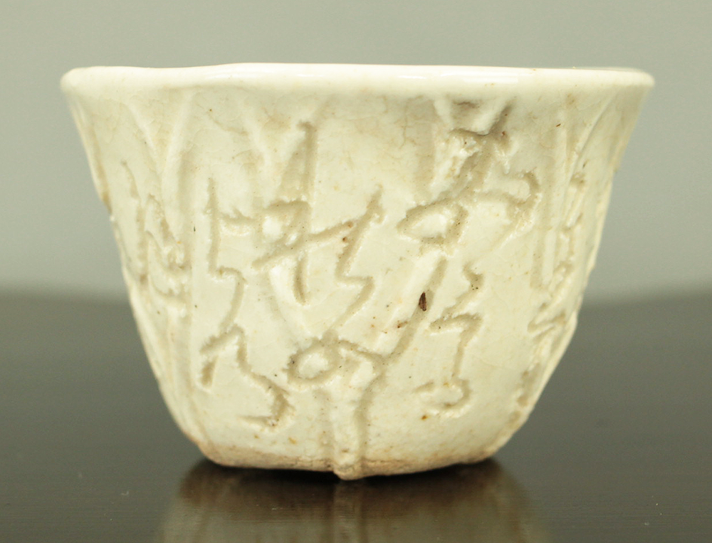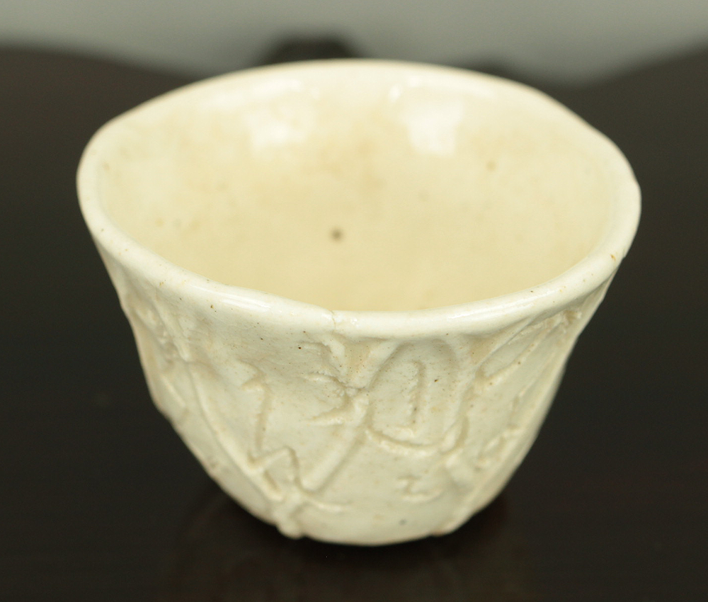 大田垣蓮月 Otagaki Rengetsu (1791-1875) Iron Nail Carving Waka Poem Sake Cup Guinomi 野に山に うかれうかれて かへるさを ねやまでおくる 秋のよの月 No ni yama ni ukare ukare te kaerusa wo neya made okuru aki no yo no tsuki. VA789