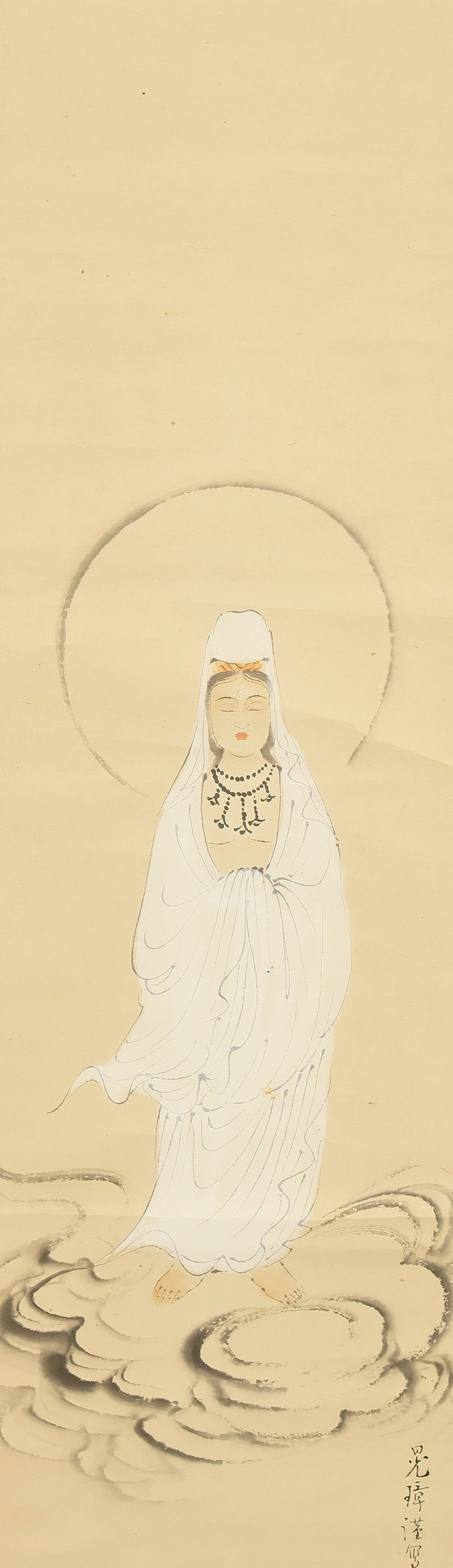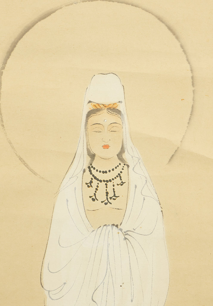 晃璋 Kosho Japanese art kakejiku kakemono wall hanging scroll / Kannon Bosatsu Dressed in White Robes RE591