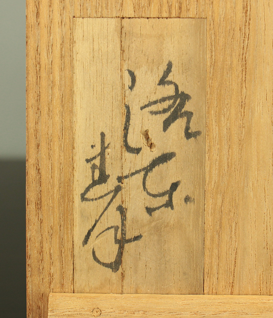 Each cup carries the spirit of Rengetsu’s philosophy—ephemeral beauty, modest joy, and spiritual resilience. The poems reflect seasonal nuance and playful reverence for nature and sake, themes often found in her work. The set is housed in a wooden box, inscribed with “Rakutō Rengetsu” (洛東蓮月), indicating her Kyoto origin and artistic identity. Rengetsu’s life was marked by profound loss, spiritual devotion, and artistic generosity. Her pottery, often sold to support the poor, remains deeply cherished for its sincerity and poetic grace. This ensemble offers collectors a rare opportunity to engage with Rengetsu’s legacy through both visual form and literary voice—an intimate fusion of art, poetry, and compassion.