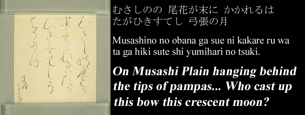 Musashino no obana ga sue ni kakare ru wa ta ga hiki sute shi yumihari no tsuki.