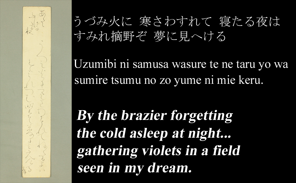 うづみ火に 寒さわすれて 寝たる夜は すみれ摘野ぞ 夢に見へける