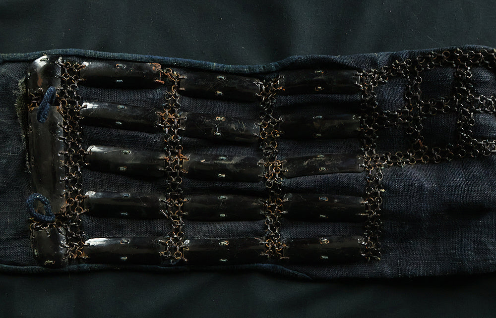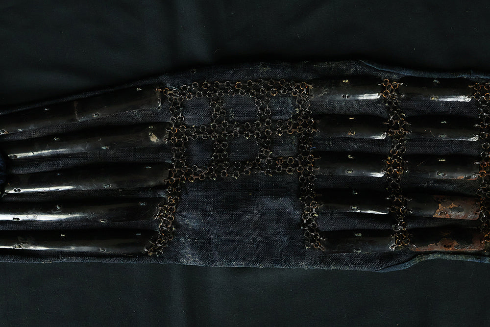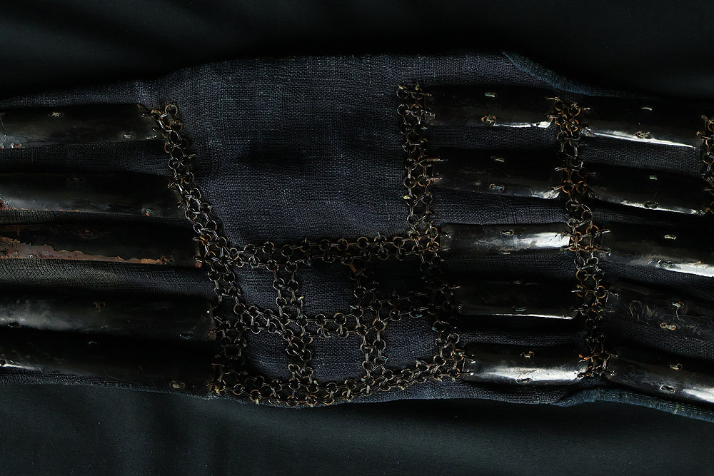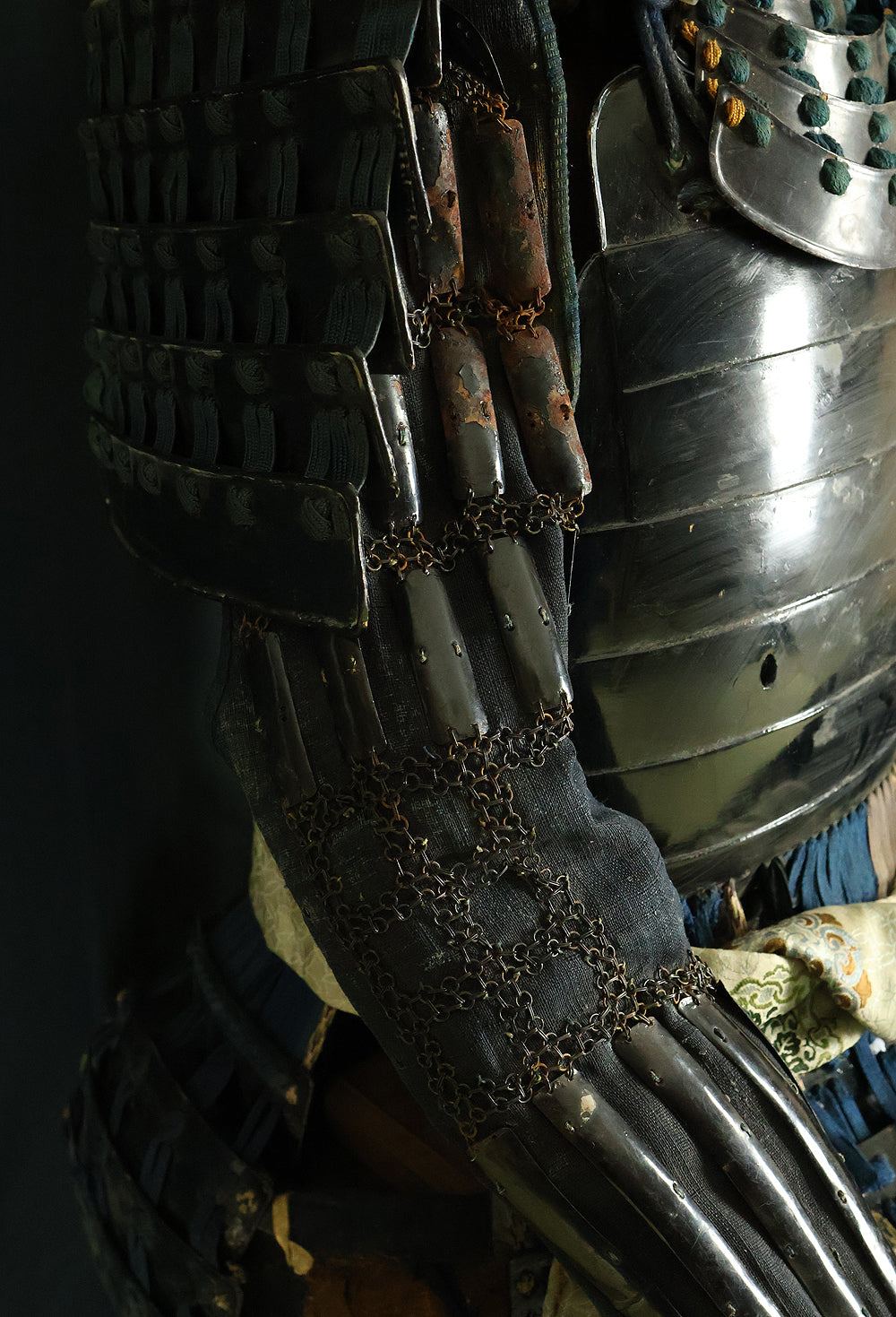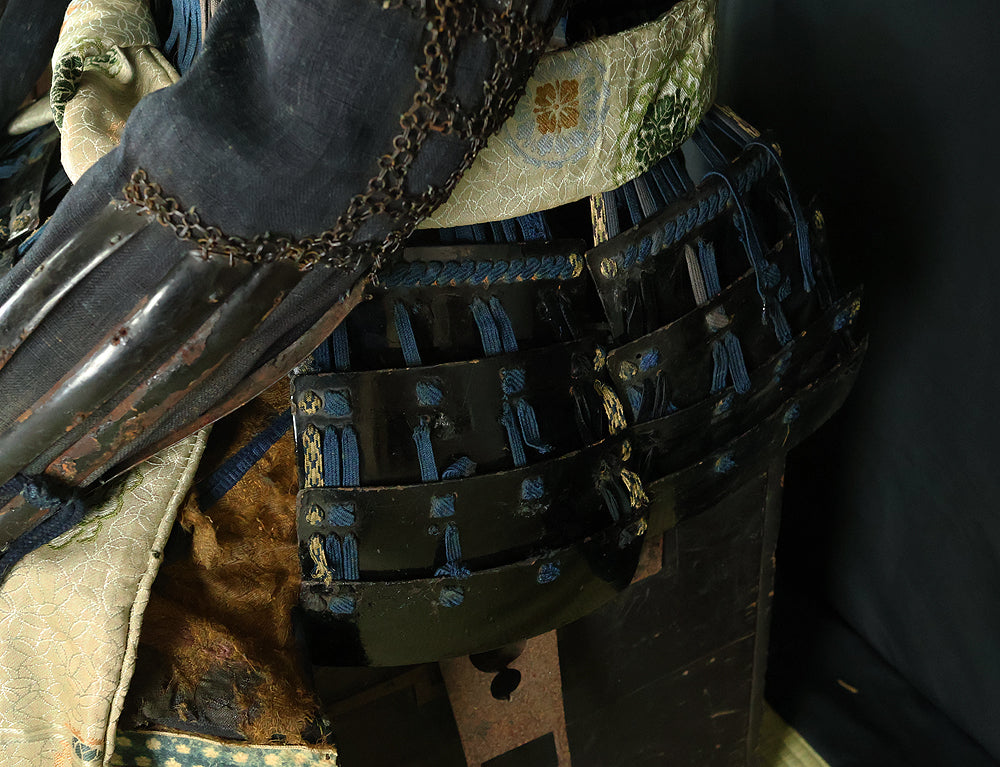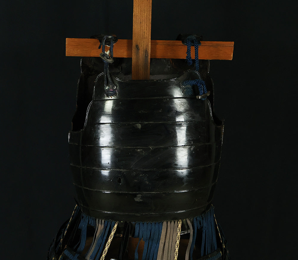 Authentic Edo Period Samurai Armor Kacchu Yoroi, Life-Size Black Lacquered Iron with Kabuto, Menpo, Armor Stand and Storage Box VB135