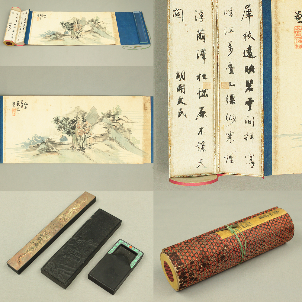 Geirinchinsho 芸林珍賞 Chinese Calligraphy Ink Box / Chinese Mountain Village Landscape Painting and Calligraphy Ink Storage Box VA733