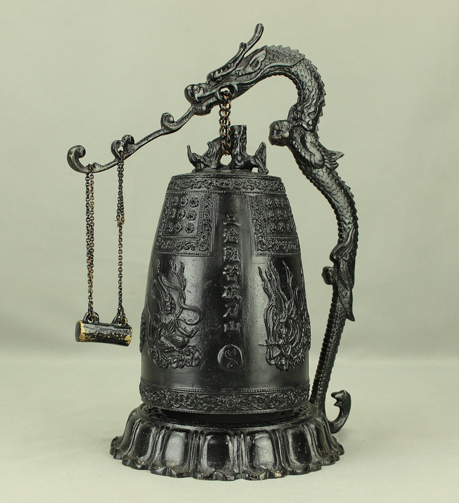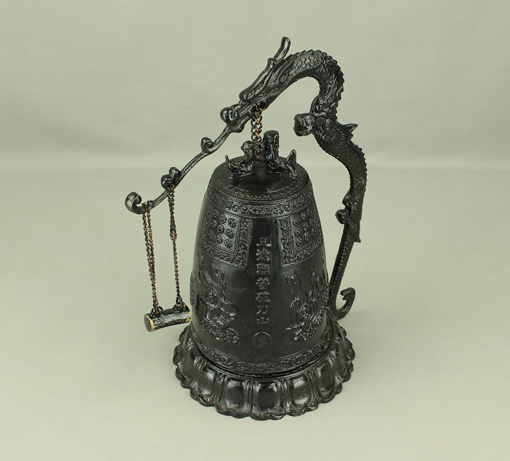 Qing Dynasty Bronze Beast Decorated Temple Bell Hanging Bell Bonsho 20cm 2.5kg with Bell Hammer and Box VA714
