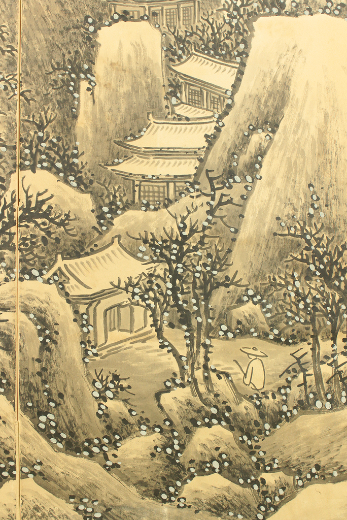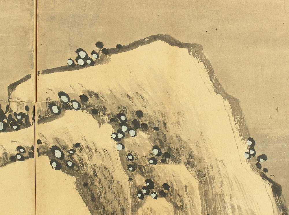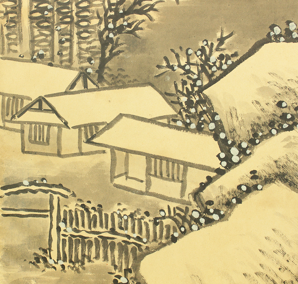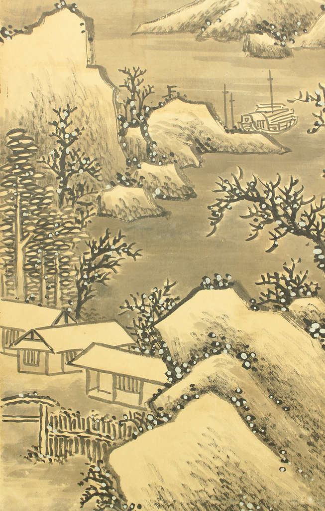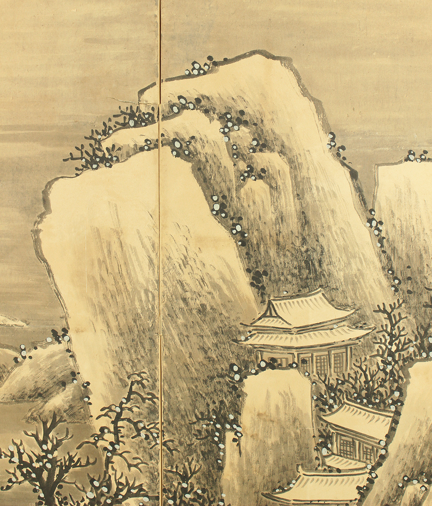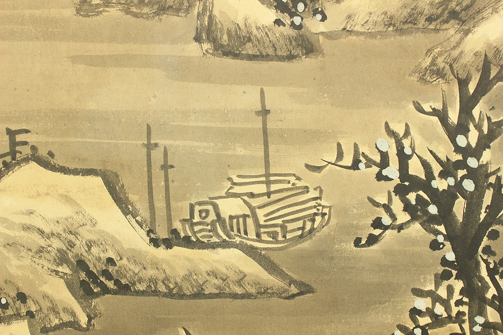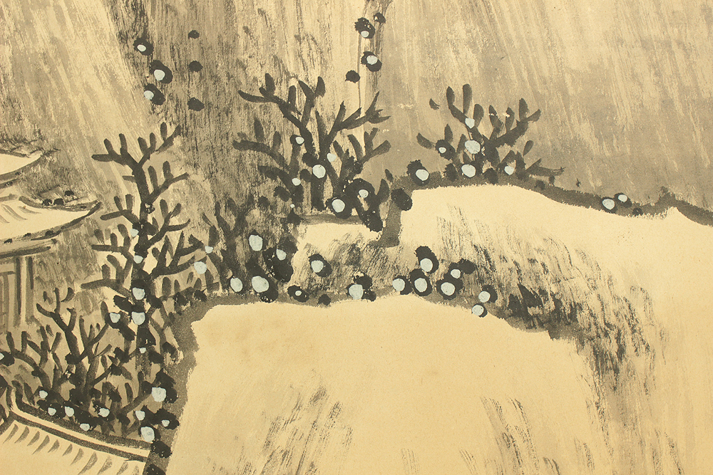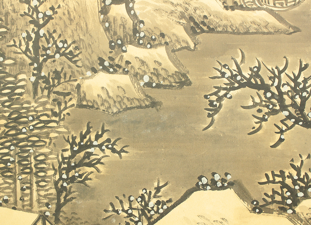大橋廉堂 Ohashi Kendo (1897-1951) Two Panels Folding Screens Byobu Room Dividers / Winter Landscape Sansui VA749