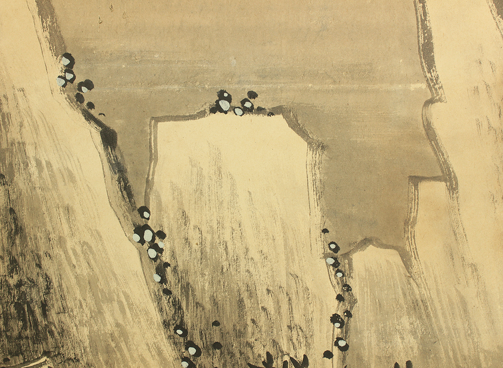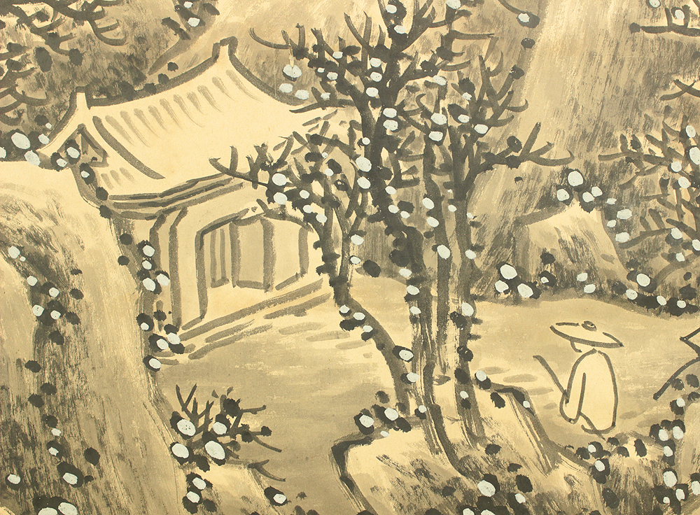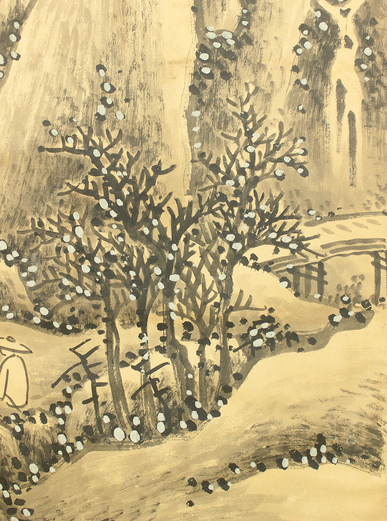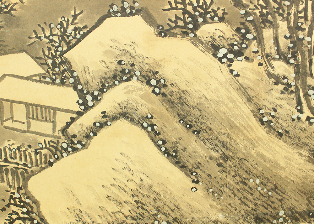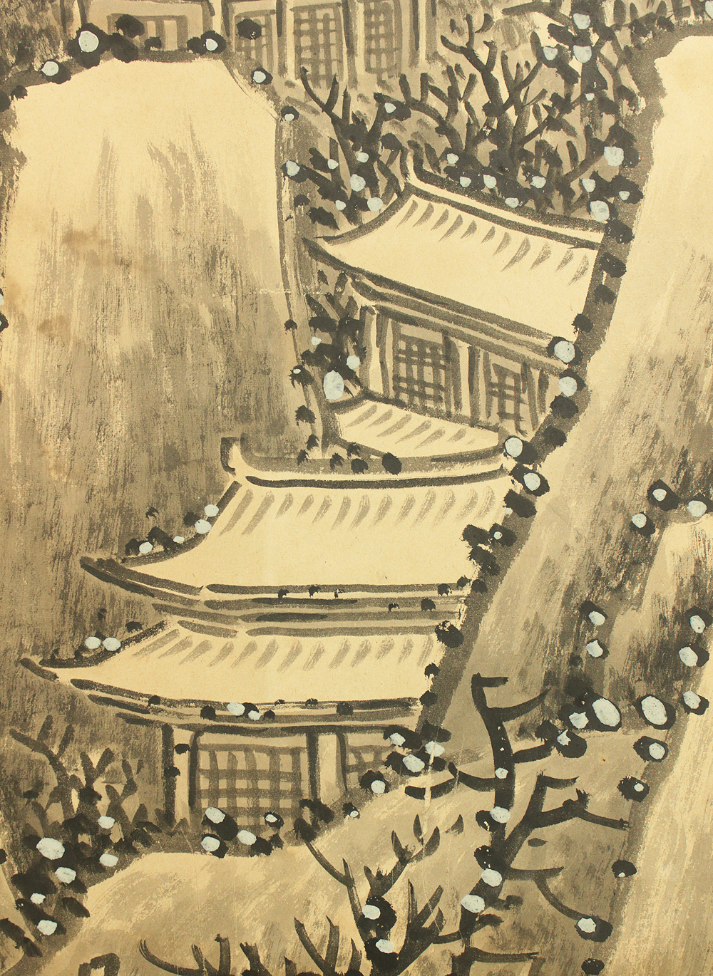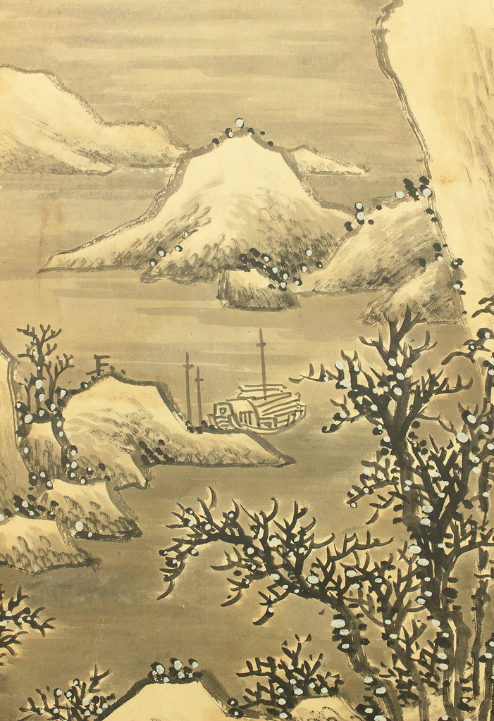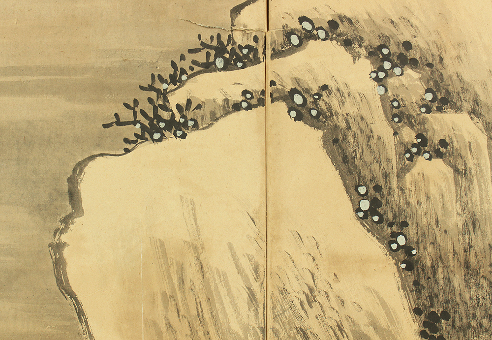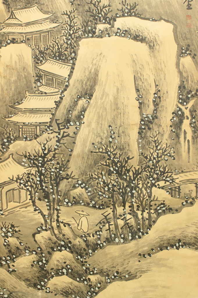大橋廉堂 Ohashi Kendo (1897-1951) Two Panels Folding Screens Byobu Room Dividers / Winter Landscape Sansui VA749