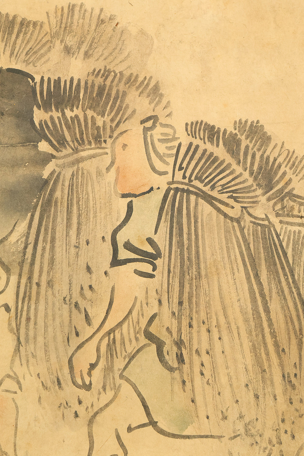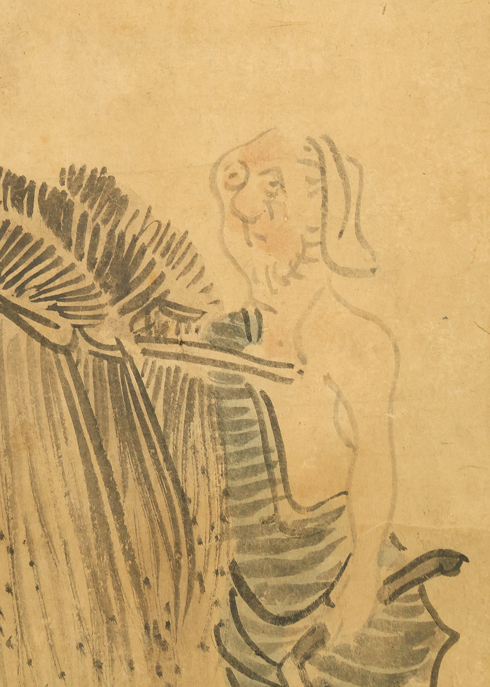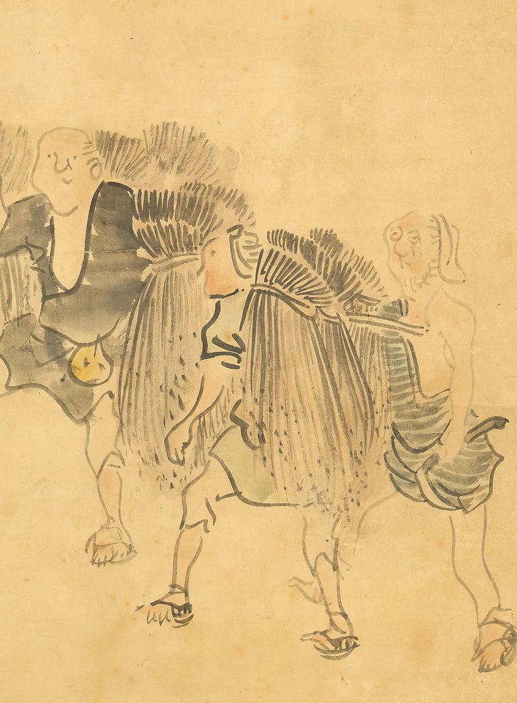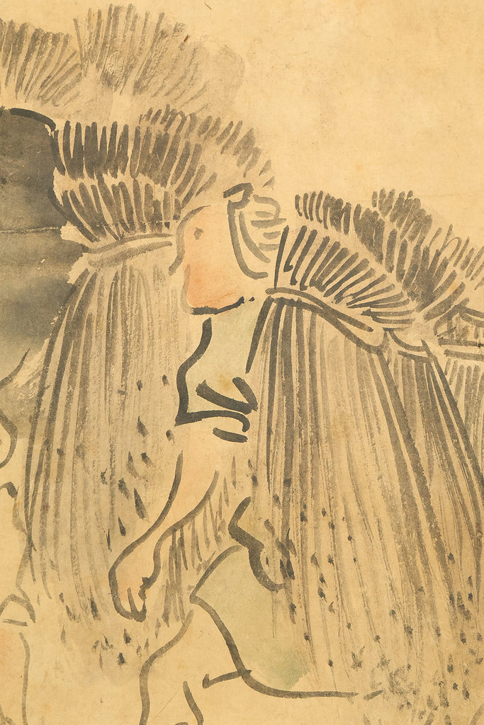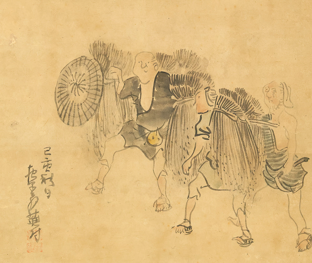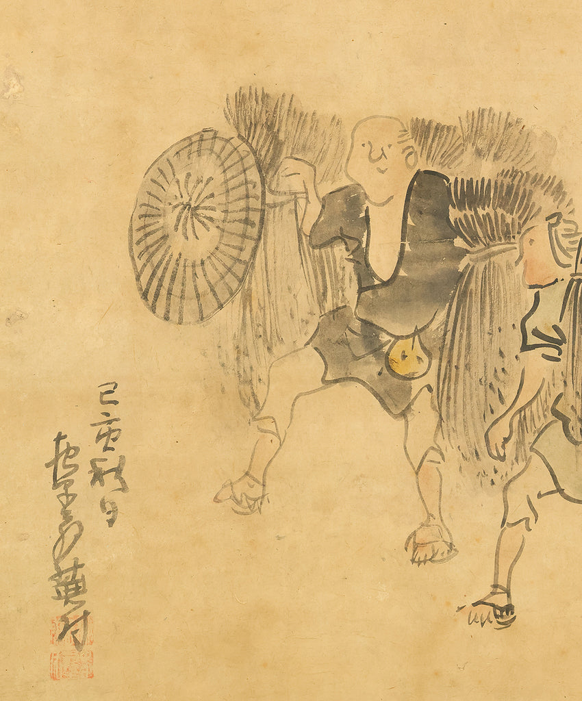 Haiku poet and painter of the mid-Edo period. Yosa Buson is famous as one of the three great masters of haikai (Haiku poets) in the Edo period, along with 松尾芭蕉 Matsuo Basho (1644-1694) and 小林一茶 Kobayashi Issa (1763-1828). Born into a farming family, he lost his parents when he was a teenager and set out for Edo (now Tokyo) at the age of 20. In Edo, he learned haikai from 早野巴人 Hayano Hajin (1676-1742). After his master's death, he traveled around Kanto and Oshu, and then moved to Kyoto. His haikai style is full of realism, romance, and lyricism, and he became a central figure in the haikai circles of the middle age. He is also an excellent painter, and along with 池大雅 Ike no Taiga (1723-1776), is considered a great master of literati painting.