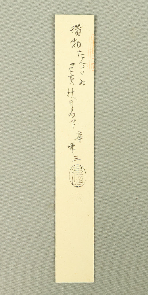 This scroll comes with a certificate of Kohitsu (Kohitsuke) appraisal tag / Kimefuda with ‘Kinzan 琴山’ seal.