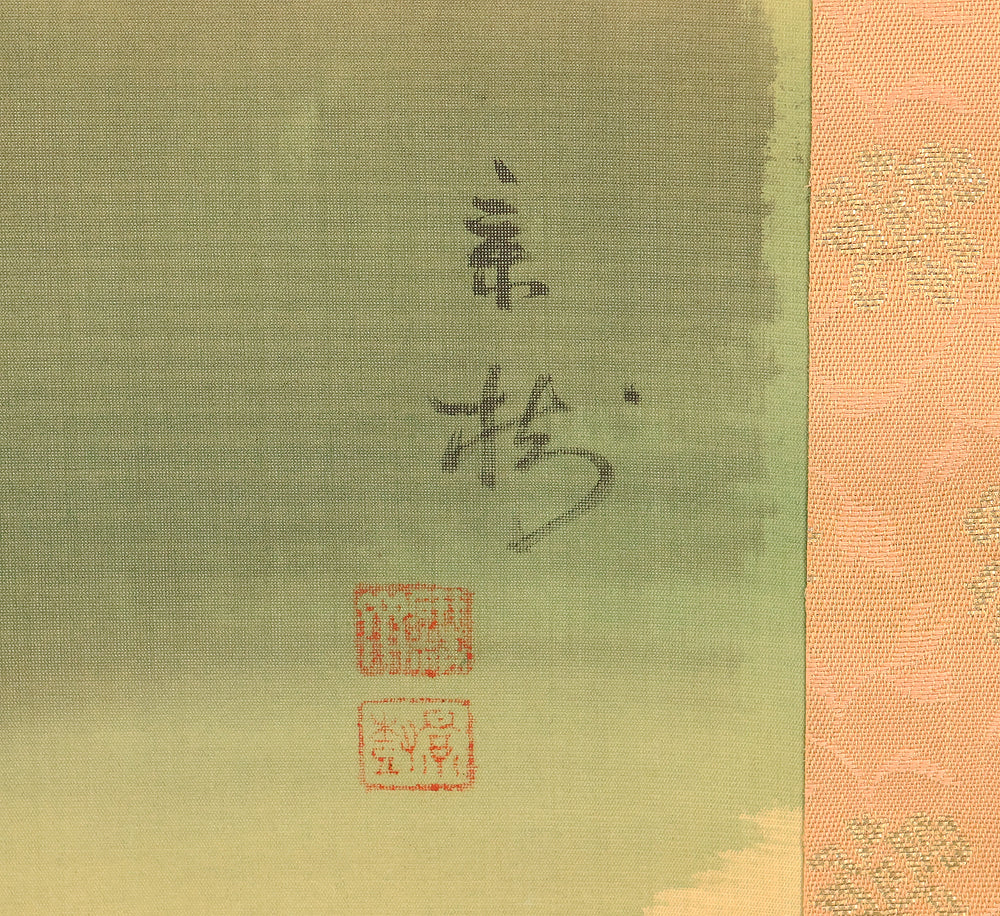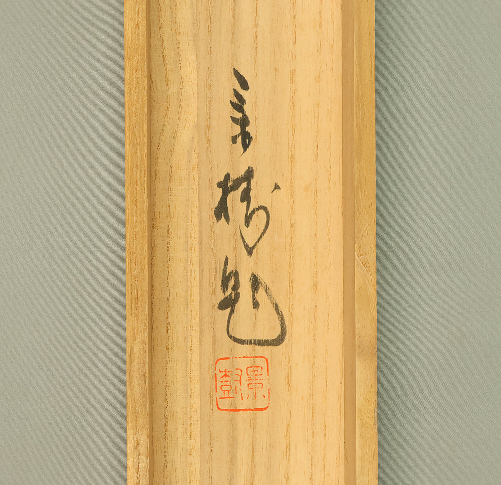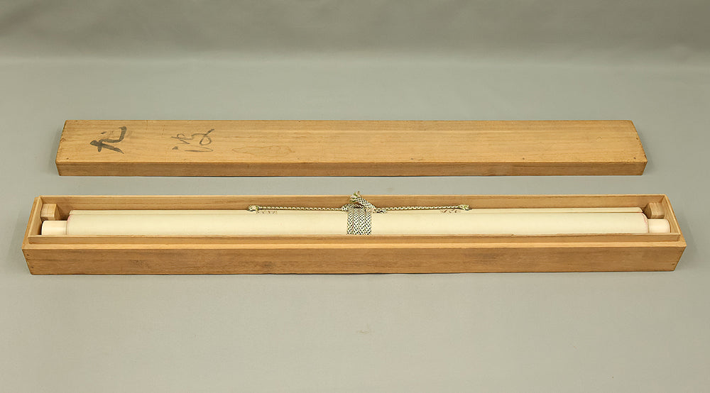 The scroll is accompanied by its original tomobako (signed wooden box), confirming provenance and ensuring safe preservation. Ideal for display in tea rooms, meditation spaces, or seasonal interiors, this piece offers both visual elegance and contemplative depth.