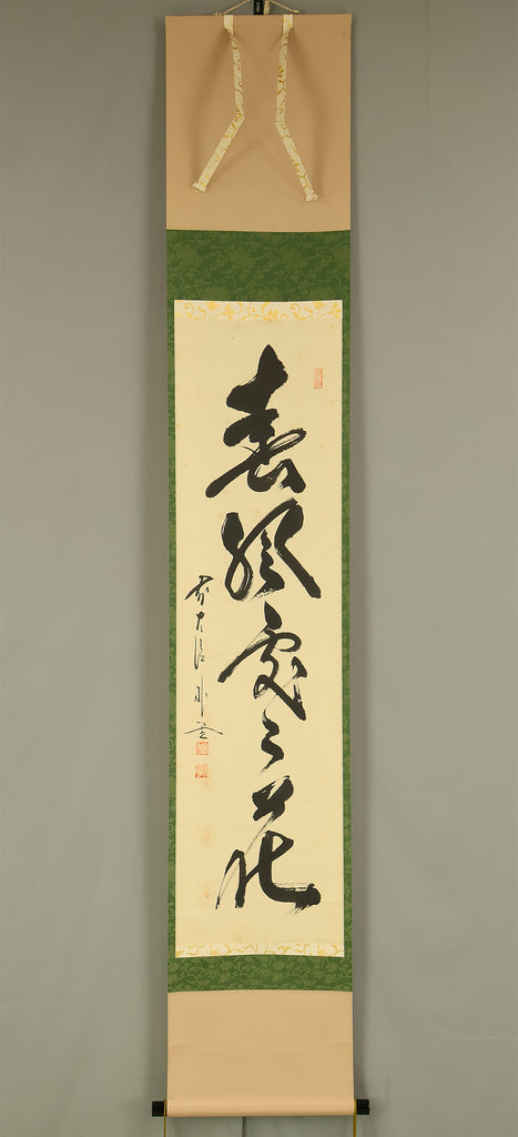 佐藤朴堂 Sato Bokudo (b1935) Daitoku-ji Japanese Zen art kakejiku kakemono wall hanging scroll Tea Ceremony / 春風處々花 Shunpu Shosho Hana with Original Box (Tomobako) RE291