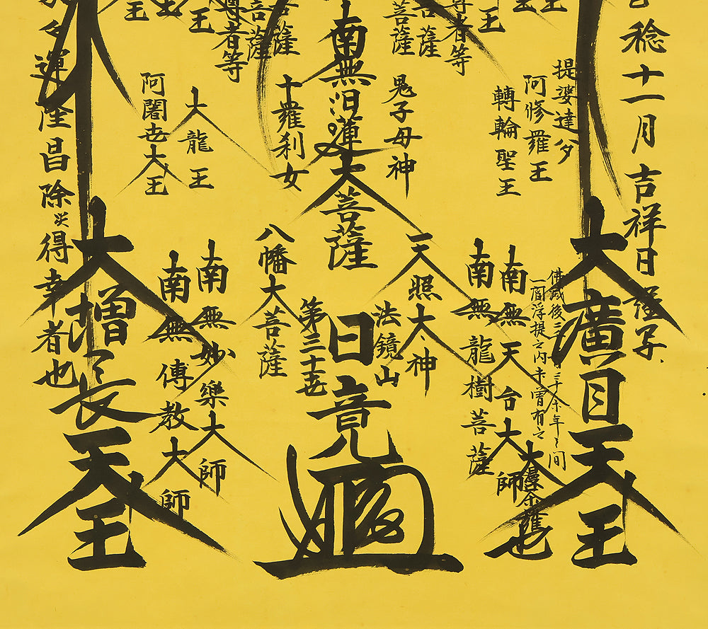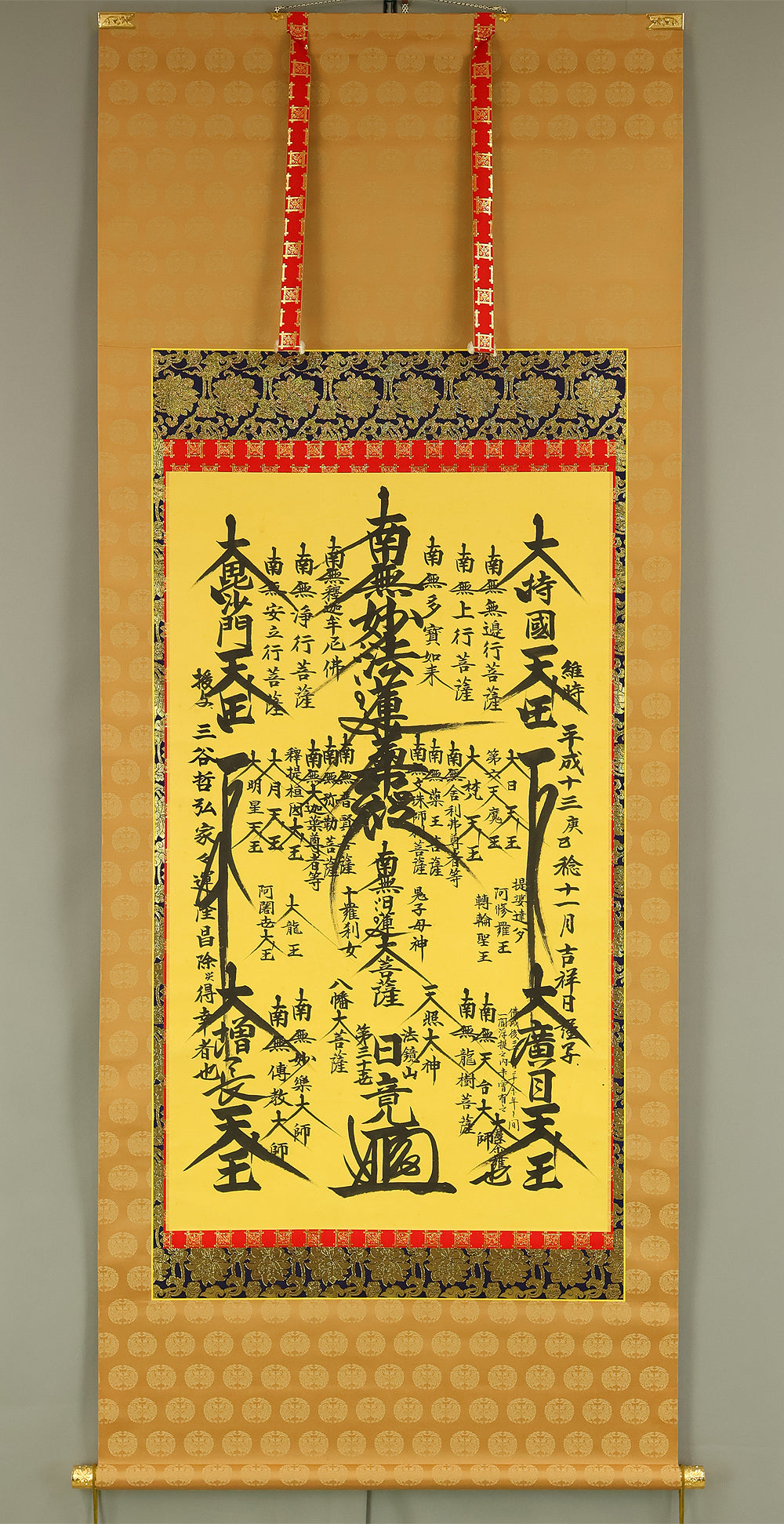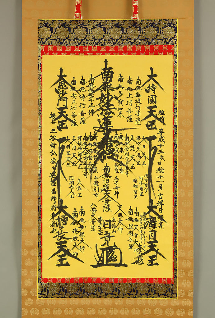 日竟 Nichikyo Age 2001 Japanese art Buddhist kakejiku kakemono wall hanging scroll / Nichiren Mandala Gohonzon with Original Box (Tomobako) RE432