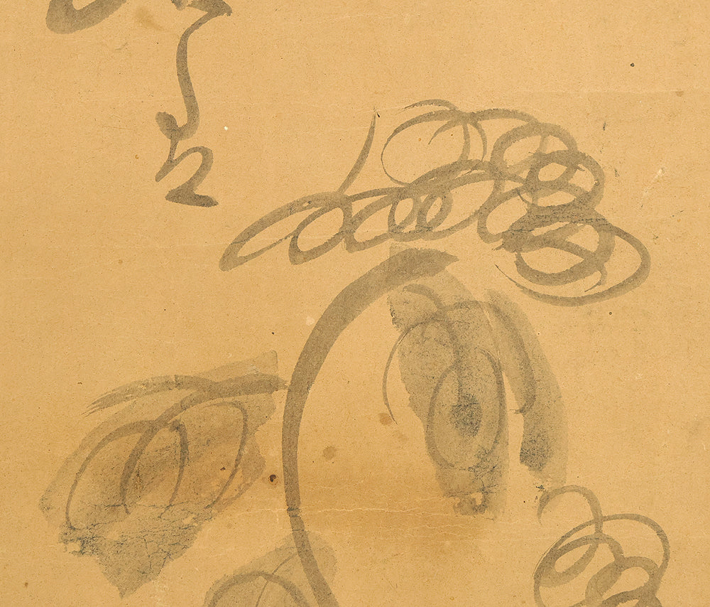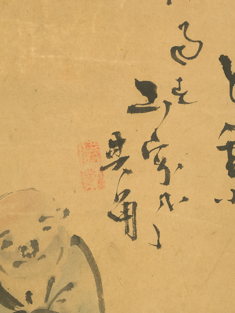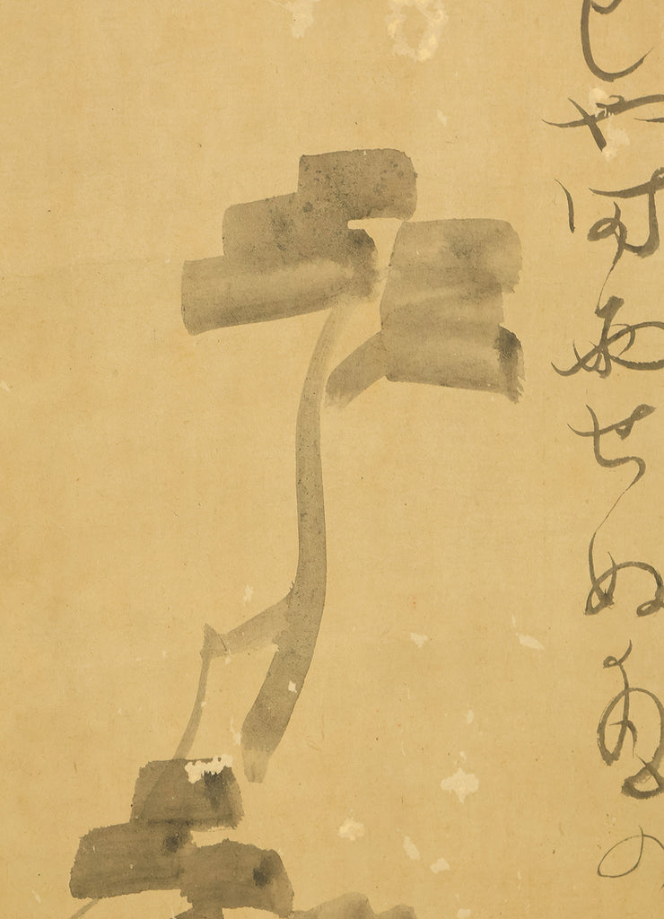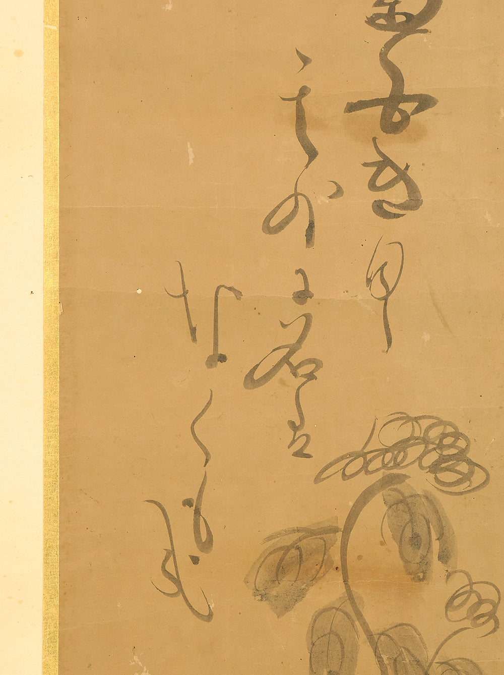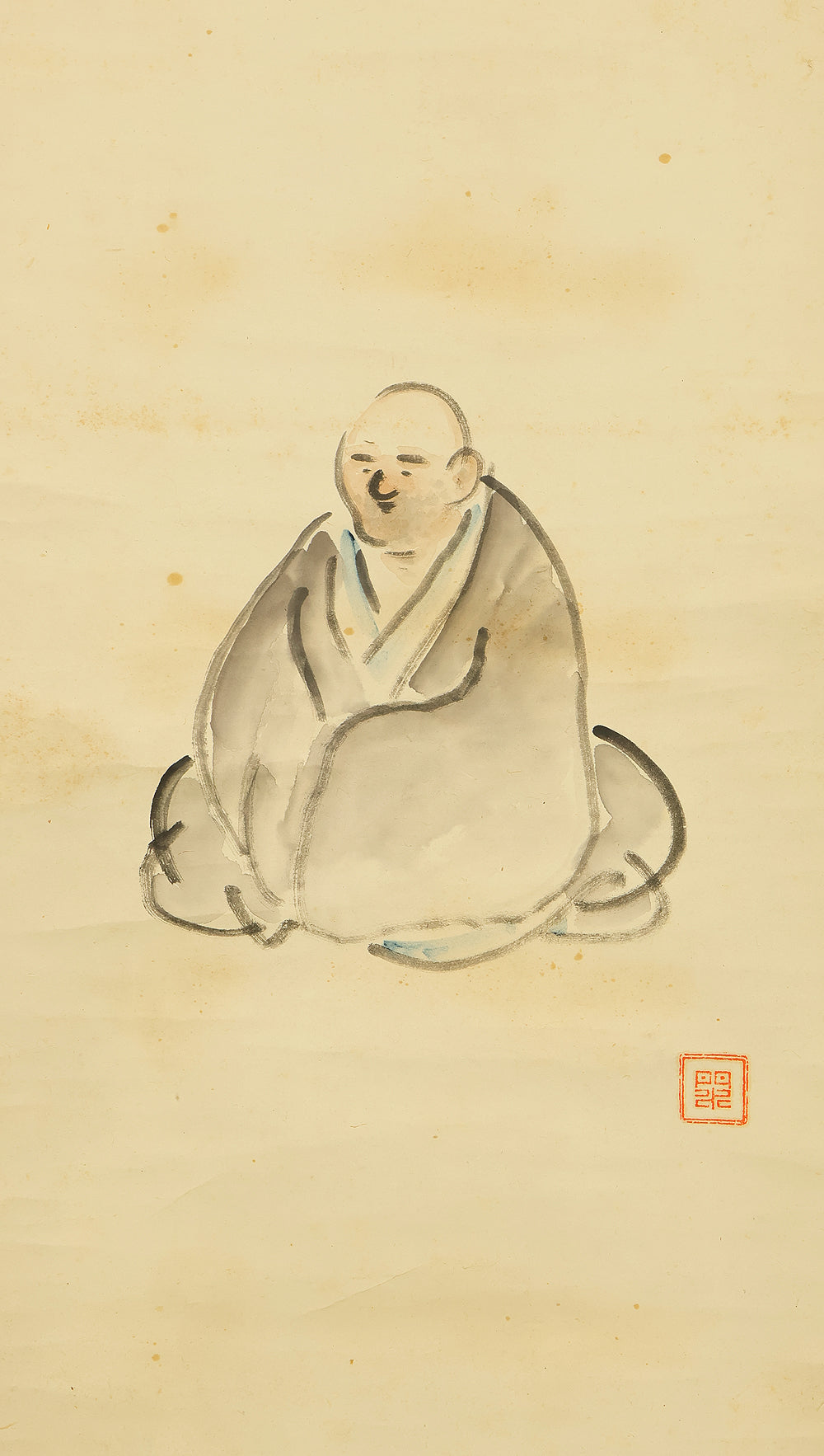 This is a rare and culturally significant set of three antique Japanese hanging scrolls (kakejiku), featuring collaborative works by three of the most celebrated haiku poets of the Edo period: Matsuo Bashō (1644–1694), Takarai Kikaku (1661–1707), and Hattori Ransetsu (1654–1707). Each scroll presents a poetic inscription (gasan) accompanied by a haiku attributed to the respective poet, rendered in expressive brushwork that reflects the literary and aesthetic sensibilities of early haikai tradition. Beneath each poem is a painted portrait of the poet, executed in a minimalist ink style. While the haiku and calligraphy are attributed to Bashō, Kikaku, and Ransetsu respectively, the portraits are unsigned and the artist remains unknown. The scrolls are mounted in traditional textile borders and preserved together in a shared original wooden box (tomobako), which enhances their historical coherence and value as a set. This ensemble offers a rare glimpse into the intersection of poetry, portraiture, and Edo-period literati culture. It is an exceptional acquisition for collectors of Japanese art, haiku literature, or antique calligraphy.