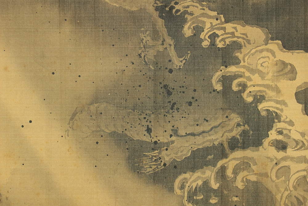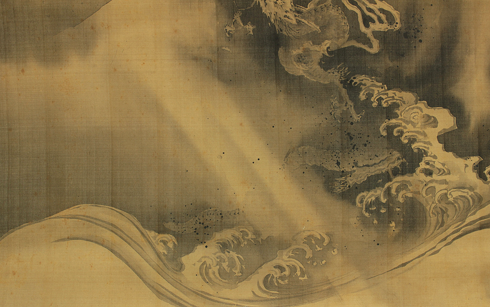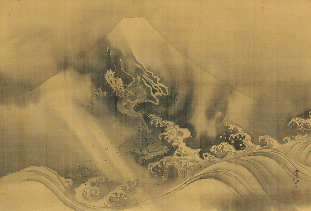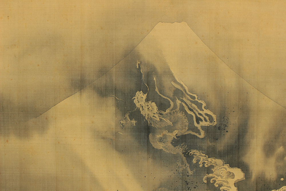 狩野常信 Kano Tsunenobu (1636-1713) Japanese antique art Large kakejiku kakemono wall hanging scroll / Dragon Crossing Over Mt. Fuji with Box RD552