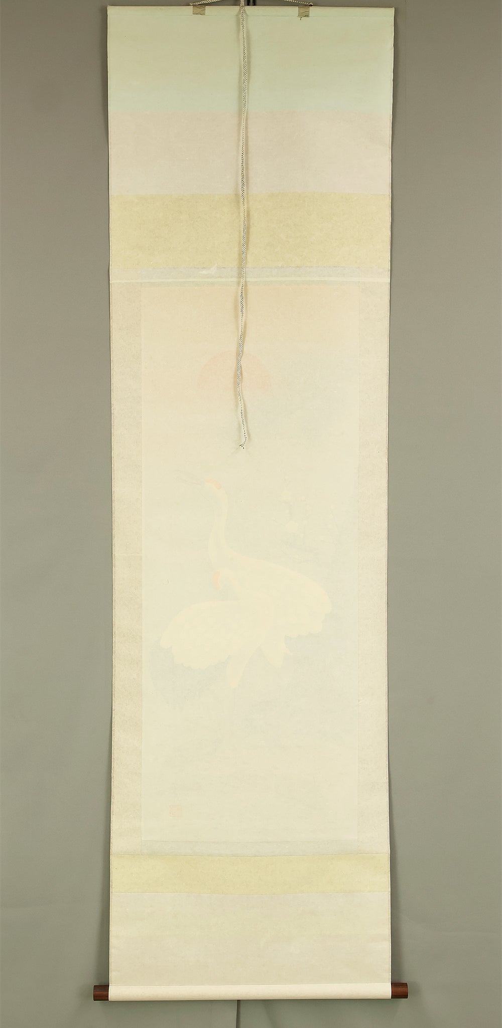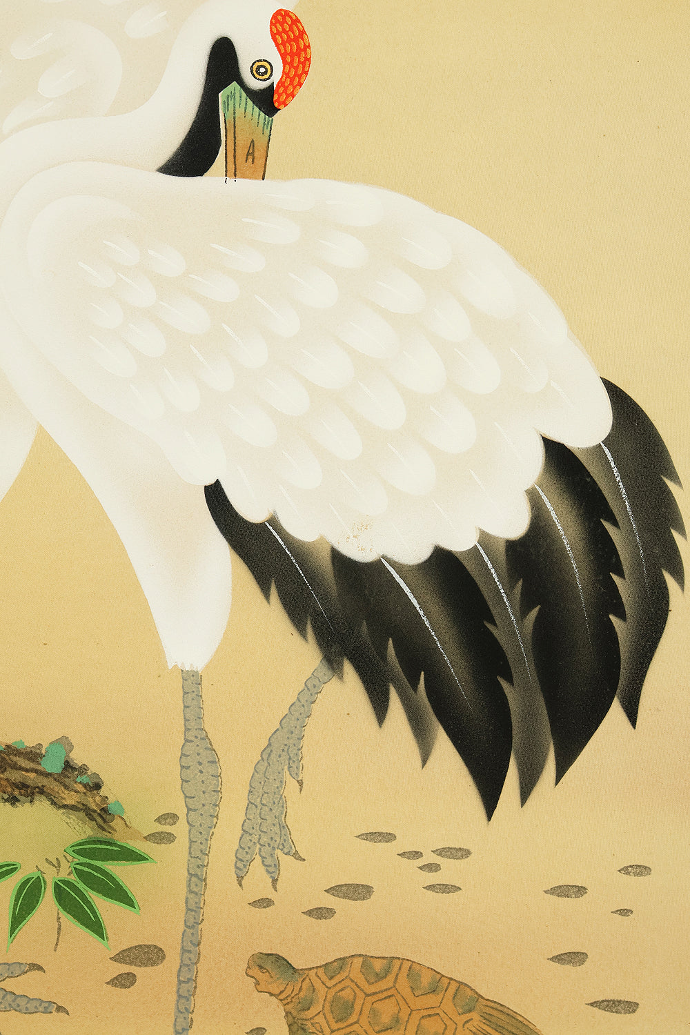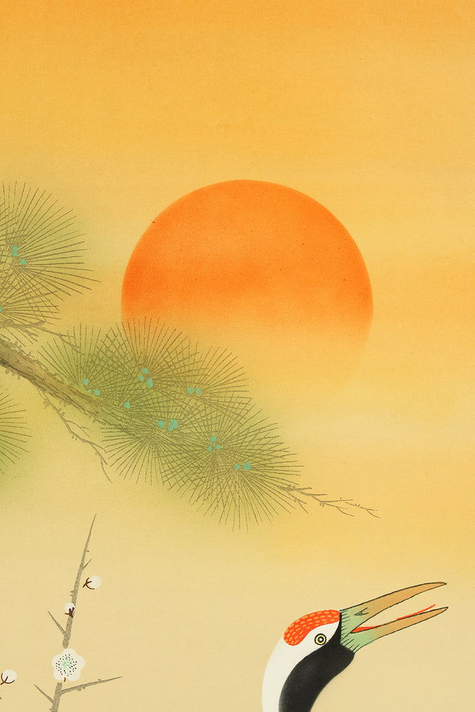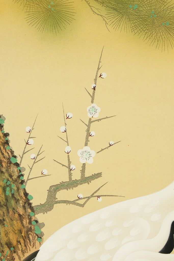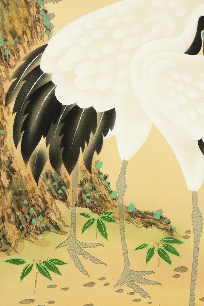 珠香 Juko Japanese art kakejiku kakemono wall hanging scroll / Cranes and Turtle Celebrating Longevity - The Symbol of Good Fortune with Original Box (Tomobako) RE373