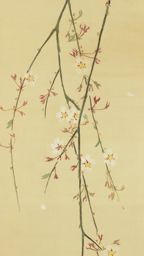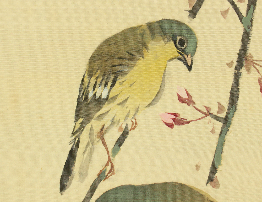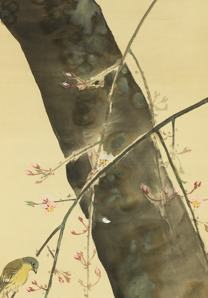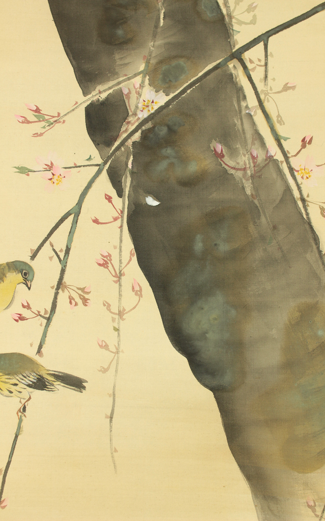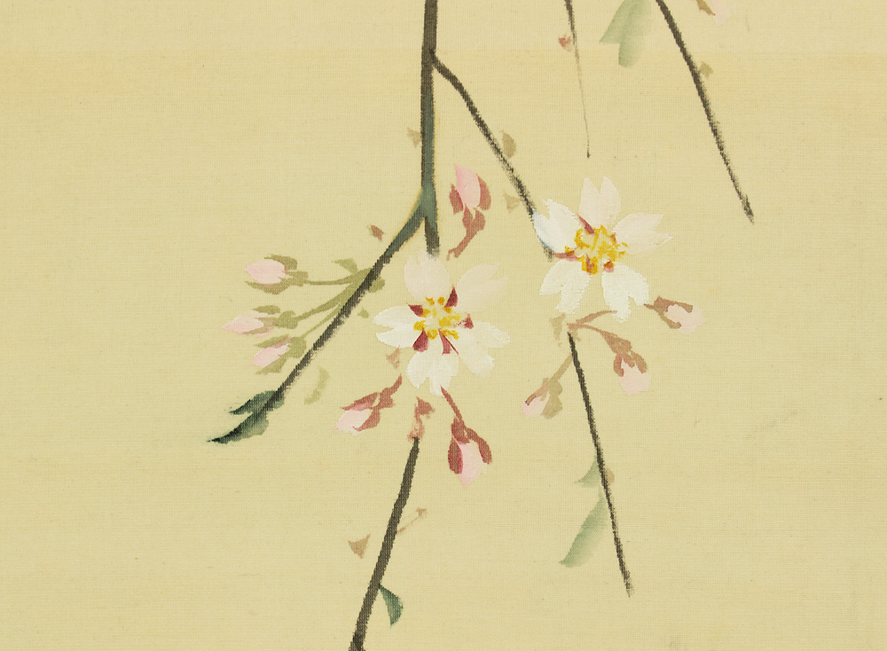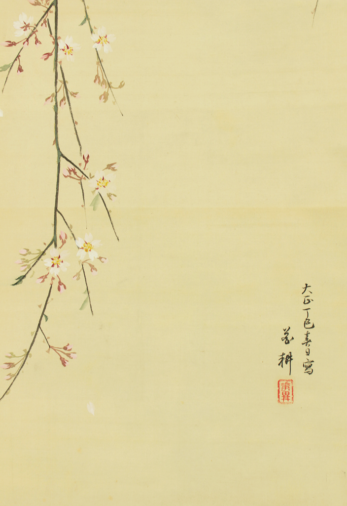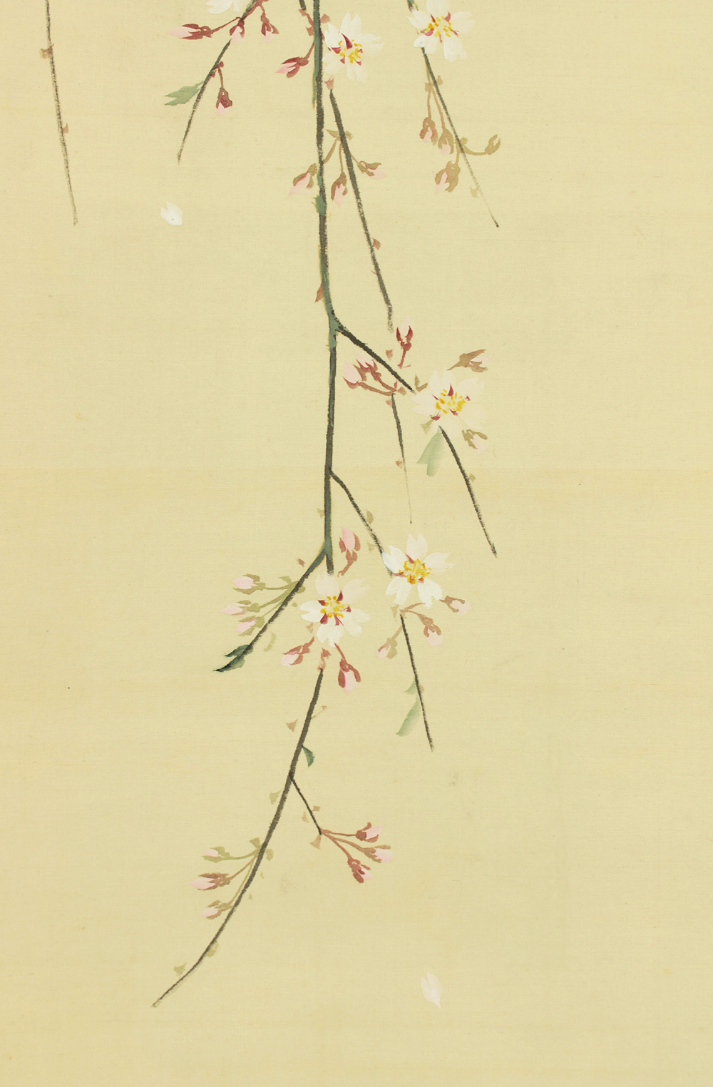 花耕 Kako Japanese art kakejiku kakemono wall hanging scroll / Weeping Cherry Tree and Little Bird with Original Box (Tomobako) RD554