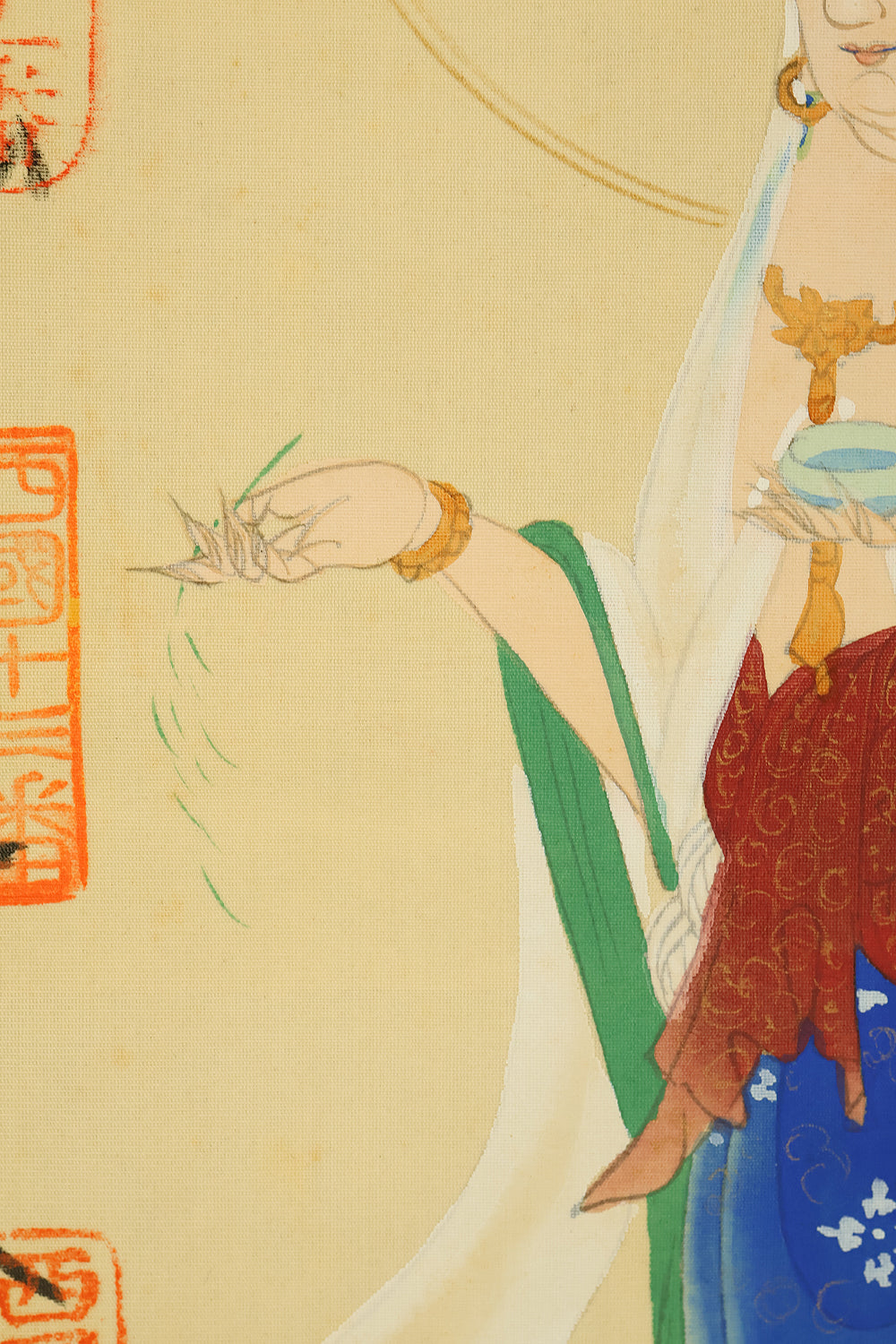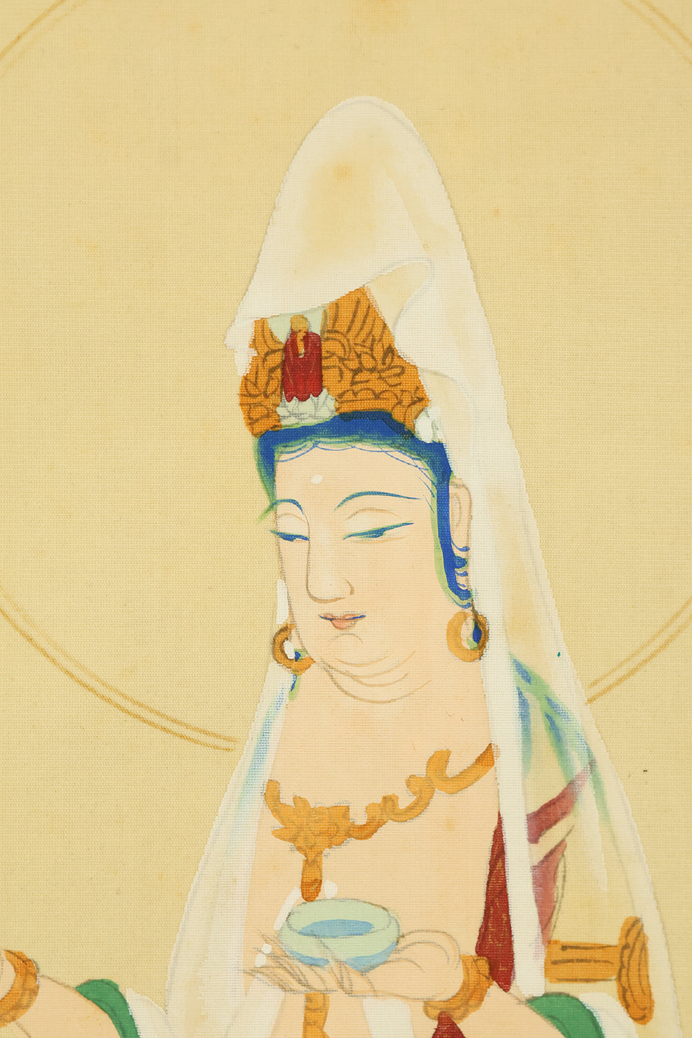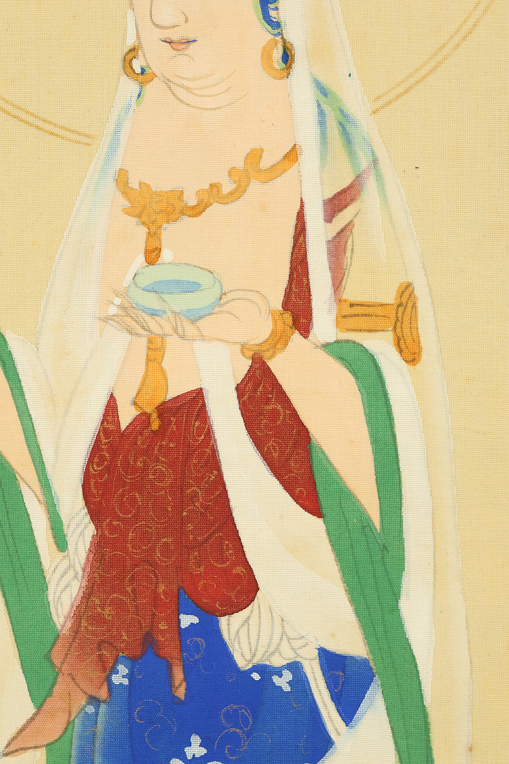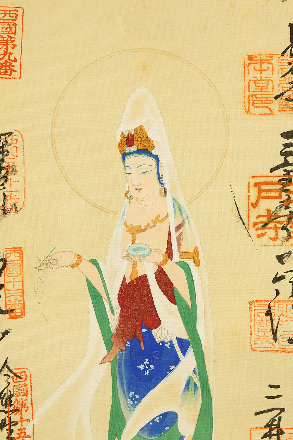西国三十三所 Saigoku sanjūsanjo (33 pilgrimage places in the West) - Saigoku Kannon Pilgrimage 雲上聖観音 Unjoshokannon (Avalokitesvara Bodhisattva standing on a cloud) with Original Box (Tomobako) / Japanese Buddhism art kakejiku kakemono wall hanging scroll RD894