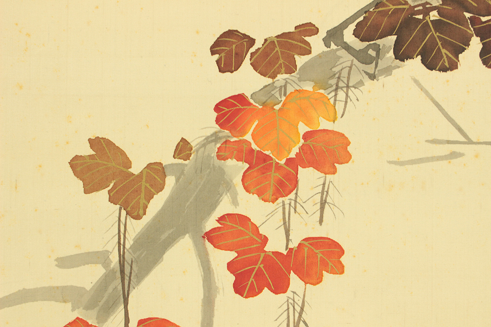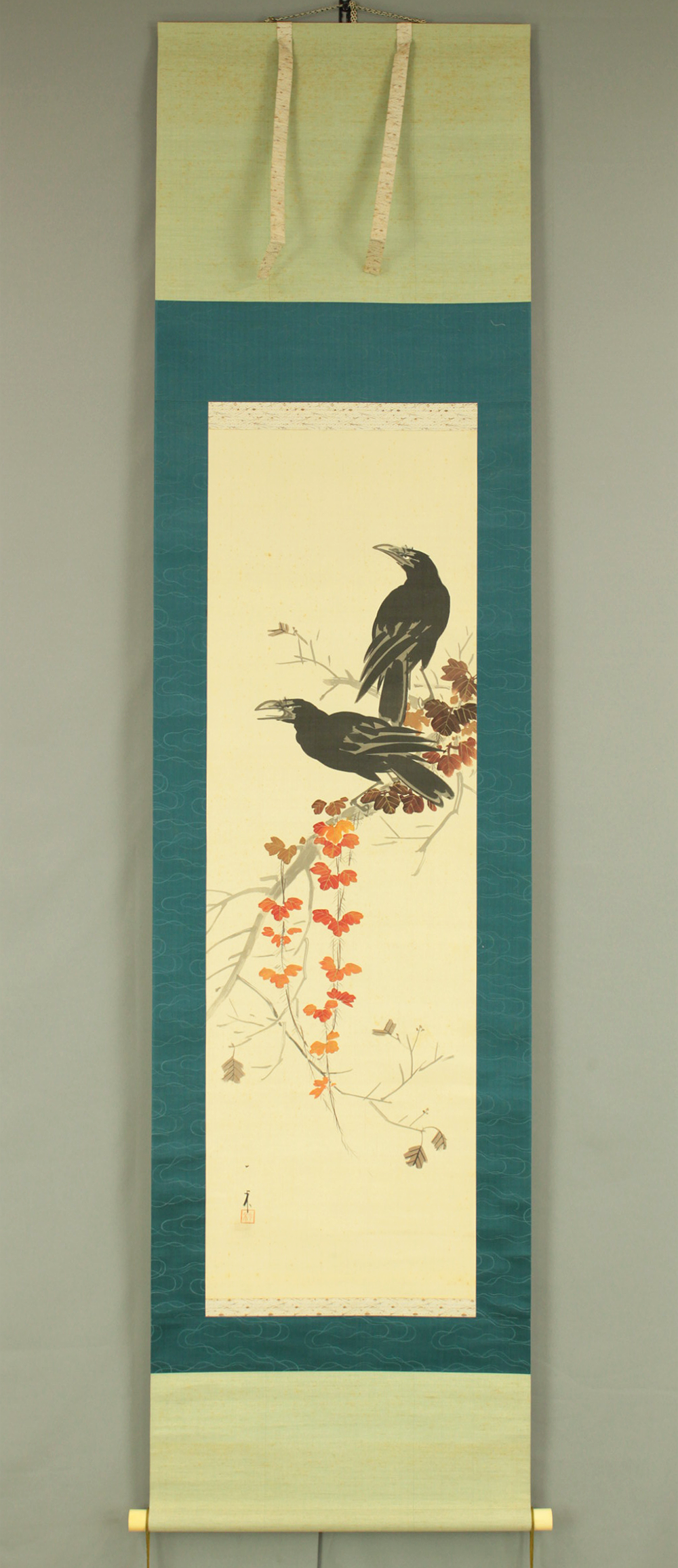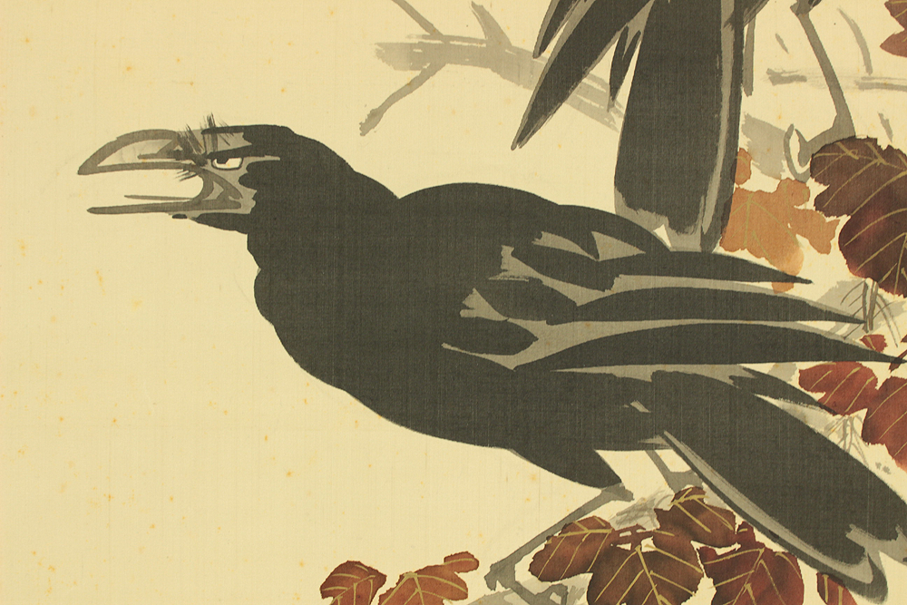 長井一禾 Nagai Ikka (1869-1940) Japanese art kakejiku kakemono wall hanging scroll / Maple Tree and Two Raven Crow with Box RD571