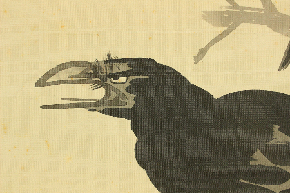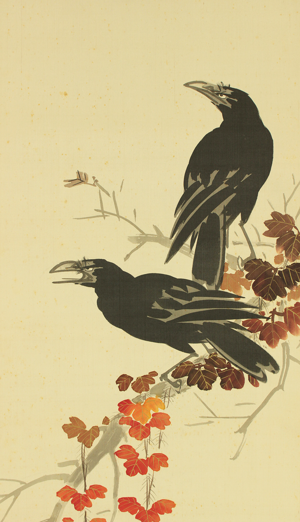 Ukiyo-e artist from the Meiji to Showa periods. A student of 河鍋暁斎 Kawanabe Kyosai (1831-1889). Born in Niigata. Studied under 鈴木松年 Suzuki Shonen (1848-1918) and 平福穂庵 Hirafuku Suian (1844-1890) in Tokyo and learned the Maruyama school of painting. He later studied under Kawanabe Kyosai. 大隈重信 Okuma Shigenobu (1838-1922), the prime minister of Japan, awarded Ikka the title of "Dr. Crow" in recognition of his extraordinary and unusual technique of raven painting. He studied painting in the U.S. for five years from 1903. He exhibited his paintings at the Portland Exposition and the Italian Exposition. His crow paintings were highly praised at the time along with the raccoon paintings of 望月金鳳 Mochizuki Kinpo (1846-1915) and the tiger paintings of 大橋翠石 Ohashi Suiseki (1865-1945).