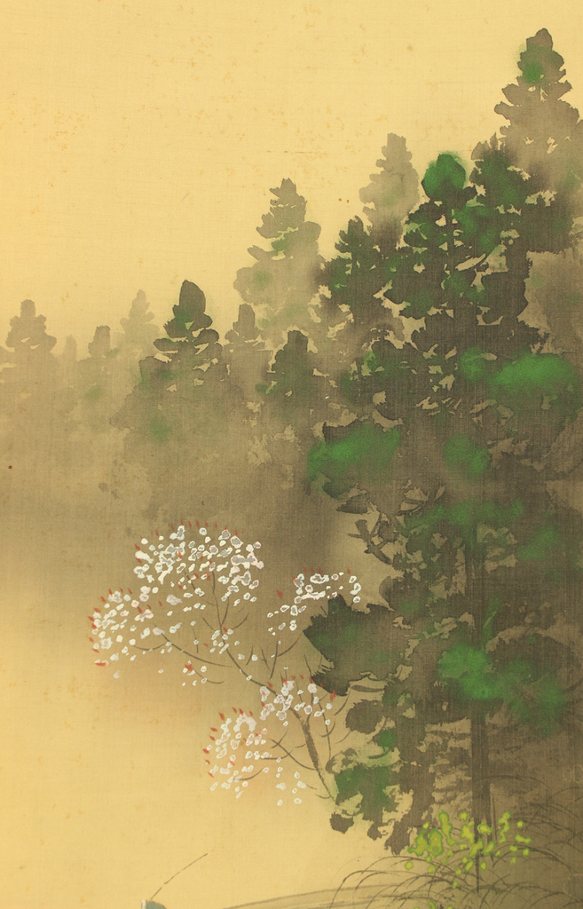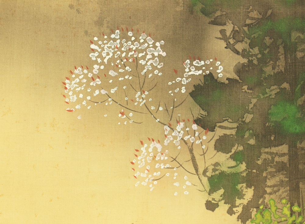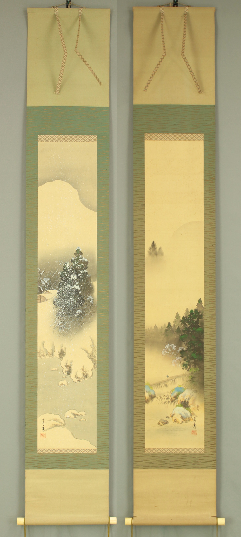 青香 Seiko Japanese art Paired kakejiku kakemono wall hanging scrolls / Spring and Winter Landscapes with Box RD557