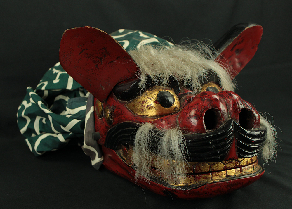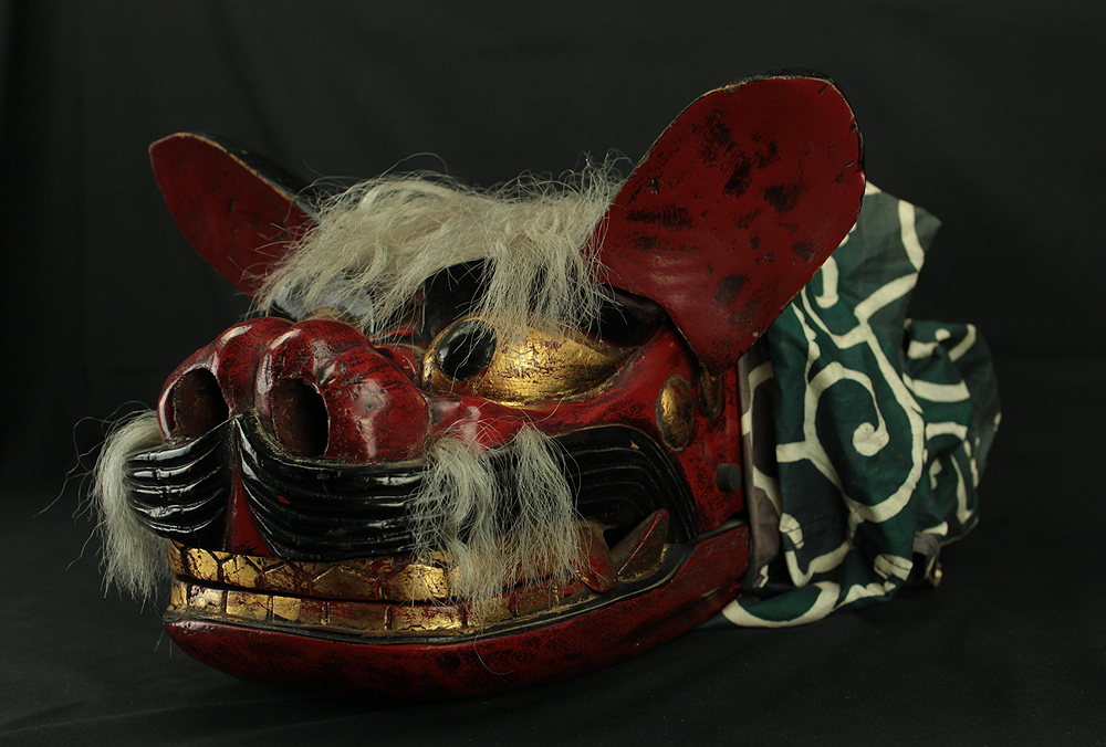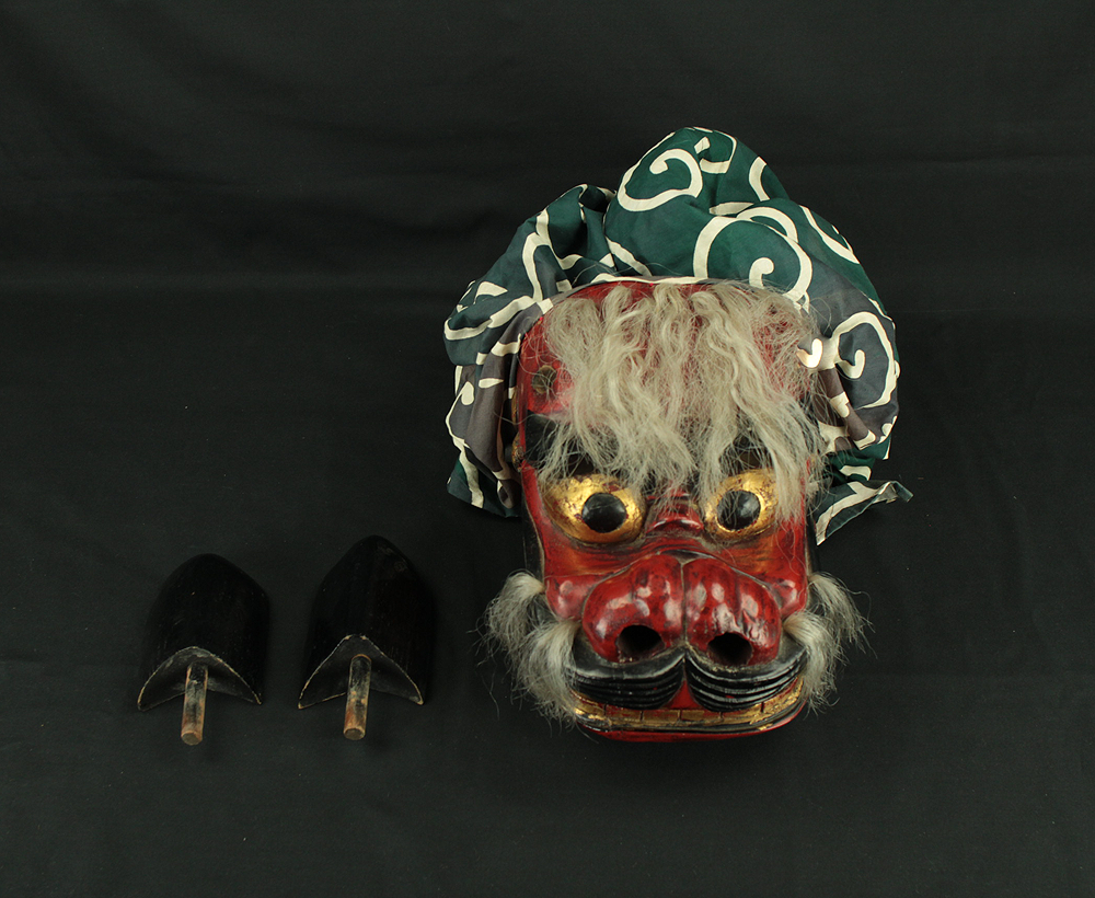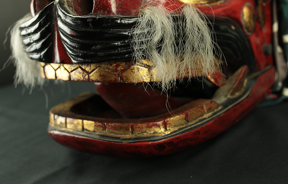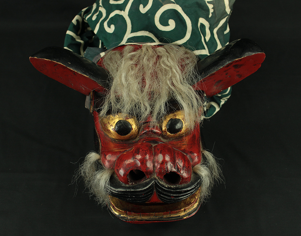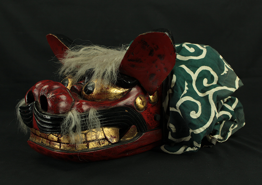 獅子頭 Shishigashira - Japanese antique Wood Carving Shishimai Head Mask Kagura Lion Head Foo dog VA870