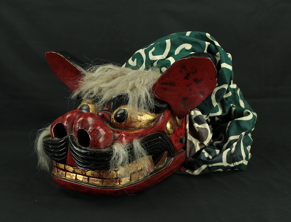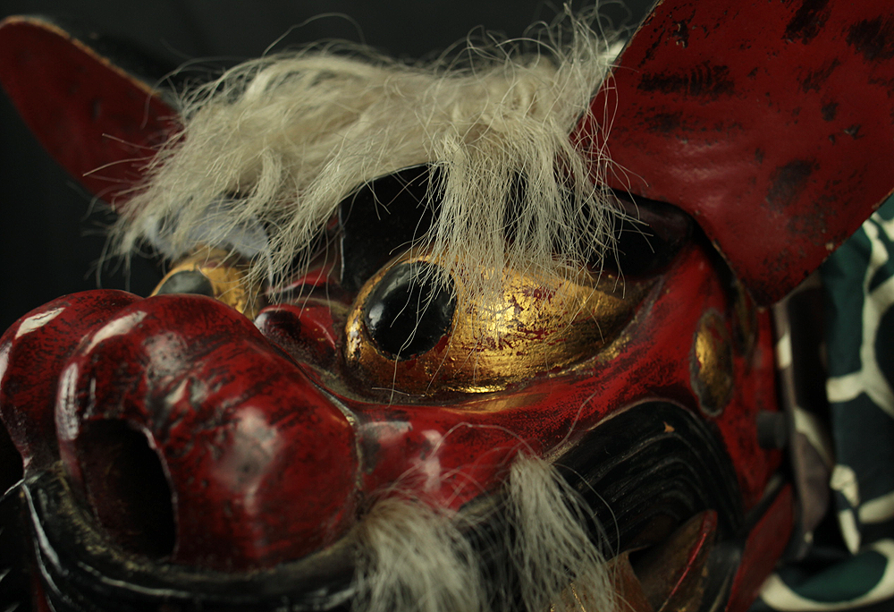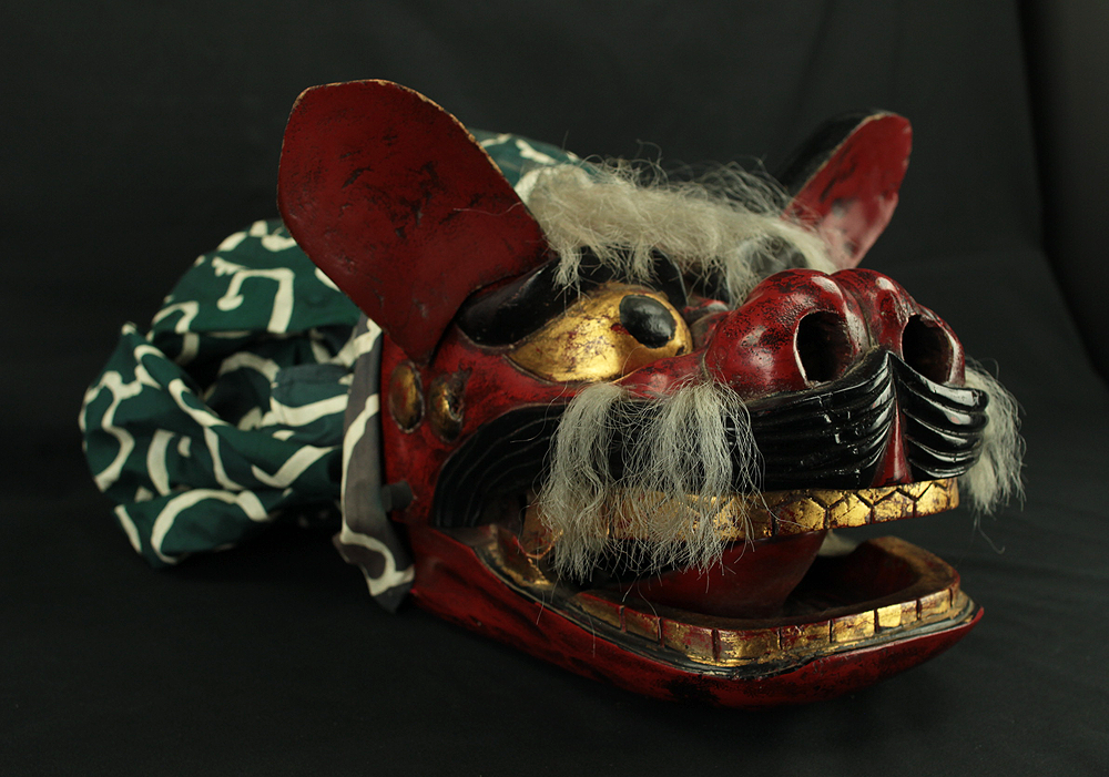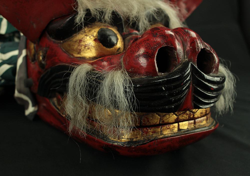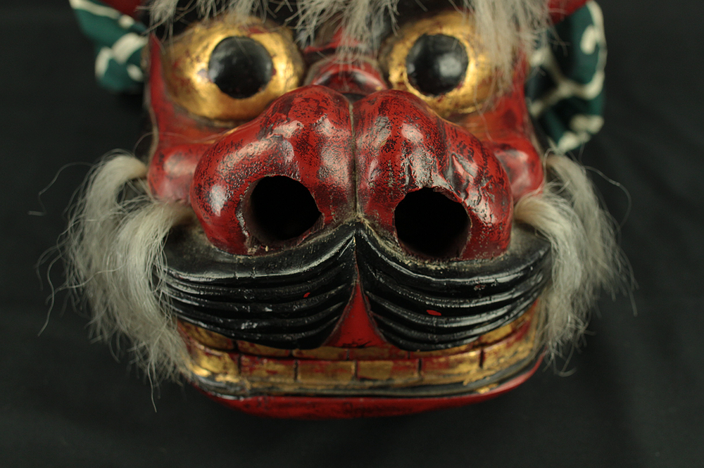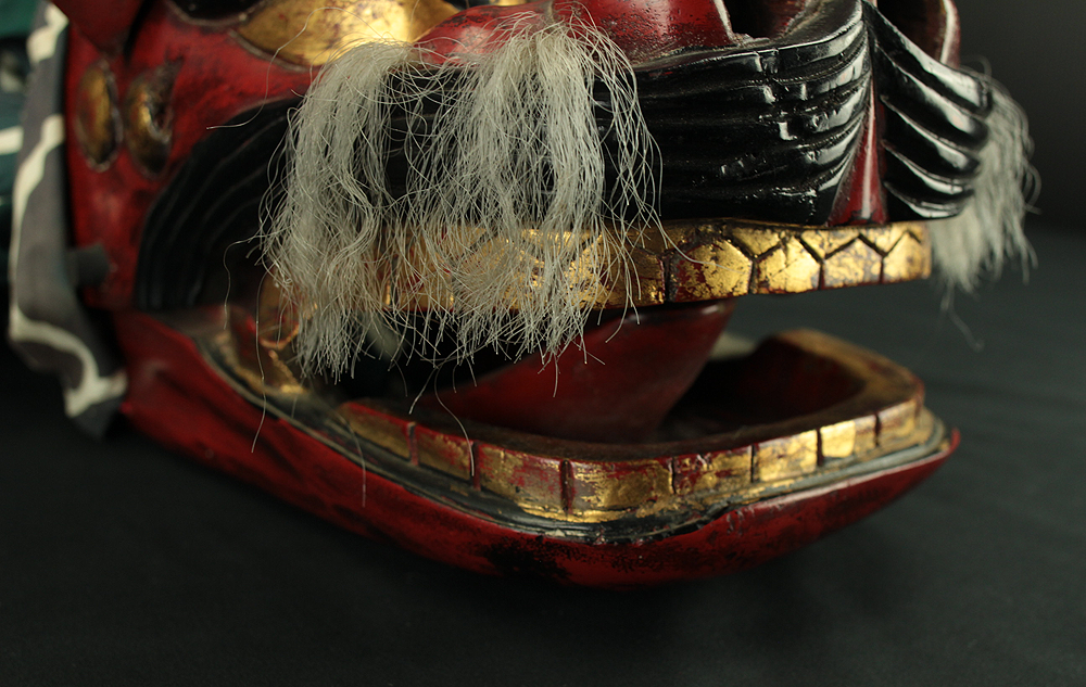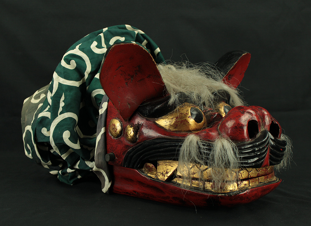 獅子頭 Shishigashira - Japanese antique Wood Carving Shishimai Head Mask Kagura Lion Head Foo dog VA870