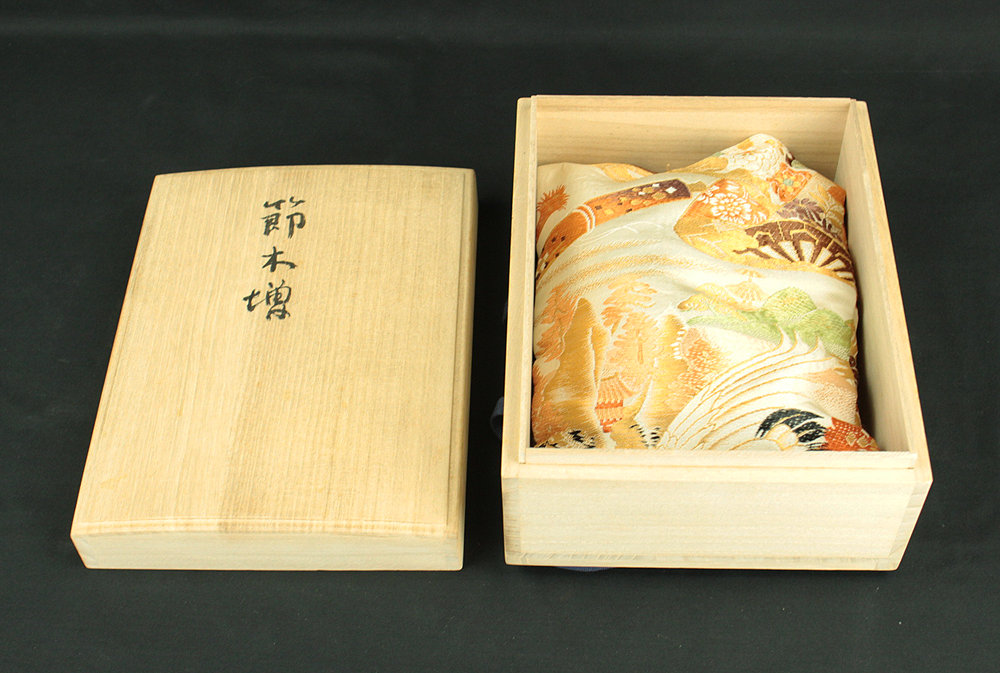 This finely carved Noh mask represents Fushikizō, a rare and expressive type of old woman mask used in classical Japanese Noh theater. The mask is crafted by Nomura Ran, a contemporary master of Noh mask carving, known for his ability to evoke subtle emotion and spiritual depth through wood and pigment. Fushikizō is associated with roles depicting grief, transcendence, and spiritual presence, often appearing in plays such as Sumidagawa, Sotoba Komachi, and Obasute. The mask’s delicate asymmetry and subdued expression allow it to convey complex emotional states, shifting with light and angle during performance. Carved from wood and finished with natural pigments, this mask comes with its original tomobako (signed wooden box) and silk pouch, ensuring authenticity and preservation. It is suitable for collectors of Japanese performing arts, mask enthusiasts, or interior display.