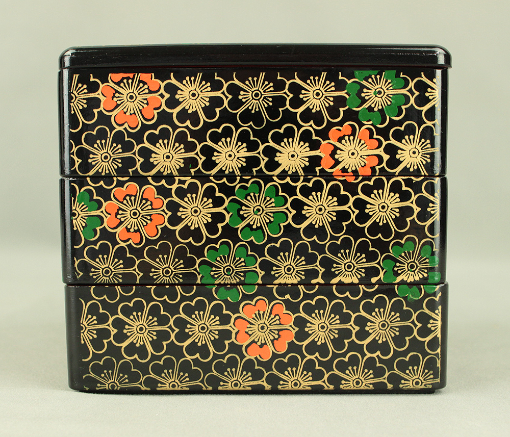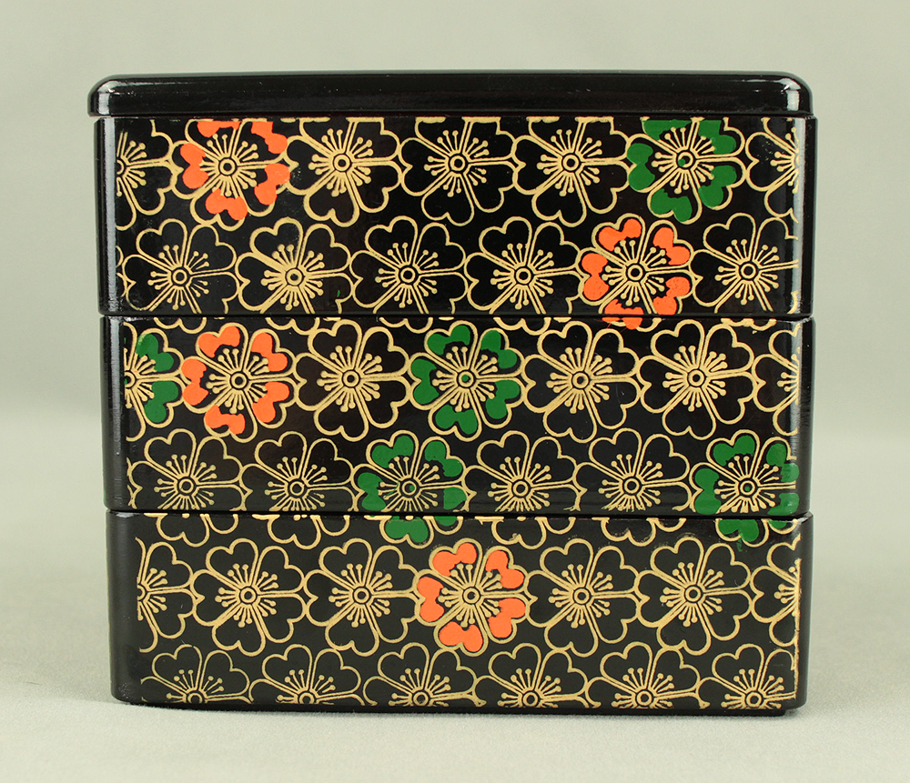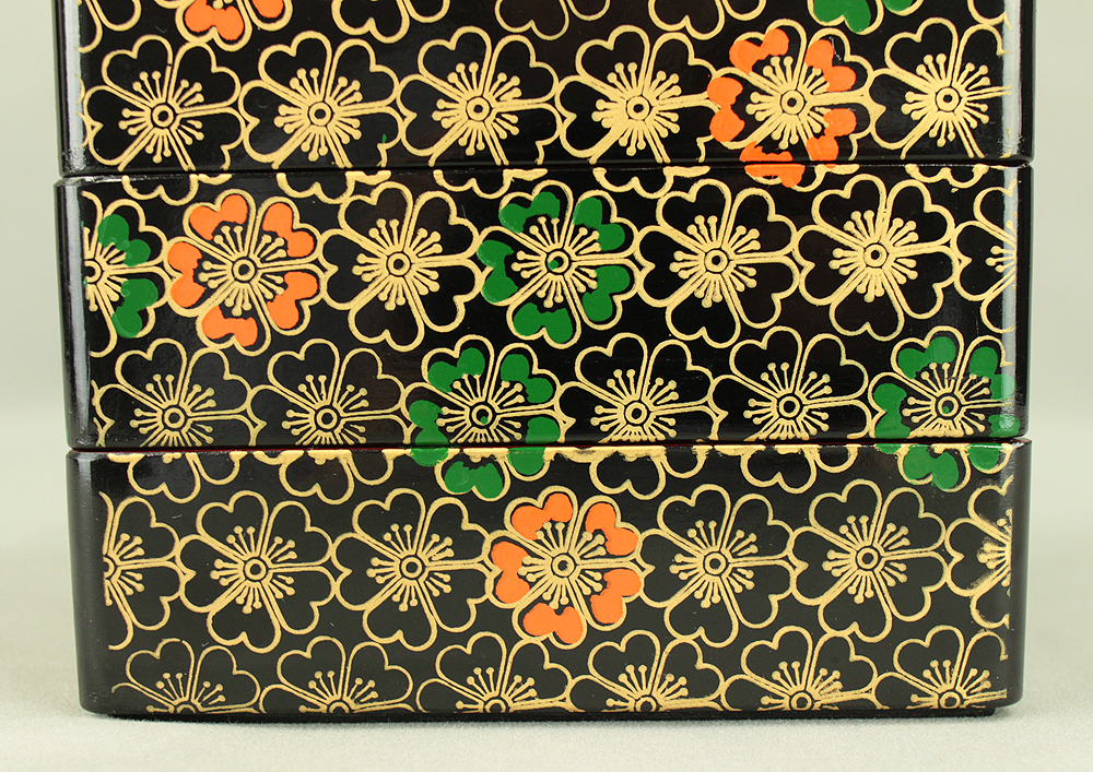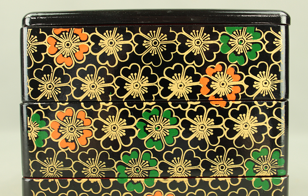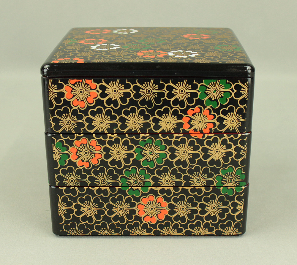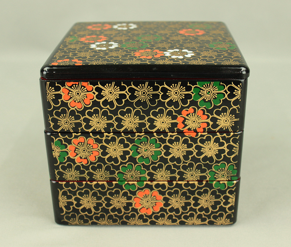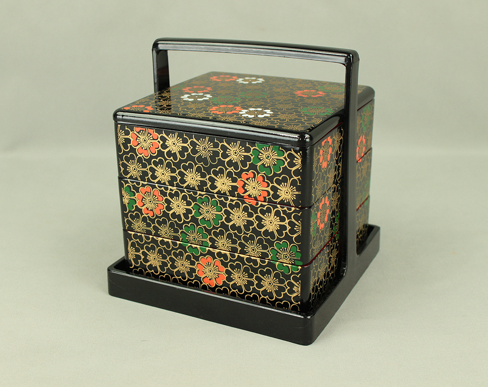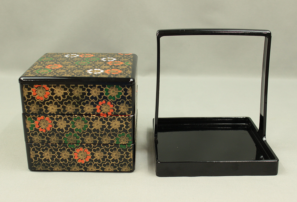 Flower Pattern Lacquerware Portable Three-Tiered Box Small Jubako VA820
