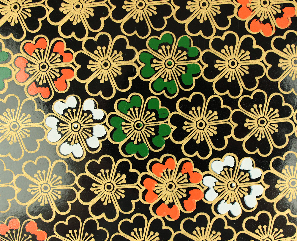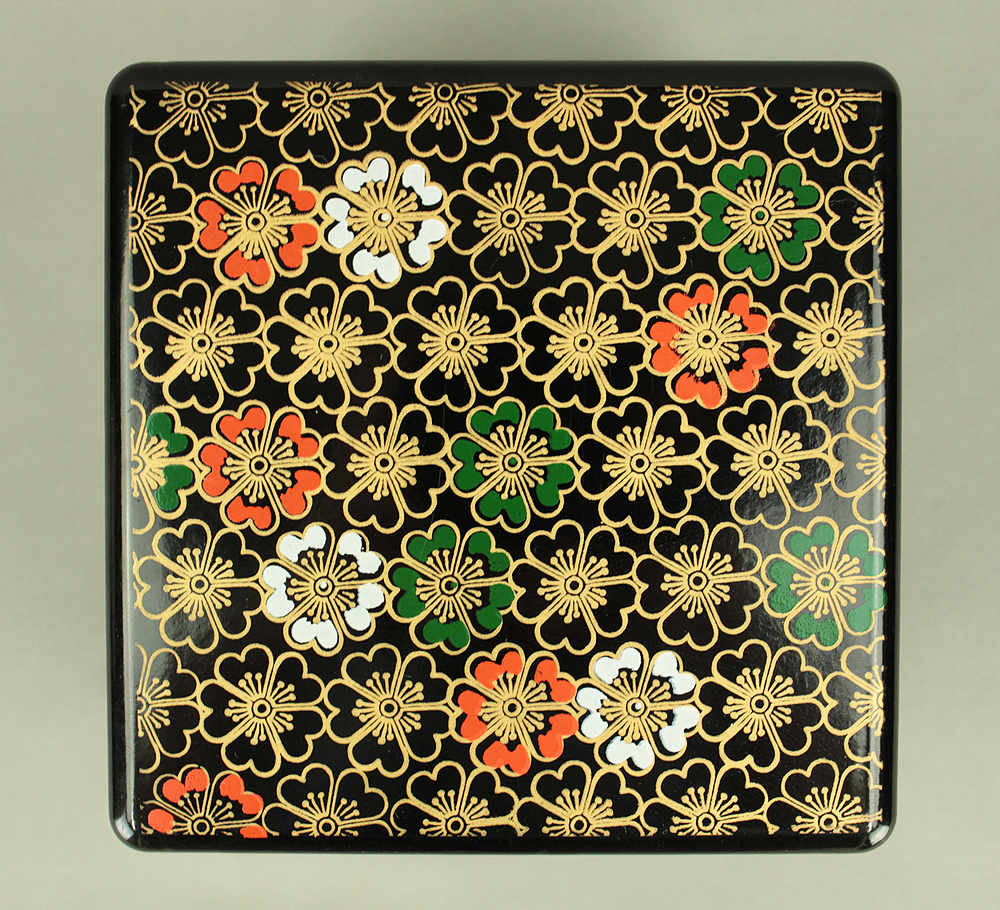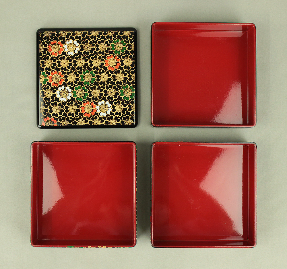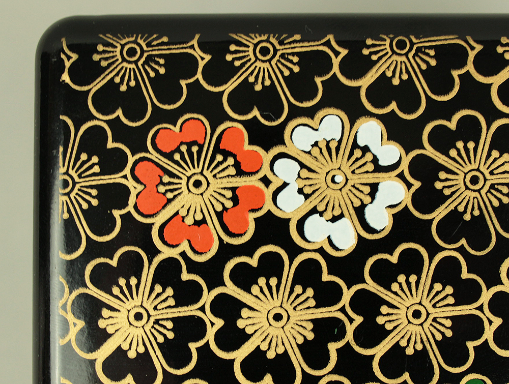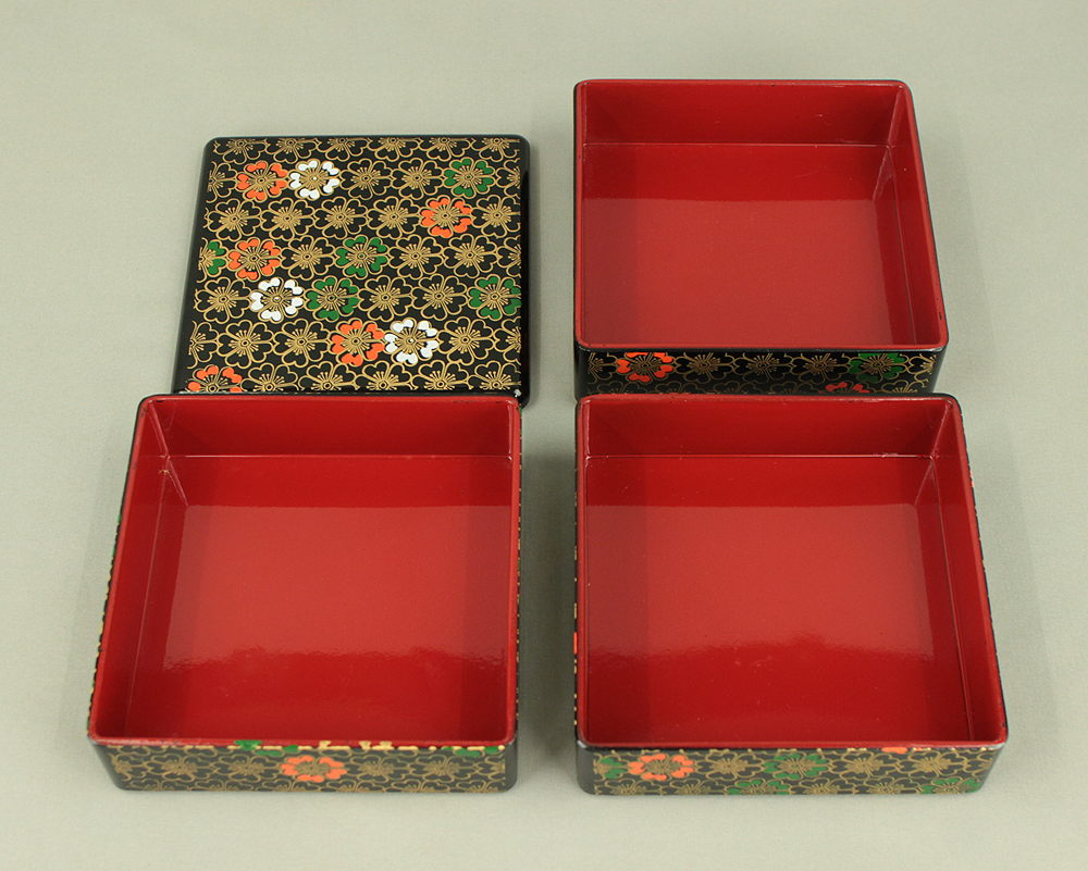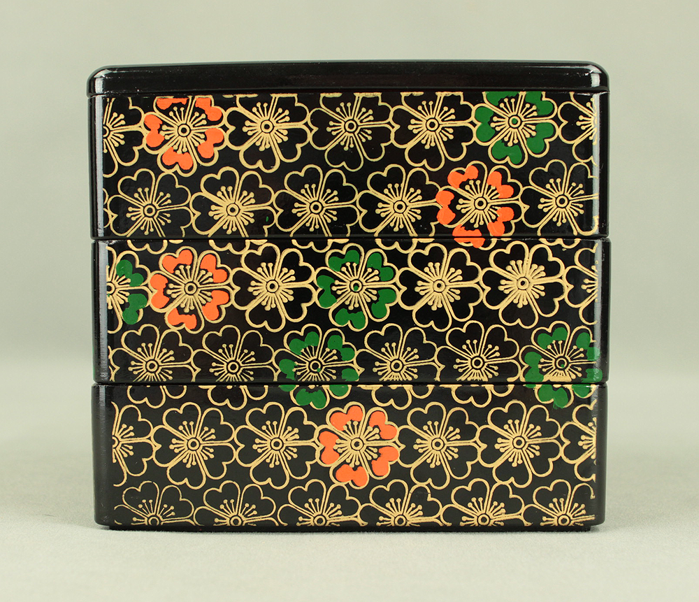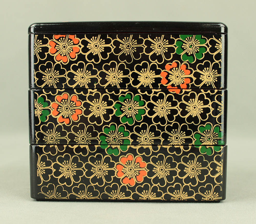 Flower Pattern Lacquerware Portable Three-Tiered Box Small Jubako VA820