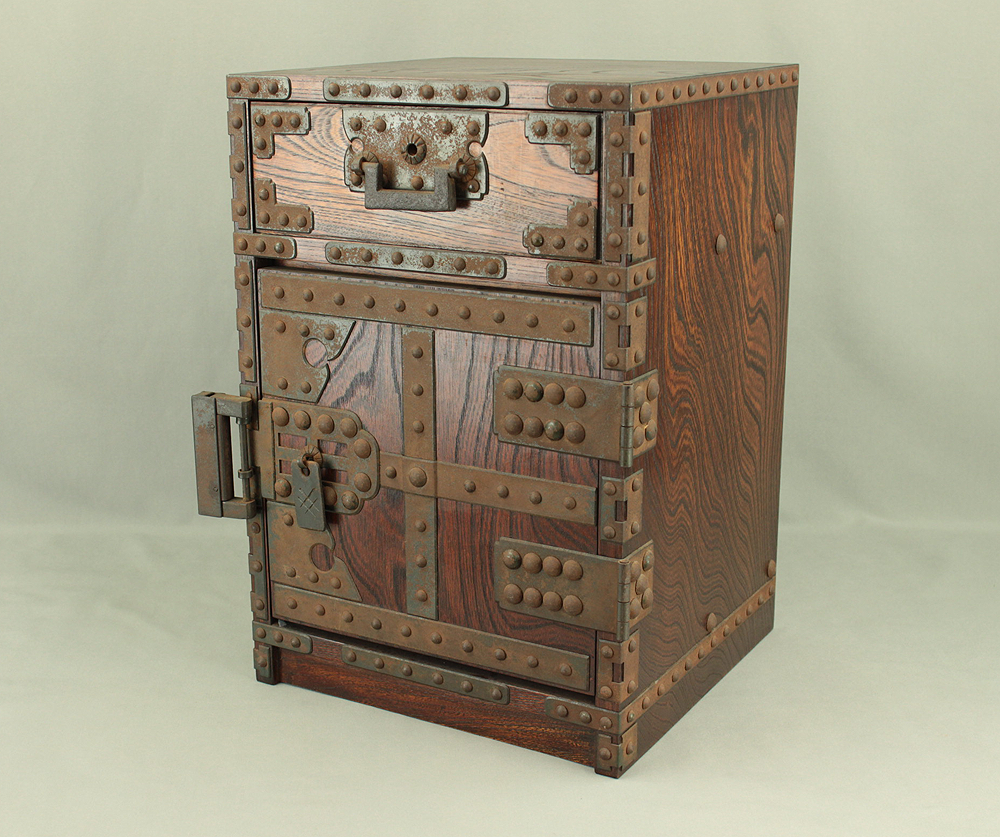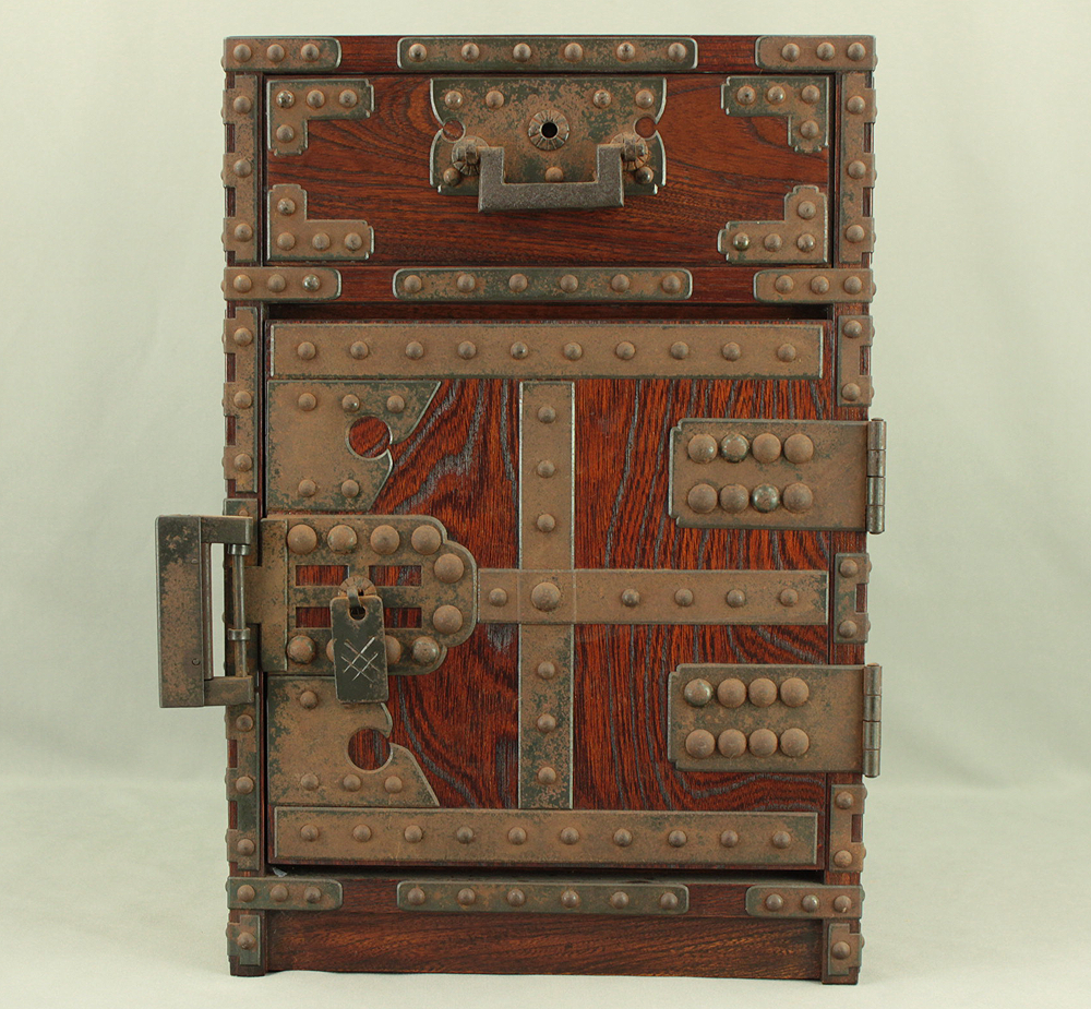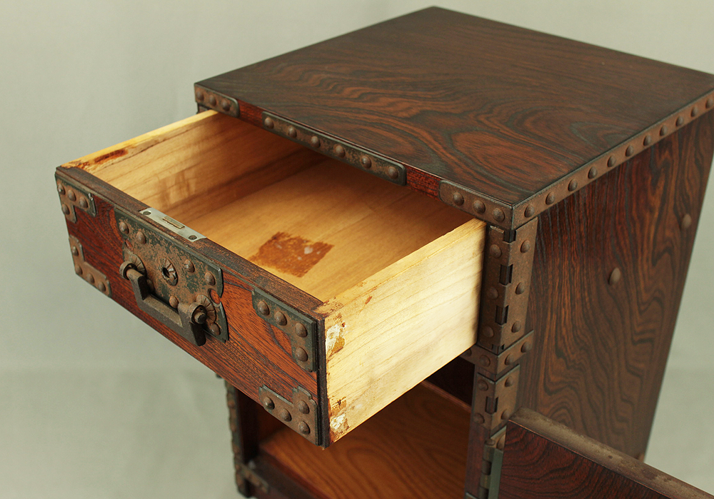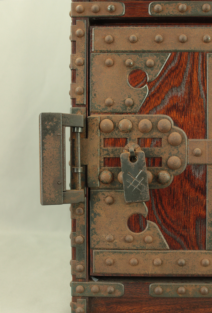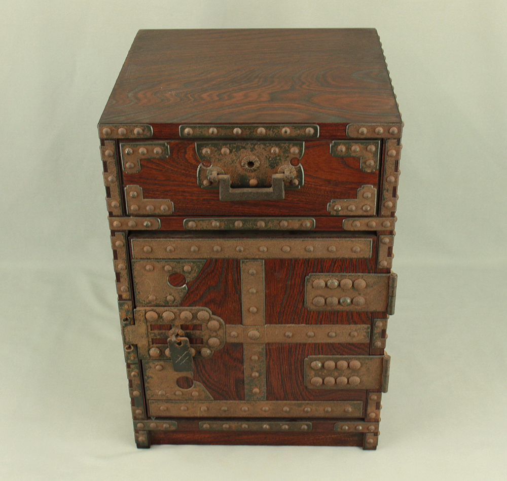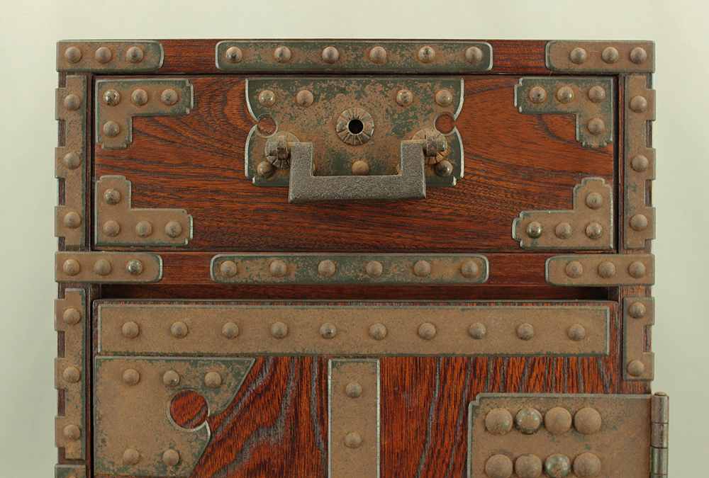 Funadansu Tansu Wooden Accessory Box reinforced with iron fittings, Drawers Lock and Key VA815